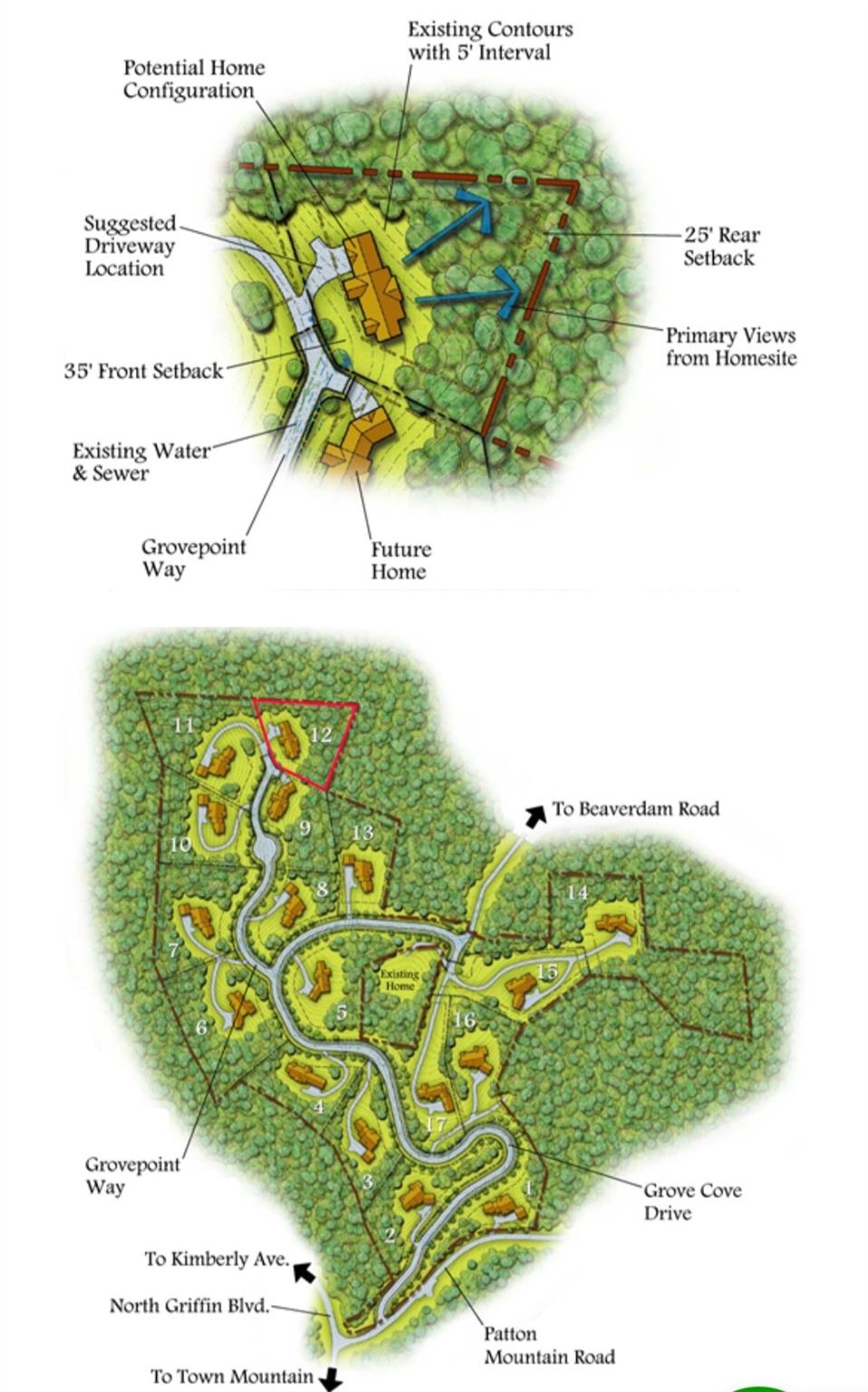 Exceptional opportunity in one of North Asheville’s most sought-after communities, Grove Park Cove. Nestled at the end of a quiet cul-de-sac, this 1.22-acre homesite offers a private, year-round panoramic mountain view that creates the perfect canvas to design your dream residence. Minutes from downtown Asheville and adjacent to the historic Grove Park Inn. With its gentle slope, the lot is ideally suited for a custom home featuring main-level living with a daylight basement, maximizing that panoramic mountain view, privacy, functionality, and elegance. Year-round mountain views provide a breathtaking backdrop, inviting you to capture the beauty of the Blue Ridge in every season. All underground city utilities, water, sewer, natural gas, and high-speed internet, are readily available, ensuring modern convenience in a tranquil mountain setting. A minimum 2,000-square-foot build requirement maintains the architectural integrity of the community, where refined custom homes are thoughtfully integrated with their natural surroundings. Tucked within this serene cul-de-sac setting - yet only a short drive to Asheville’s vibrant cultural scene, dining, shopping, and outdoor recreation- this property offers the rare combination of privacy, prestige, and panoramic vistas. Bring your architect and builder to create a timeless home in Grove Park Cove, where elegance meets mountain living. No timeline to build!