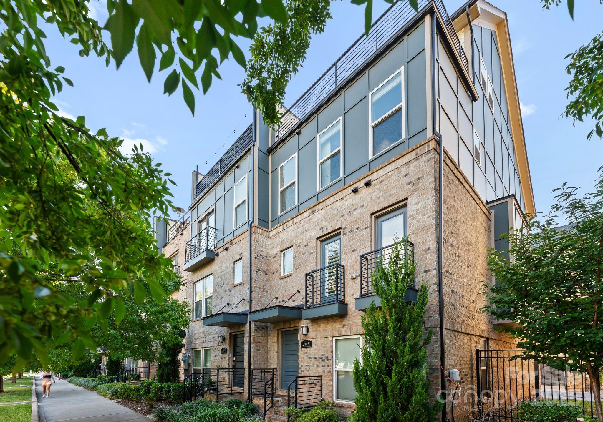 END UNIT IN THE HEART OF LO SO WITH SKYLINE VIEWS OF UPTOWN CHARLOTTE! Live and play all within steps of this gated community! This turnkey 3BR, 3.5 Bath unit features spacious rooftop terrace and Uptown Charlotte views galore. From your fully equipped gourmet kitchen, to your spacious and open concept living space this unit truly encapsulates everything you would want. Notable upgrades include custom window treatments on all windows, kitchen cabinet & appliance upgrades, quartz counters, granite counters & extended tile in bathrooms, primary shower with rainfall shower head, recessed lighting, dimmers, & upgraded engineered hardwoods throughout. With unmatched convenience to Lo So Station, Rally Pickleball, Breweries, Queen Park Social, and a vibrant mix of dining and nightlife, this truly puts the best of Charlotte at your finger tips. Turn-key and move-in ready, this is your opportunity to own a corner unit in one of the city’s most sought-after neighborhoods!