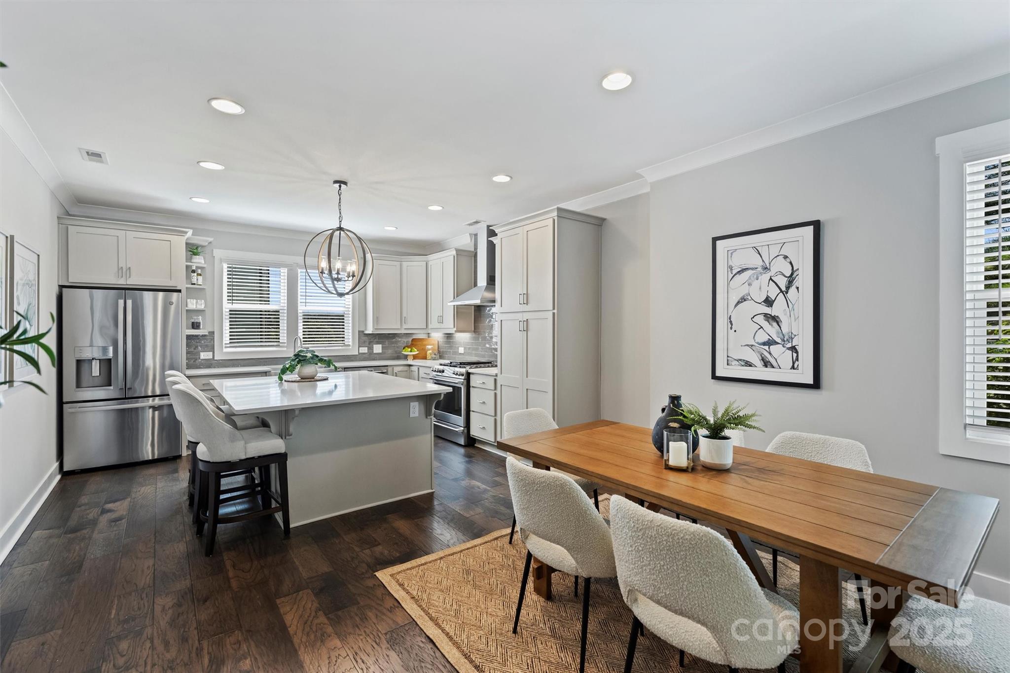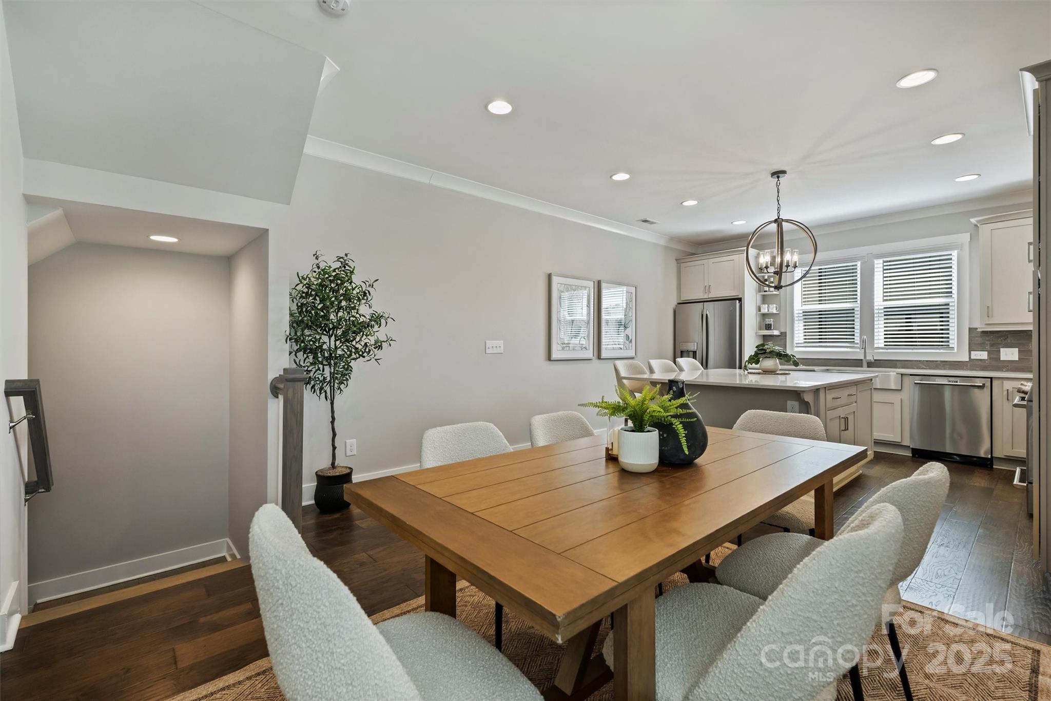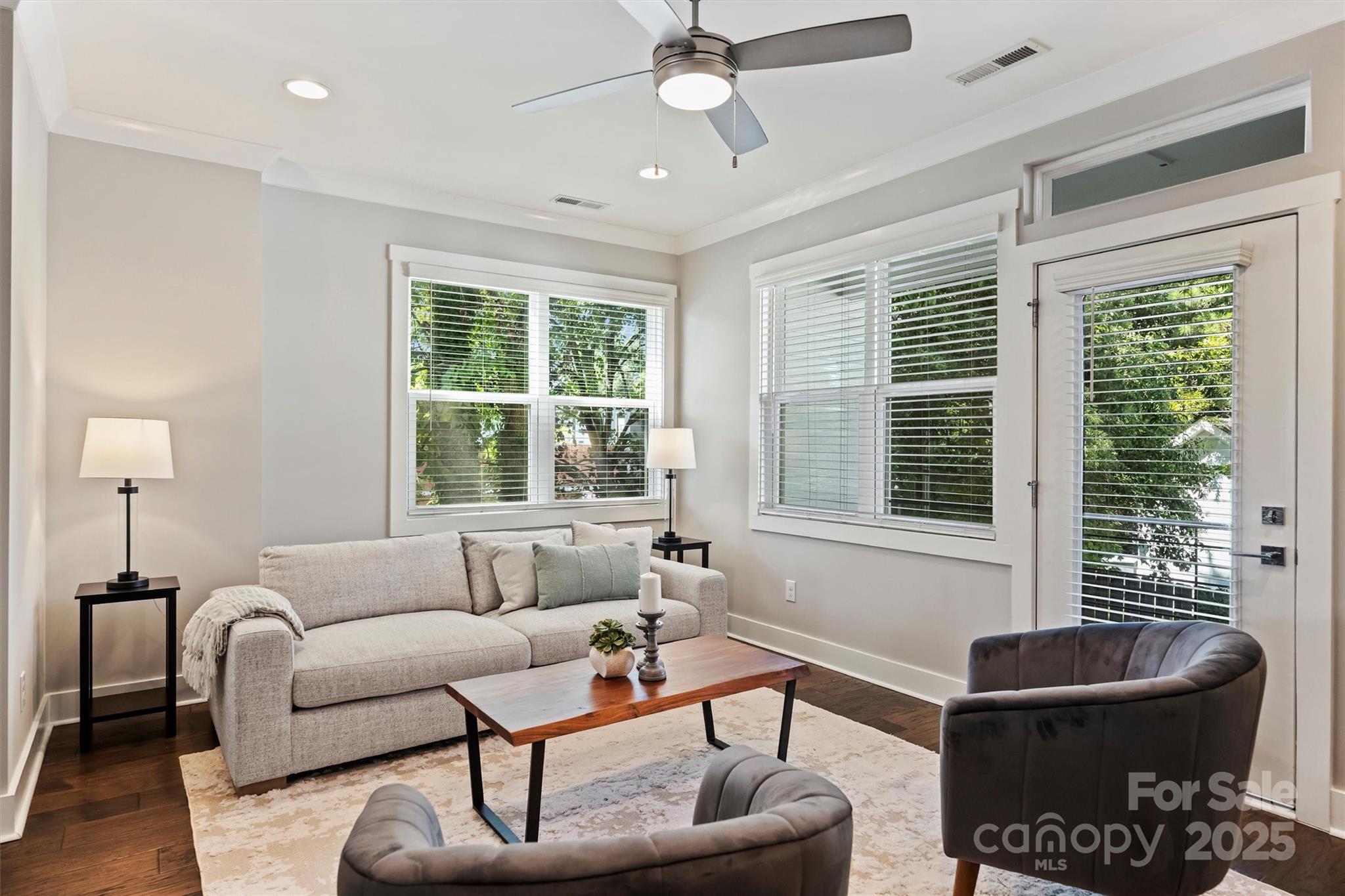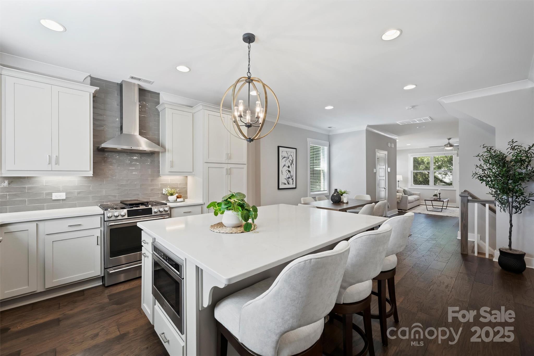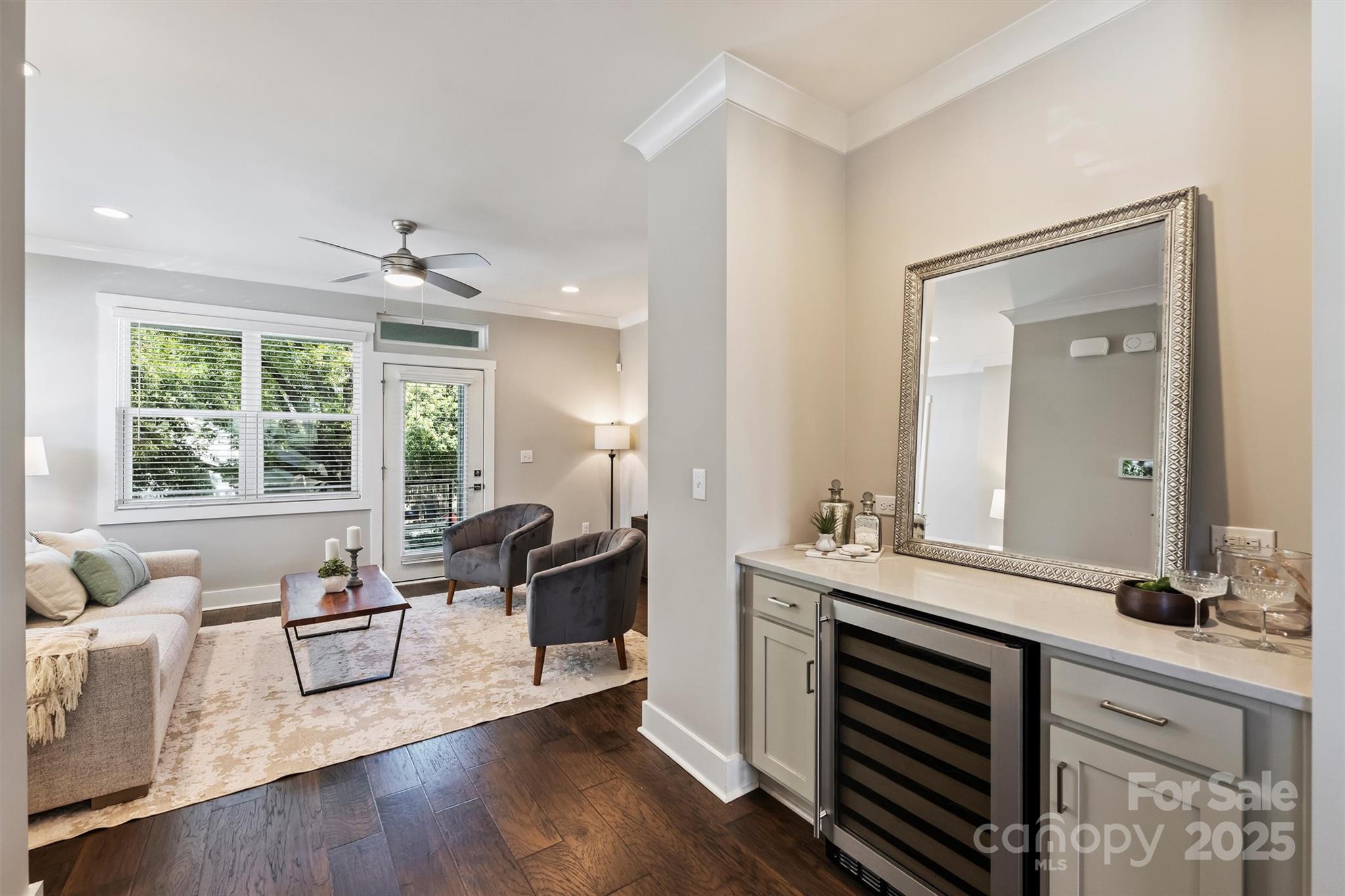 End-unit townhome in the heart of Plaza Midwood! This stylish 3-story residence offers an attached 2-car tandem garage and a versatile laundry/storage room on the main level. The second floor features an open-concept design with a spacious family room, powder room, dining area, and chef’s kitchen. The dining area includes a Butler’s Pantry with a wine fridge, while the kitchen boasts quartz countertops, 42” cabinets, GE Café stainless steel dishwasher, gas range, GE Monogram microwave drawer, and a sleek wall-mounted range hood. A private patio with storage completes the space. Upstairs, the owner’s suite is filled with natural light and includes a spa-inspired bath with dual-sink vanity, quartz counters, water closet, and a large tiled shower. A secondary bedroom on the same level features its own en suite bath and walk-in closet. A stackable laundry closet is conveniently located nearby. Unbeatable proximity to Plaza Midwood’s vibrant bars, restaurants, and shops!