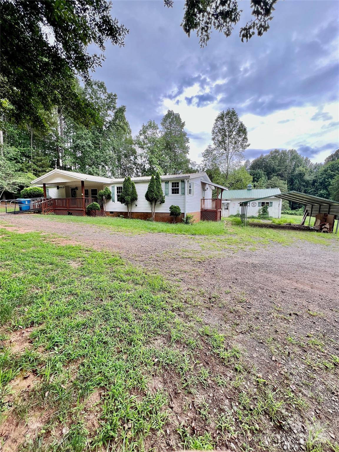 Priced to sell!!! This home features 3 bedrooms 2 baths situated on 1.5 acres in a great location. It also has 2 outbuildings, (24X32 barn and 32X24 workshop), a new back deck and a nice covered front porch. Updates include new windows installed in 2024 with a transferable warranty to the new owner, and solar panels installed in 2023 (that will be paid in full at closing) to help with utilities. Also, a new walk in shower in primary bedroom. Eat-in kitchen with a dedicated dining room. Spacious living room with a wood burning fireplace perfect for entertaining. Split floor plan. Beautiful back yard with fruit bearing trees including a blueberry and a thornless blackberry bush. This property is priced competitively and being SOLD AS IS. Seller will not entertain any repair requests. Home need some cosmetic repairs but it has a great layout and so much potential.
