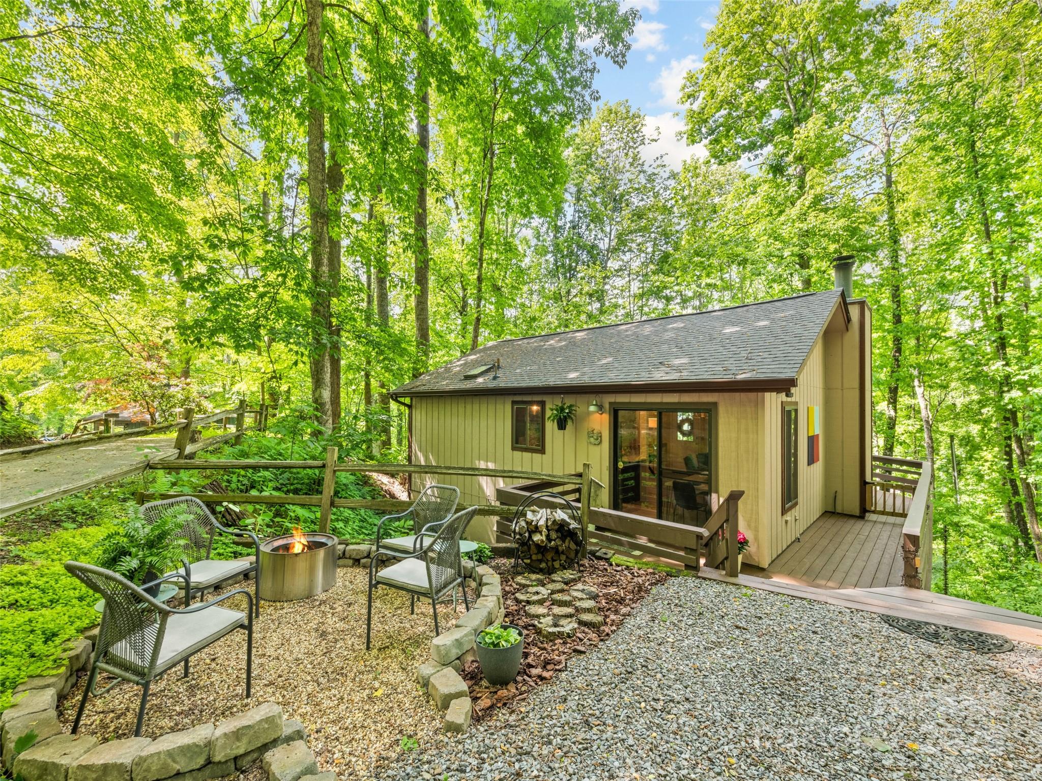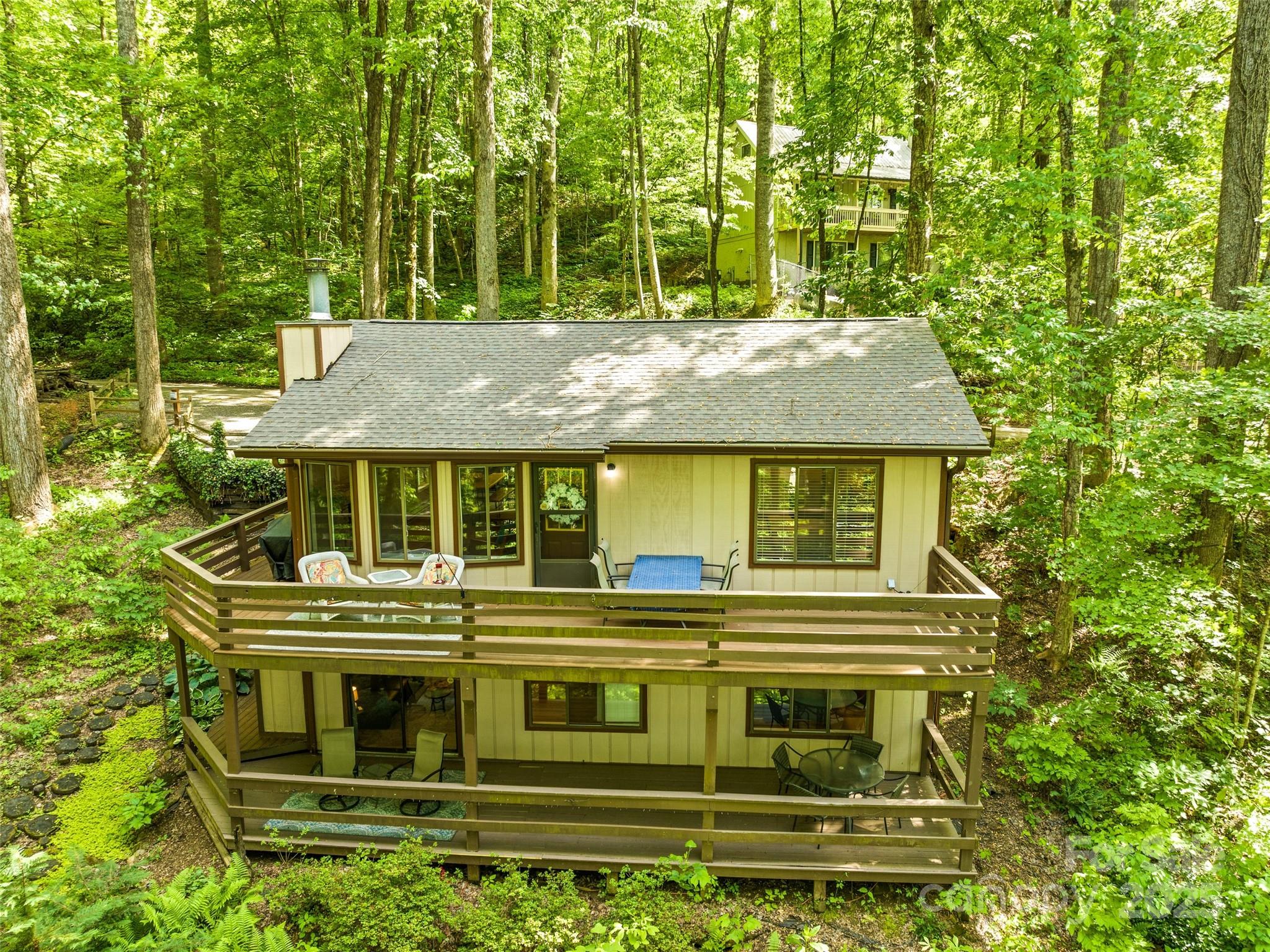 Tucked into the high-country of Maggie Valley and nestled just under 2,800 ft , this fully furnished treehouse-style haven invites you into a lifestyle of refreshing summers, serene mountain mornings, and tranquil night skies . Only a short drive from Asheville’s vibrant arts, dining, and cultural scene, it delivers the quiet of mountain life with easy metro access. Step inside to a vaulted great room with exposed beams and sunlit windows, an updated kitchen with modern comforts, and beautifully renovated baths. Outside, two-tiered wraparound decks overlook the mountain canopy, while the firepit beckons evenings spent under stars. A finished walk-out lower level adds versatility with a full bedroom and bath plus bonus room for extra guests, creative use, or high-earning rentals. With tangible upgrades— with a newer roof and HVAC, EV charging, and thoughtful kitchen and bath updates—this property marries form, function, and location. It’s a year-round escape that doubles as a high-demand rental in a cooler, more comfortable mountain enclave. This is more than a second home; it’s the backdrop for your best adventures yet.