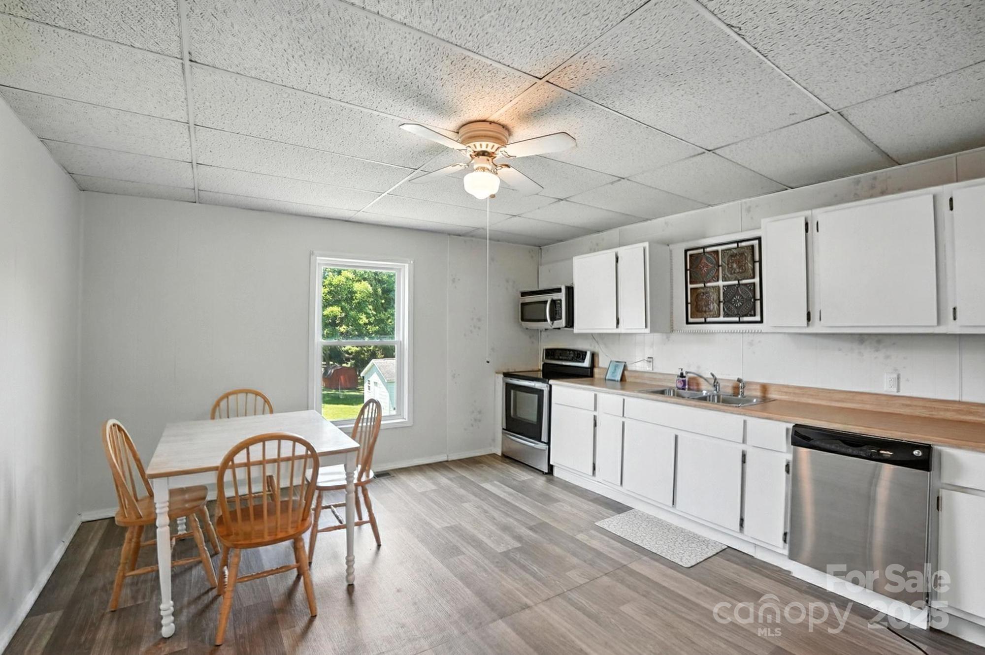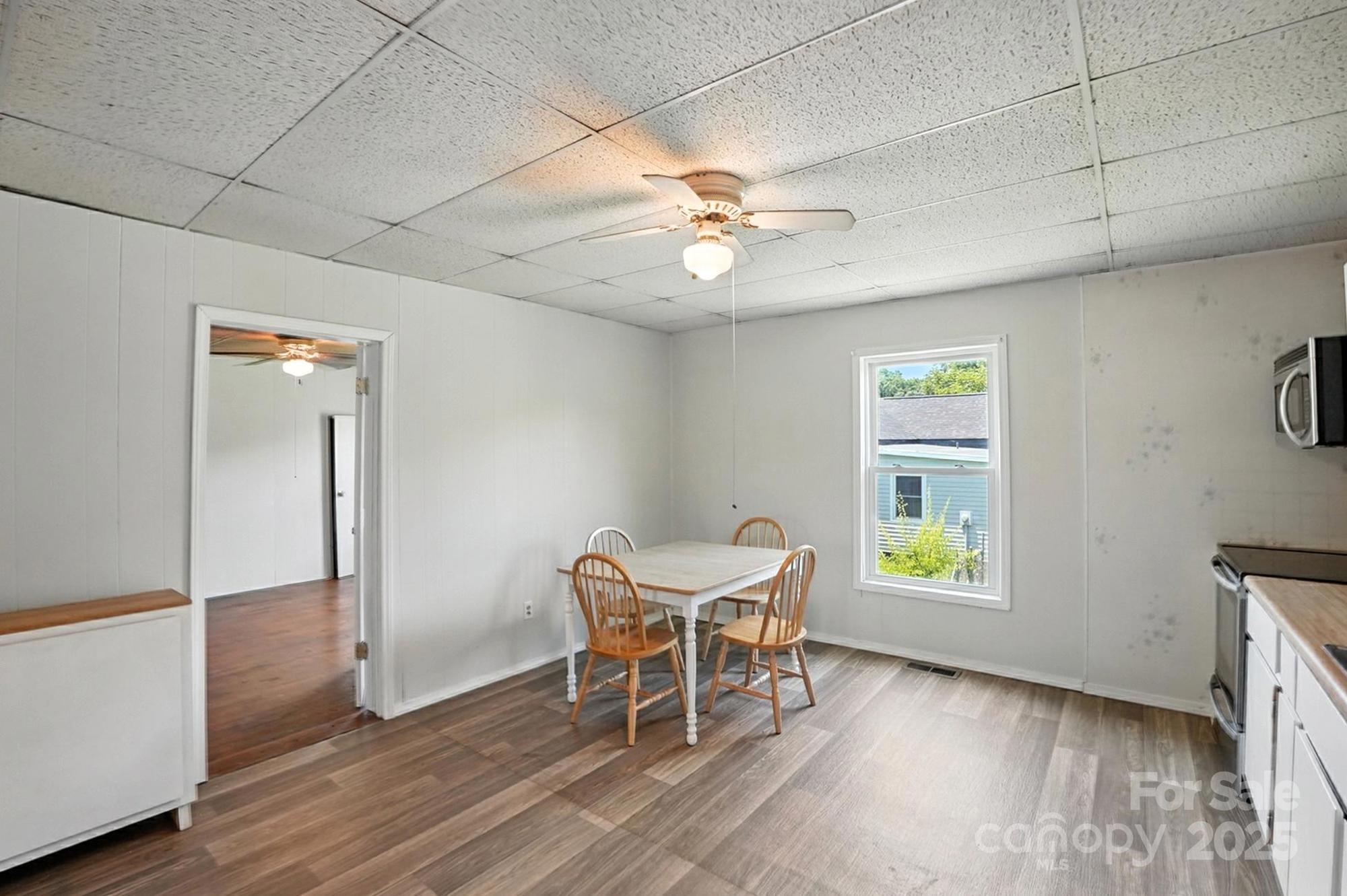 This charming Mill House in the Heart of Downtown Fort Mill has no HOA, offers excellent living space and ample yard. Bring your vision to life here. Don’t miss this opportunity to own a spacious, mill house just a block from Walter Elisha Park and the Fort Mill Amphitheater! With over 1,600 sq ft of living space—unusually large for this area—this home offers charm, and endless potential including a detached workshop/ garage space in the rear. Enjoy the inviting curb appeal with a classic rocking chair front porch and a side deck. Inside, you’ll find a generous layout featuring a large kitchen with brand-new appliances, high 9-foot ceilings (visible with the drop panels removed), and a layout ideal for both comfortable living and future renovation. The expansive yard offers room to grow, garden, or play, and the 589 sq ft detached garage/workshop adds excellent functionality for hobbyists, storage, or creative projects. Whether you're a first-time homebuyer, investor, or someone ready to live in while renovating, this is your chance to own a piece of Fort Mill history in an unbeatable location.
