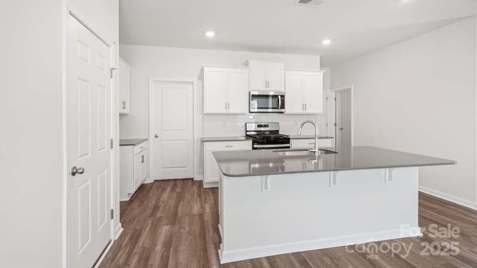 Furnished Model home of this plan available to view on site! New community just 1.5 miles from downtown Troutman. Guest Bed/Bath on Main Level! Wide foyer leads to an open kitchen & family room. Kitchen highlights a center island w/ Quartz Countertops, Shaker cabinets, stainless gas range appliance pkg. Large corner pantry space. Gas log fireplace & decorative mantle adorn the family room. Spacious primary bath features a 5 ft glass door shower w/separate garden tub, double vanity, separate water closet and large WIC. Convenient upstairs laundry room, 3 additional beds, hall bath w/ double sinks and loft completes the 2nd floor. Beautiful upgrades such as 2" faux wood blinds, LVP flooring on first floor (minus bedroom) and in all baths, wrought iron spindles at staircase and sleek LED lighting. Smart Home package and warranty included. Future pool, playground, walking trails! Troutman Schools! Closing costs available with DHI Mortgage! Convenient to 77 and Mooresville. Includes blinds for move-in ready convenience!