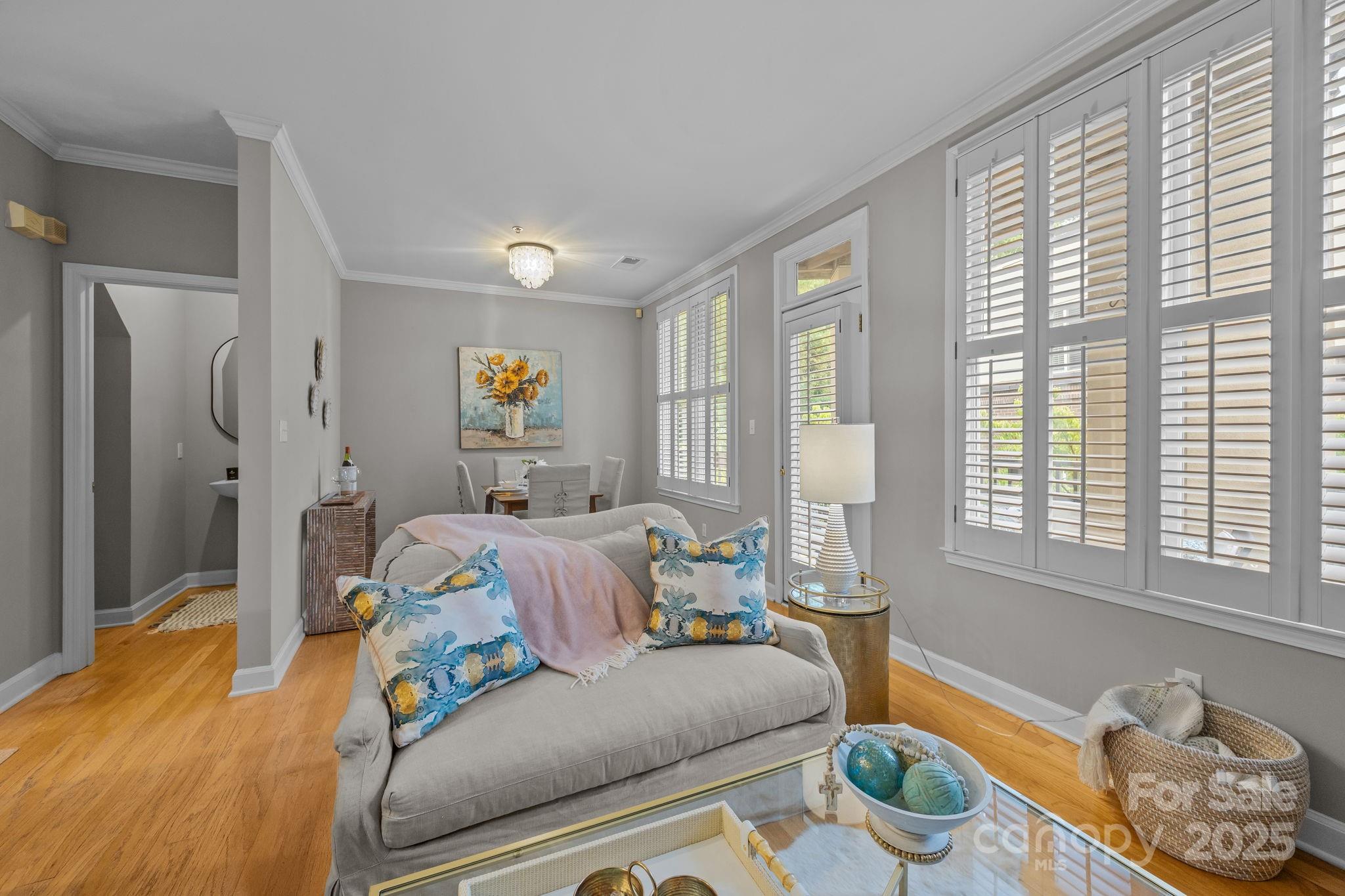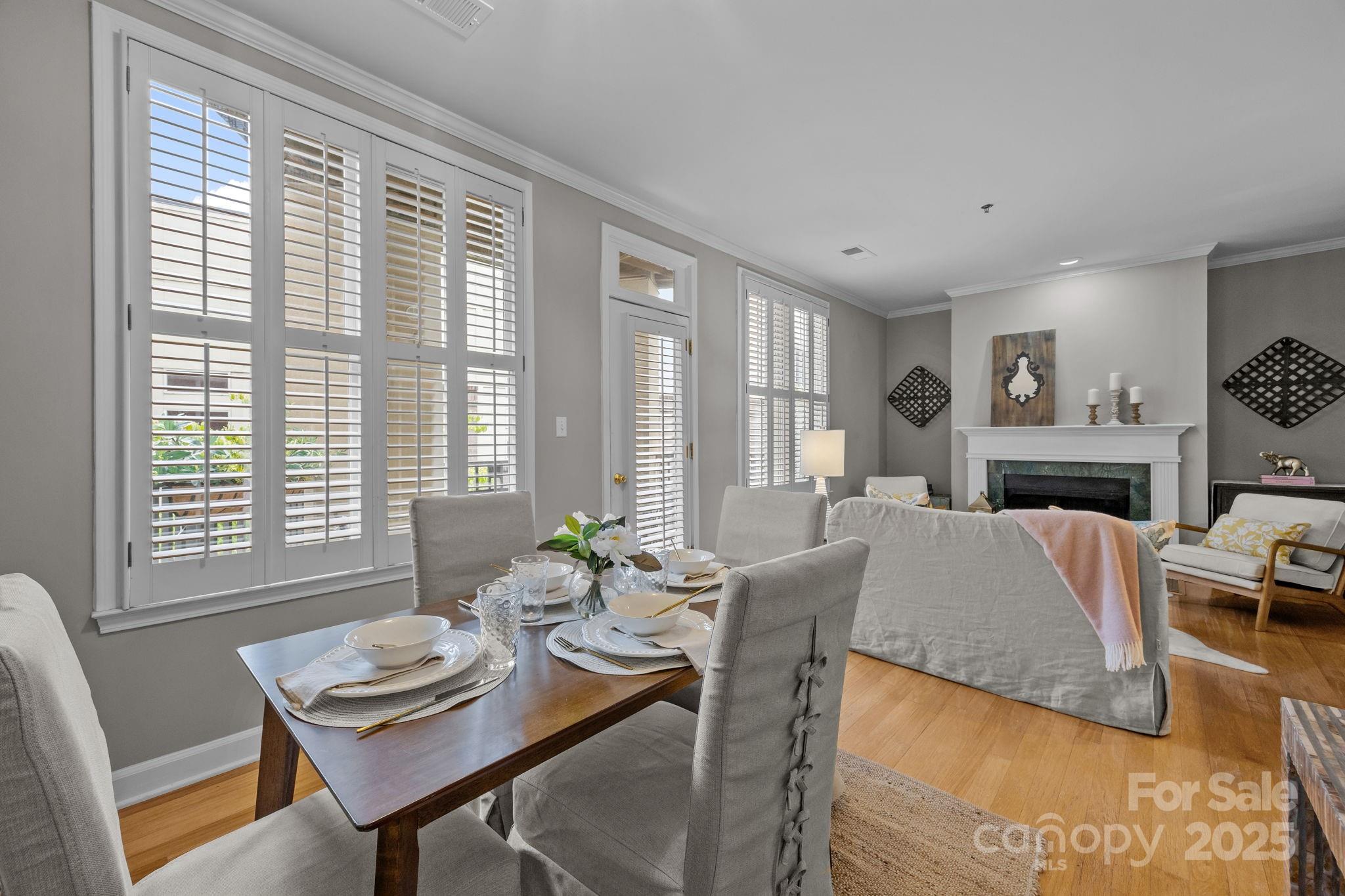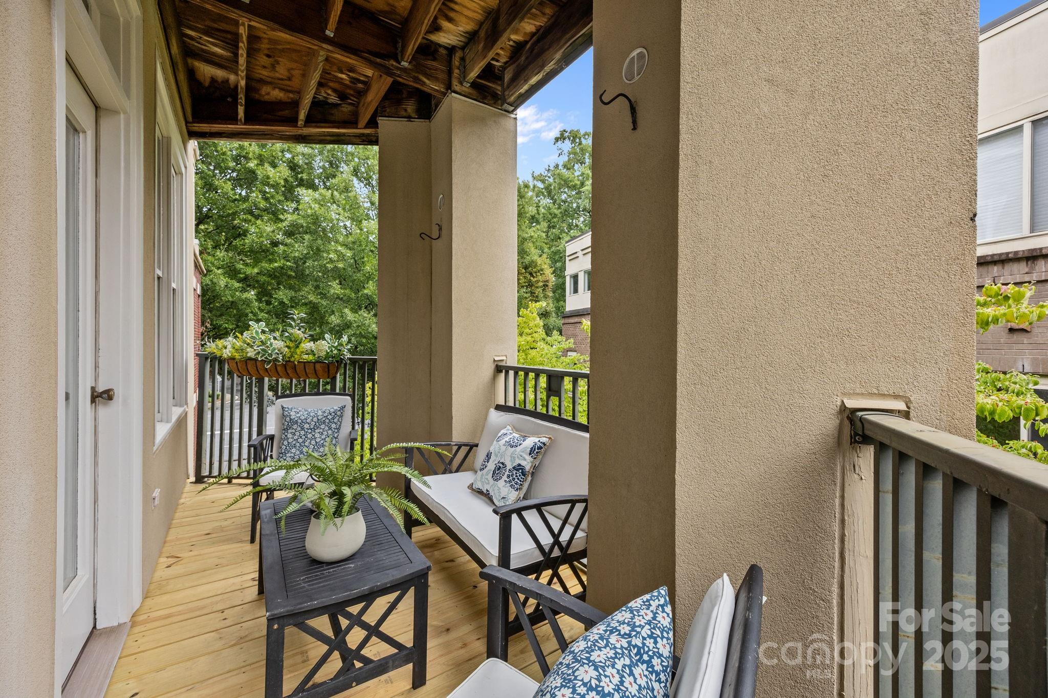 Charming 2 bedroom top story unit on Queens Road in the heart of the sought-after Myers Park neighborhood! Very close proximity to renowned hospitals and easy commute to Uptown! Hardwood floors in main living area crown molding, fireplace w/gas logs, half bath on main, updated kitchen with stainless appliances, Two private outdoor terraces—one on each floor (one off the Primary BR and the other off the LR), Vinyl Plank style flooring added in hall and in bedrooms on 2nd level. The primary bedroom boasts a walk-in closet, en-suite bathroom. Secure gated garage parking with rare 2 assigned spaces for unit 19 , storage closet, secured building with elevator, …Fantastic location with abundant dining and entertainment options , with theaters, parks, and cultural attractions.