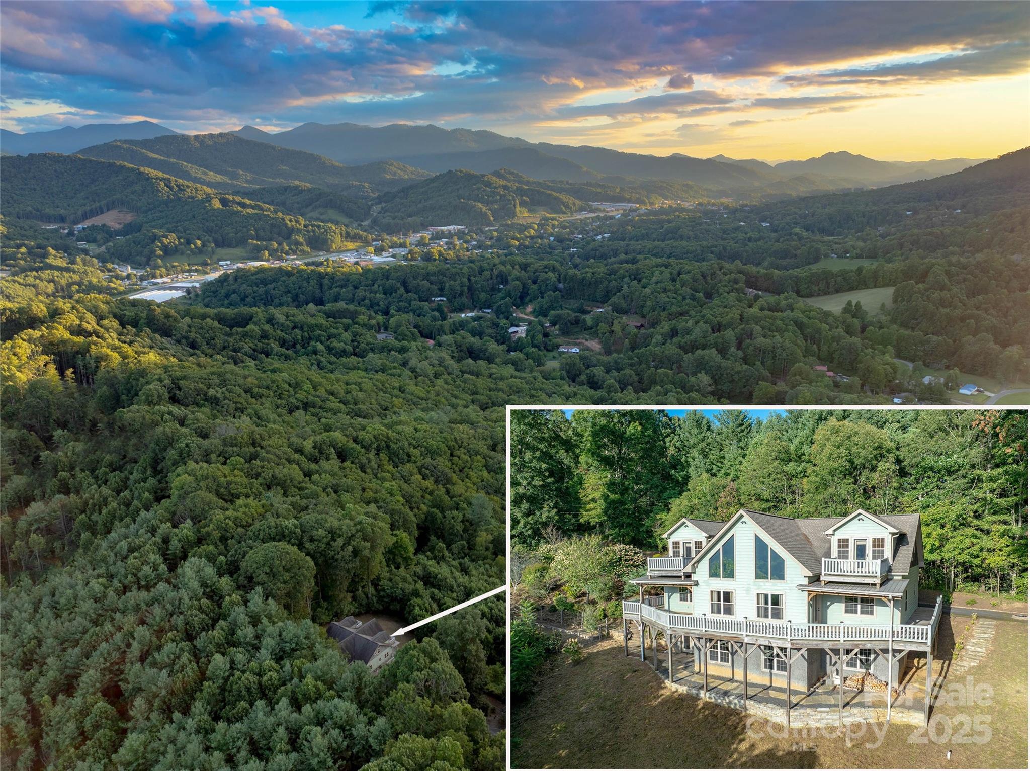 This private mountain retreat minutes from Burnsville and easy 40 minutes drive to downtown Asheville offers convenience without sacrificing privacy. Sited on 2.25 private acres, this 4-bed 4-bath home includes a main-level office that could be used as a 5th bedroom. An expansive cabin-style great room with a floor-to-ceiling gas-log fireplace anchors an open flow from kitchen to dining to great room for easy gatherings. Every bedroom has its own private bathroom for suite-level comfort. The main-level master suite features a tiled shower, a jetted tub and a walk-through closet that connects directly to the laundry. The ~2,000 sq ft heated and cooled daylight lower level is a blank canvas ideal for a fast build-out of a short- or long term rental unit, in-law suite or an additional finished living area. It has plumbing rough-ins and two exterior walkouts that function as private entrances. This takes the home past 5,000 sq ft and creates flexible options for multi-generational living, expanded living space or a rental lock-off. High-speed Gigabit internet is perfect for remote work. Outdoor spaces include a wrap-around deck for long-range mountain views and sunsets plus a covered section for quiet afternoons, raised garden beds, mature fruit trees and an easy-care lawn. Upstairs, two bedrooms each have a walk-in closet and a private balcony with year-round mountain views. With 3,114 finished sq ft today and a finish-ready lower level, this 2010 build offers privacy close to town with room to expand without starting from scratch. At about $241 per sq ft, well below Burnsville’s ~$290 average, it's the best value in the area’s luxury market.