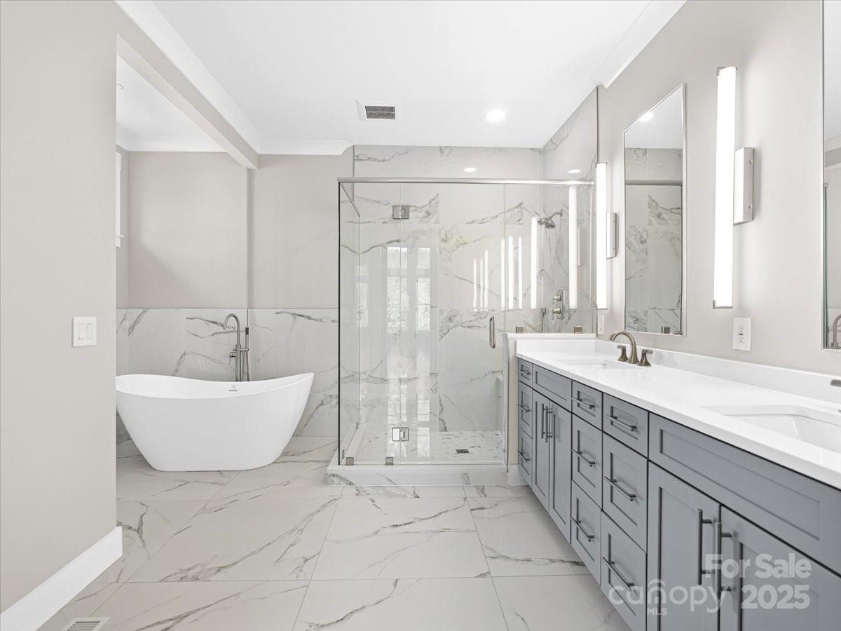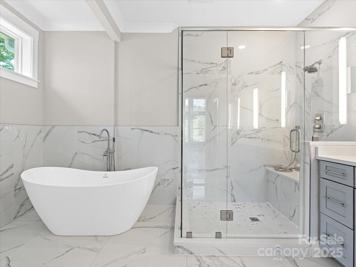 The stone-wrapped porch and transom-lit foyer open to a dramatic reveal: a 16-foot wall of dining room glass overlooking the private greenway and forest beyond. Just beyond, the vaulted great room unfolds, its 19-foot peaks and three walls of glass framing the woods and sky around a grand centerpiece fireplace. The effect is at once expansive and intimate, a place that feels like a retreat yet is designed for everyday living. Outdoor living is central here. Eight-foot patio doors with tall transoms border the dining room on two sides—one opening to a 23-foot open deck, the other into a soaring 12×18 screened porch with wood-stained ceiling. This year-round room blurs the line between indoors and nature, the perfect setting for mountain sunsets or quiet mornings. At the heart of the home, the chef’s kitchen centers on a quartz-topped island nearly five by ten feet. A sleek L-shaped run of full-depth white cabinetry sets the tone, balanced by a suite of LG stainless appliances including a six-burner gas cooktop, convection wall oven with micro/air fry, wine cooler, counter-depth refrigerator, and whisper-quiet dishwasher. Above, the glass-railed balcony of the upper family room adds vertical drama while connecting the spaces together. The main level also includes two bedroom suites. The vaulted primary is filled with light from sky windows, with dual custom closets leading to a spa-inspired bath finished in porcelain tile, soaking tub, seated glass shower, and an expansive custom vanity. The second ensuite flex room offers its own privacy and mountain views. A skylit oak stair rises to the upper level, where the lofted family room overlooks the great room and distant ridgelines. A full bath and additional bedroom or office complete this floor. The daylighted lower level is equally versatile: a 19×26 family room with kitchenette, two bedrooms with walk-in closets, and two full baths including one ensuite. Wrapped by patios and decks, this level connects seamlessly to the outdoors. Efficiency matches beauty. Triple-zoned HVAC with a Bosch variable-speed heat pump, advanced 2×6 gasketed exterior walls, engineered floor and roof trusses, radon mitigation, and architectural roofing are all third-party verified through Energy Star and Duke HERO programs. Certifications confirm performance, comfort, and lower utility costs. Greenwood Park and sister community Reems Creek Village together form a neighborhood nearly 25 years in the making. Across from Reems Creek Golf Club, the community is known for quiet streets without through traffic, distinctive custom homes, and welcoming neighbors. Private roadways loop through breathtaking views—south and east to the Blue Ridge Parkway, west to Pisgah and the Smokies, and north to Hamburg Mountain. Two miles to downtown Weaverville, 15 minutes to Asheville, 10 minutes to the Parkway, and near a newly approved hospital site, the location blends small-town charm with regional access. To make the move seamless, flexible purchase options are available, including short-term bridge financing for qualified buyers. Explore the home anytime with the self-guided 3D tour—see Virtual Tour Link.