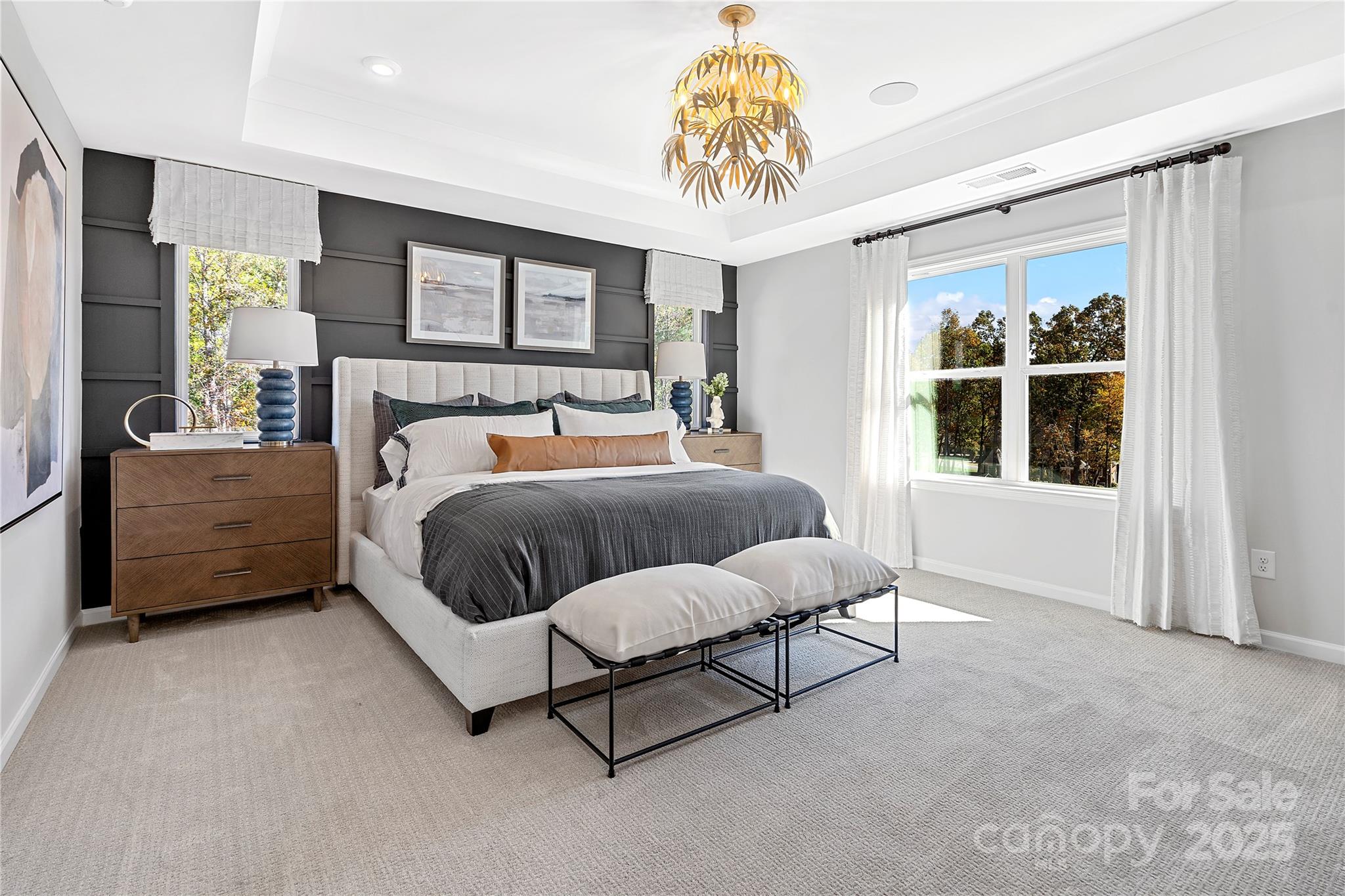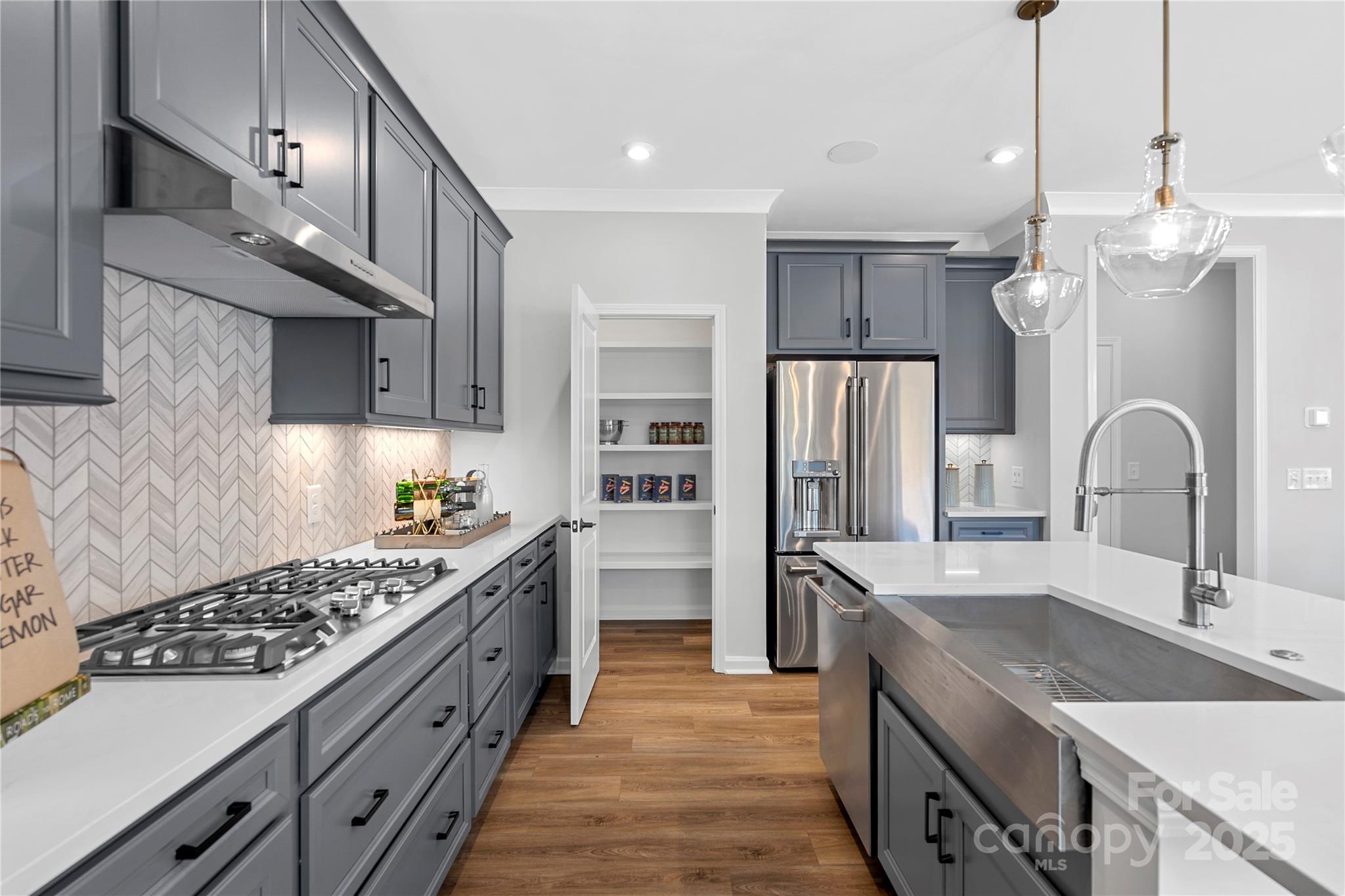 Say goodbye to decision fatigue and hello to strong value and a designer-curated lifestyle. The Woodwright is outfitted with 4 bedrooms, 3.5 baths, a first floor office, and dual outdoor living spaces. All furniture and appliances included! Gourmet Kitchen layout with modern rich gray cabinetry, crisp white quartz countertops, matte black hardware, upgraded hardwood pantry shelving, designer chevron lay backsplash, and more! Primary Suite outfitted with a grand tray ceiling, additional windows, modern wood-toned cabinetry, crisp quartz countertops, and designer selected tile. Gas fireplace with built in mantel and tiled surround at great room. French doors opening to first floor office or flex space. Extended covered outdoor living space at the rear of the home and covered front porch.