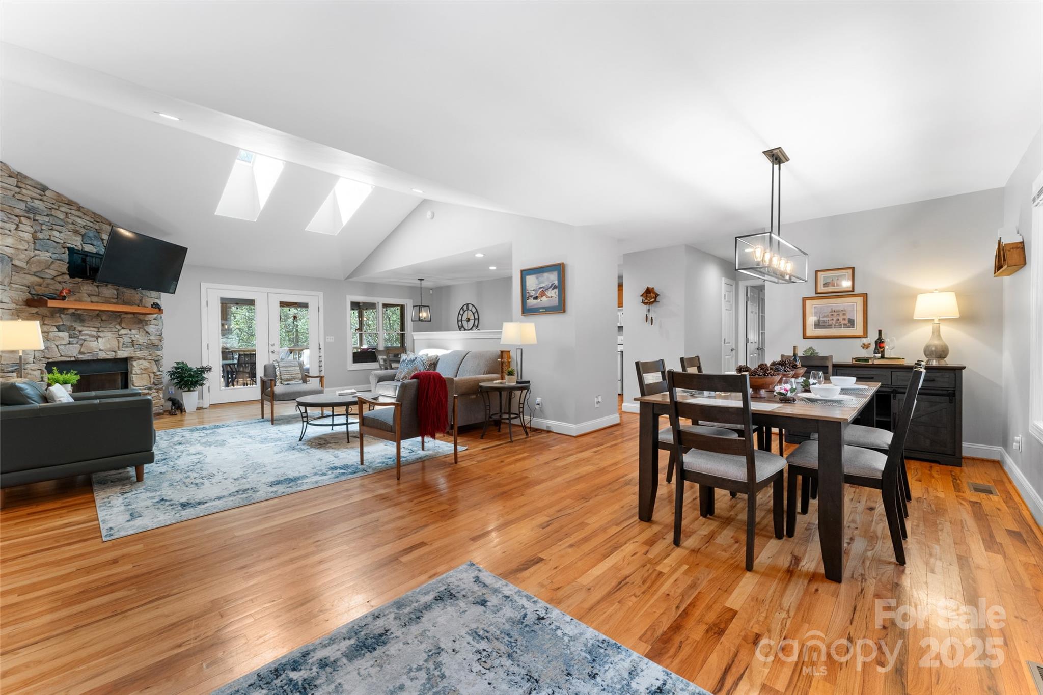 Welcome to effortless mountain living in this beautifully updated 3-bedroom, 2-bath home offering one-level living with the bonus of a finished lower-level media or game room. Enjoy vaulted ceilings, oak floors, and skylights that flood the space with natural light. The updated kitchen and bathrooms feature modern finishes, and a new roof offers peace of mind. Sold fully furnished, including dishes, linens, and even a hot tub, this home is truly move-in ready. Sitting on a double lot that backs to a serene wooded forest, this home offers extra space and secluded tranquility. Nestled in a quiet cul-de-sac, it’s also just minutes from the clubhouse, where the vibrant Connestee Falls lifestyle unfolds—fitness classes, golf, tennis, community events, and more. Whether you’re looking for a primary residence or a turnkey getaway, this home is your perfect entry point to the active, nature-filled life that makes Connestee Falls so special.
