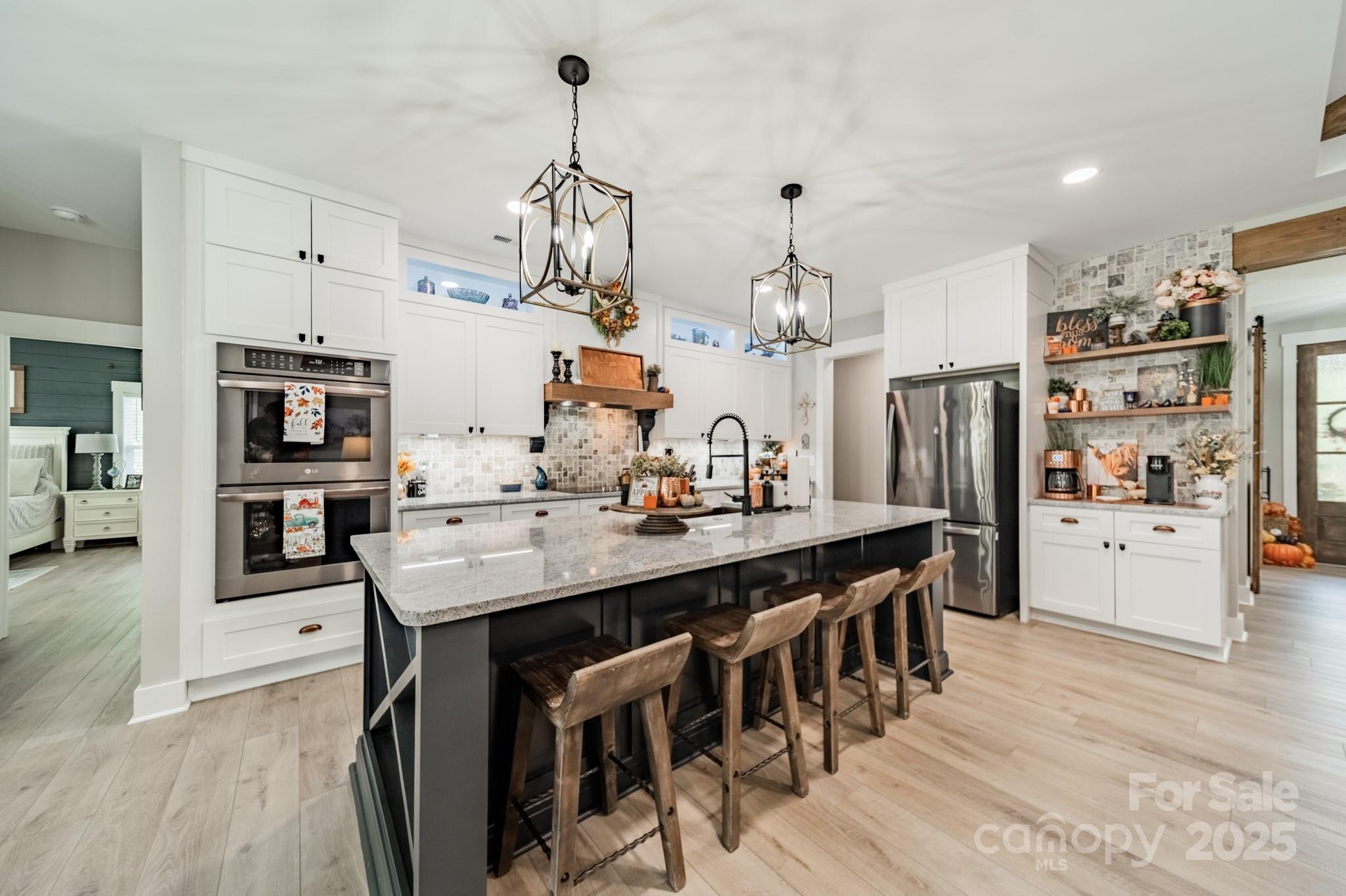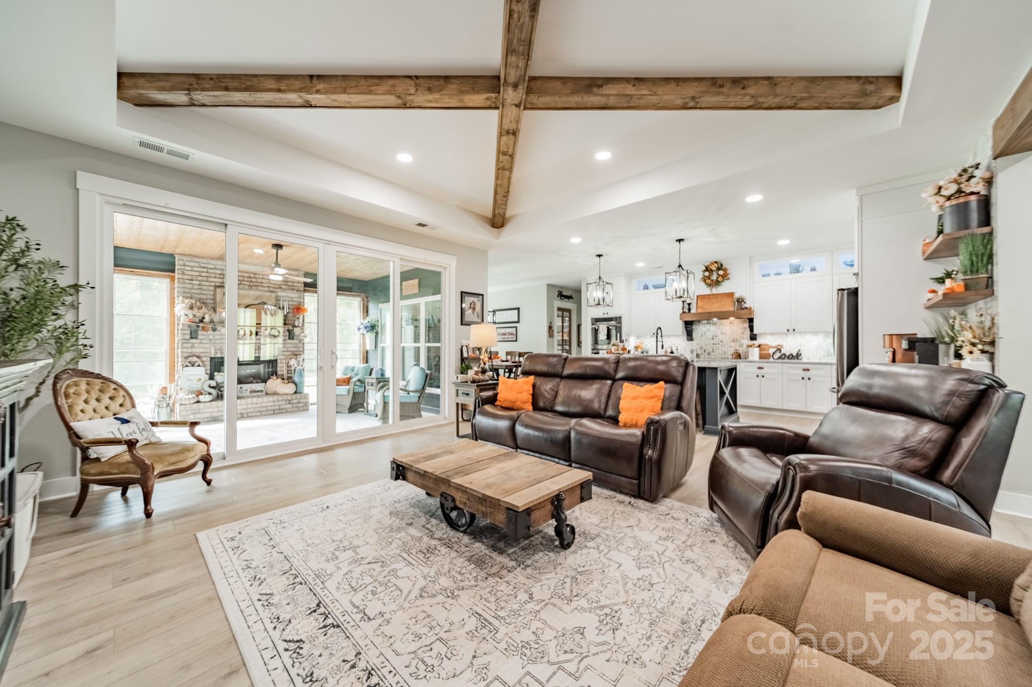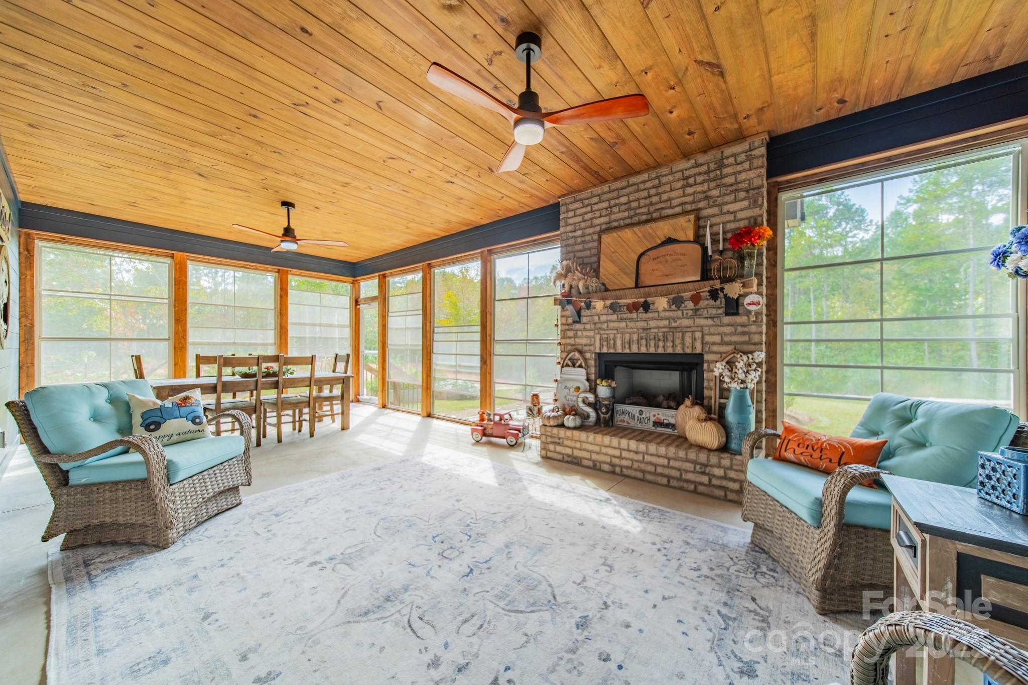 Experience the perfect blend of privacy and craftsmanship in this serene, custom-built home set on 10 peaceful acres with no HOA. Every detail has been carefully designed to create a one of a kind retreat. Enjoy the warmth of a pine ceiling in the living room, front porch, and back porch, while the sunroom with its own fireplace offers a tranquil spot to relax year-round. The expansive, well-equipped kitchen is ideal for entertaining, with black walnut shelving, and a walk-in pantry with butcher block counter tops,& wine fridge. The spacious dining area invites gatherings that flow effortlessly into the living spaces. The primary suite provides a peaceful escape with a large walk-in closet and spacious bathroom. Two additional bedrooms, a second full bath, and a flexible office space complete the thoughtful layout. Unique touches are found throughout... from hand-selected custom doors sourced from out of state... to a garage wired with 220 service for woodworking equipment. Step outside to enjoy evenings around the custom firepit, surrounded by nature’s serenity