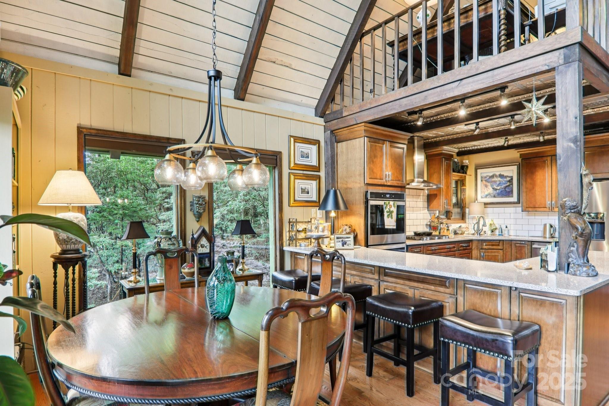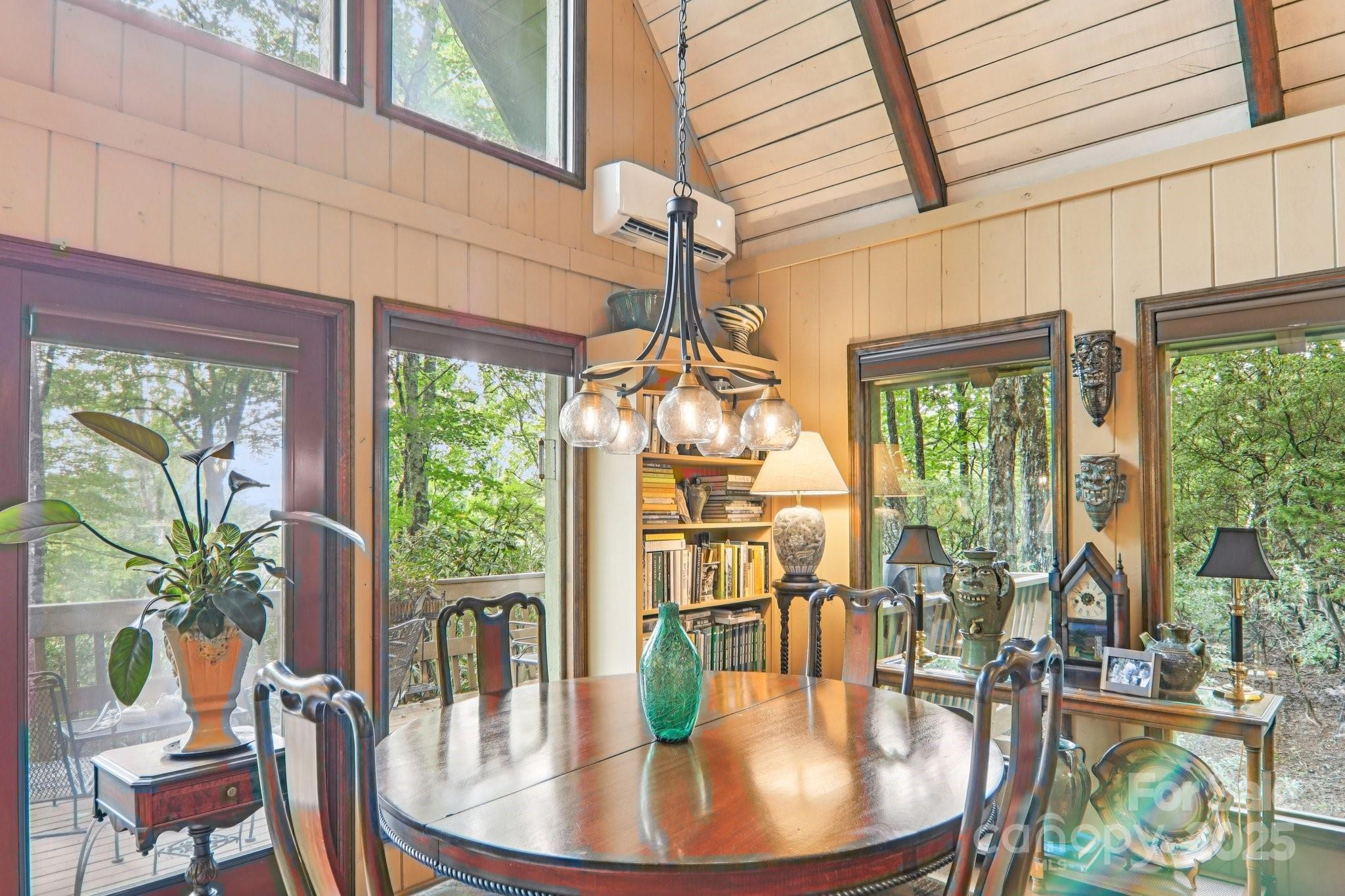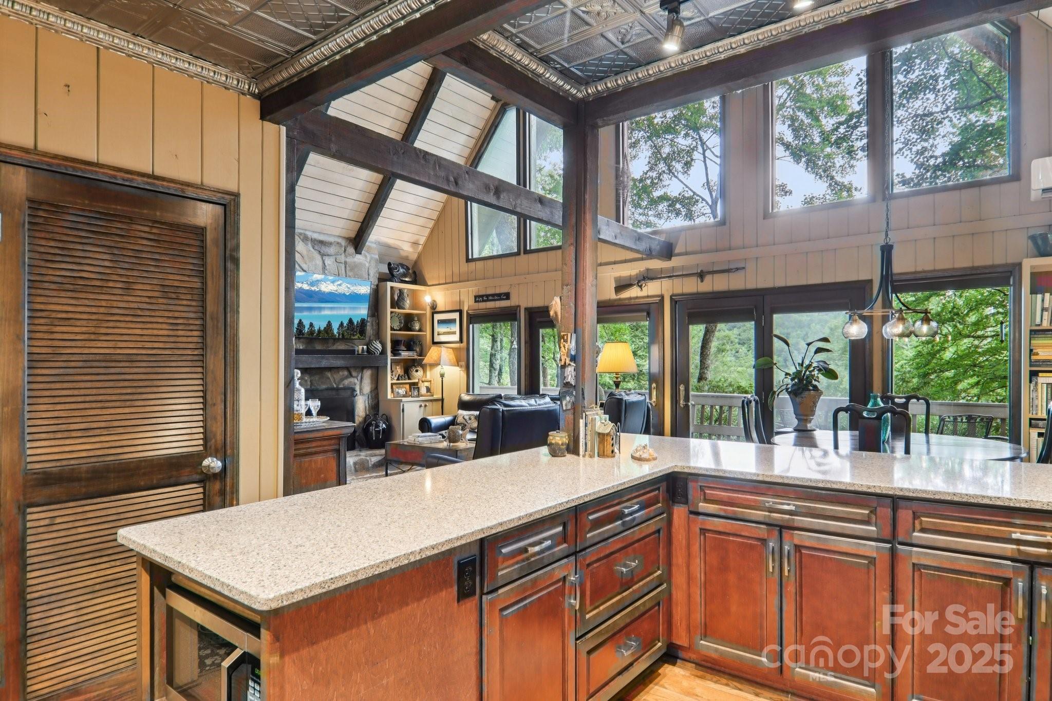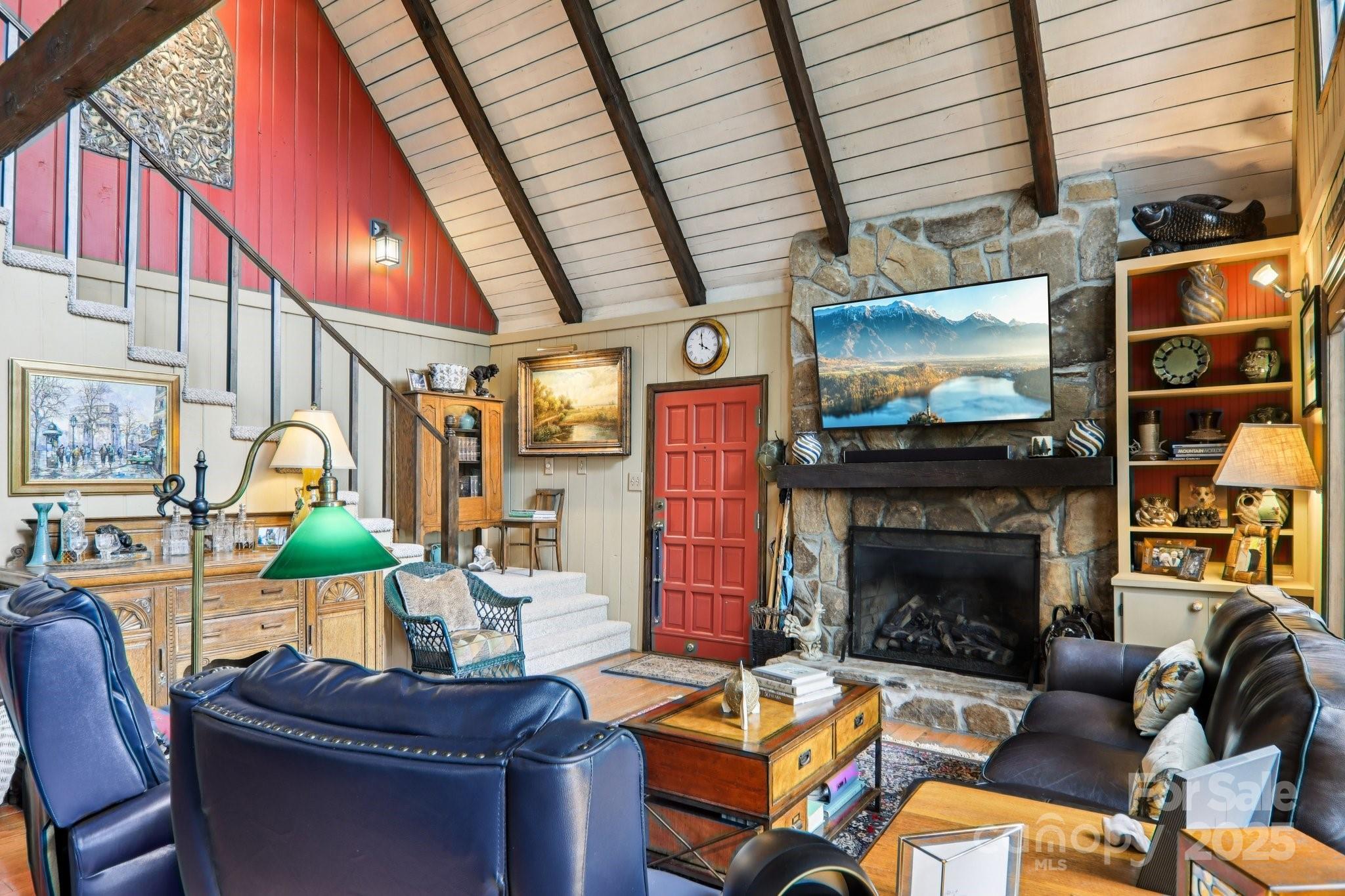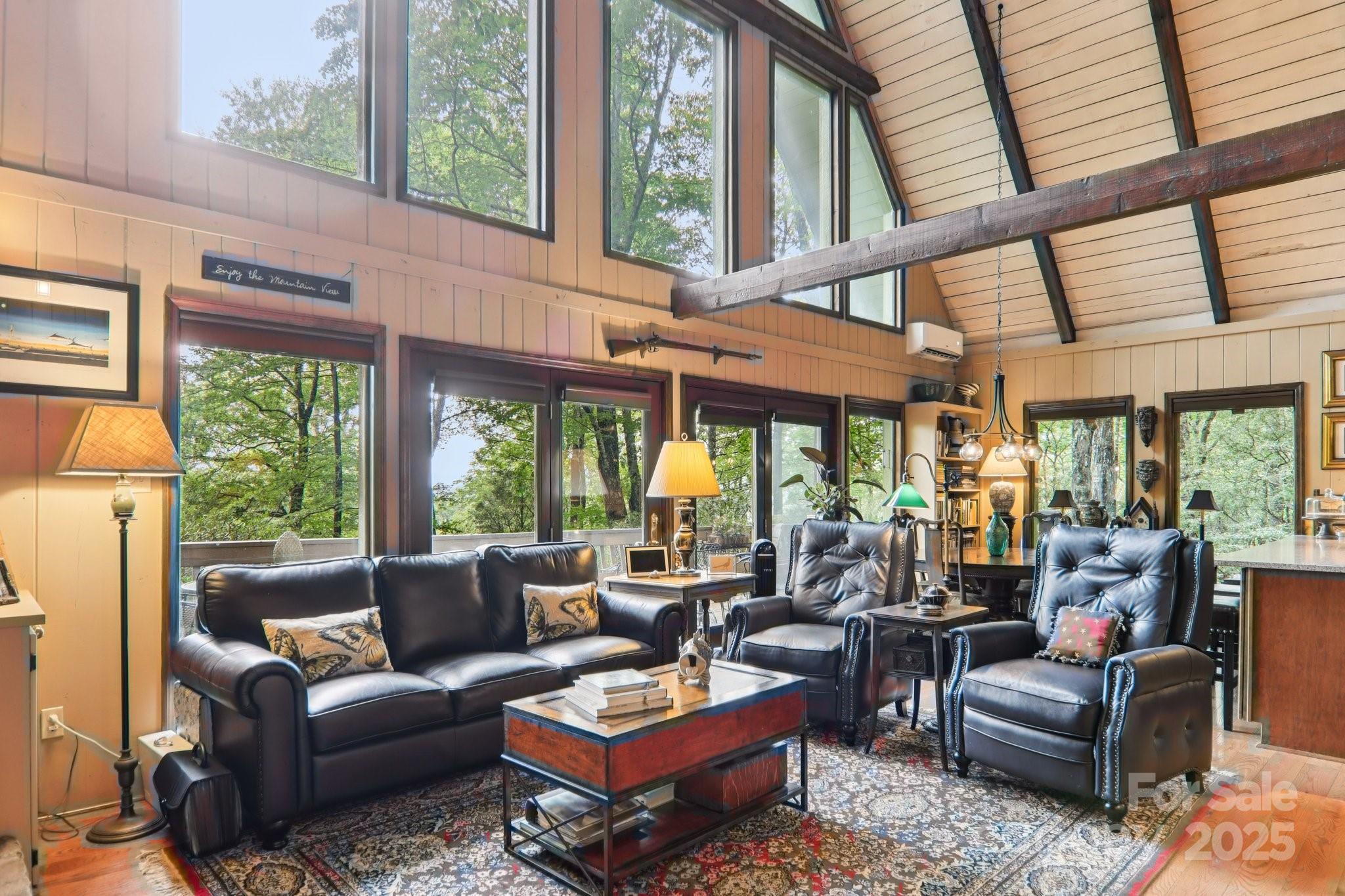 Nestled in the mountains of Burnsville, this beautiful chalet-style home offers picturesque views of Roan Mountain and the Black Mountains near Mt. Mitchell. Inside, warm wood finishes, a soaring vaulted ceiling, and a dramatic stone fireplace create a true mountain lodge feel. The open floor plan connects a well-appointed kitchen, spacious dining area, and light-filled living space—perfect for entertaining or relaxing. Multiple bedrooms and baths provide comfort for family or guests, while expansive windows frame the scenery. The open-air porch invites you to soak in the crisp mountain air. Downstairs, a full basement offers abundant additional space, including a laundry room and workshop. The nearly level lot provides room for expansion, gardening, or simply enjoying the outdoors. Combining rustic craftsmanship with breathtaking views, this home is an ideal mountain retreat. Schedule your showing today!