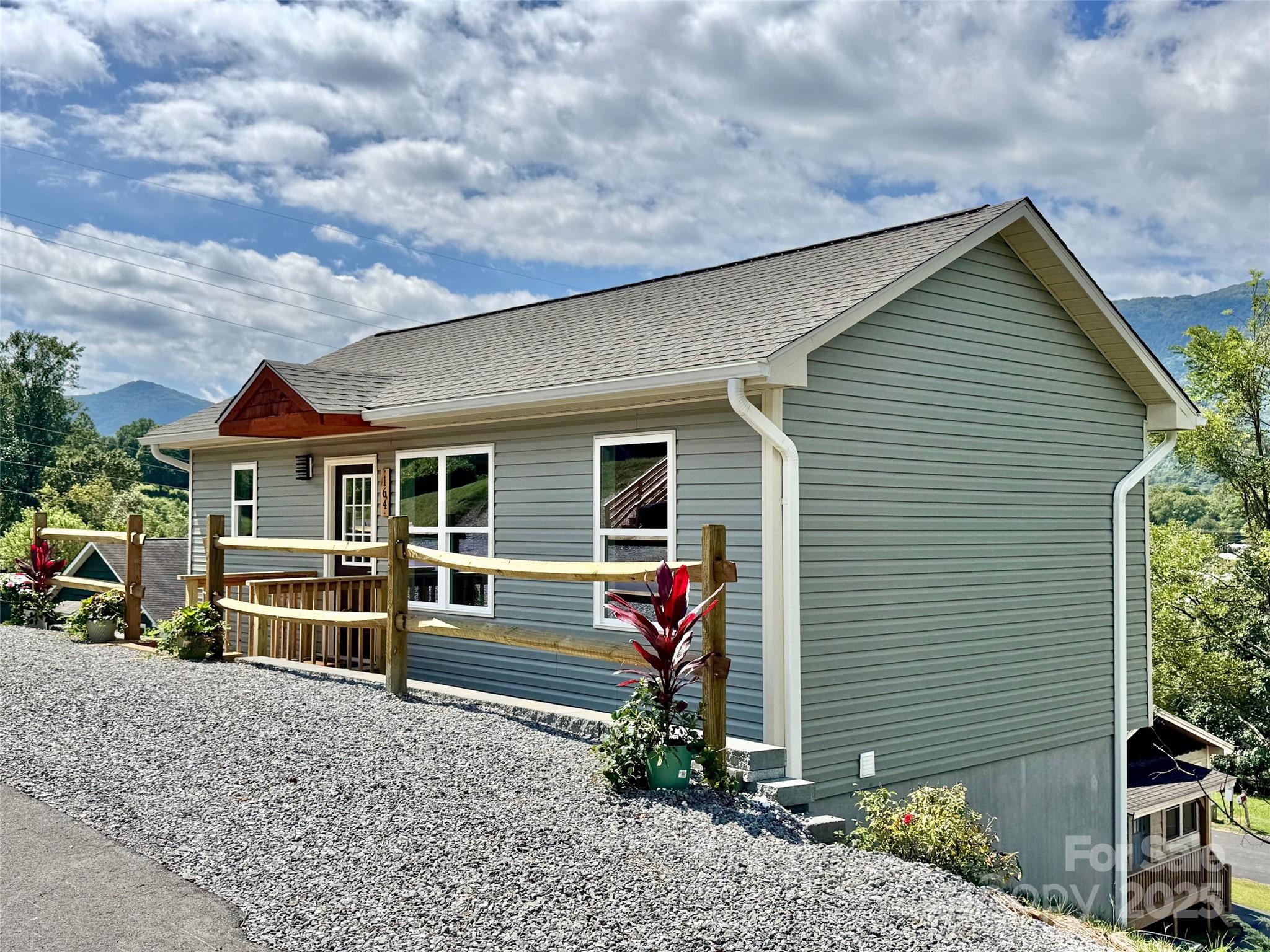 Affordable new construction home with year-round mountain view! Your move-in-ready mountain retreat is here! Soak in natural light and beautiful vistas through large windows that bring the mountains inside. This 2 bedroom 2 bath Jonathan Valley gem offers a bright, open interior with high ceilings, durable LVP flooring, 1 bedroom and 1 full bath on each floor, connected by a handcrafted hardwood staircase. Despite its cozy footprint, it features smart design with plenty of storage throughout, and ample space to relax and chill. The kitchen has plenty counter and cabinet spaces, stainless steel appliances and a live edge breakfast bar for a touch of rustic elegance. Enjoy quality construction with a superior wall basement and zoned central heat and air. Though the lot is not big, you can still have a garden or sitting area just outside the basement sliding door to enjoy the long range mountain view and outdoors. Minutes to Maggie Valley, Waynesville, and an easy drive to Asheville.