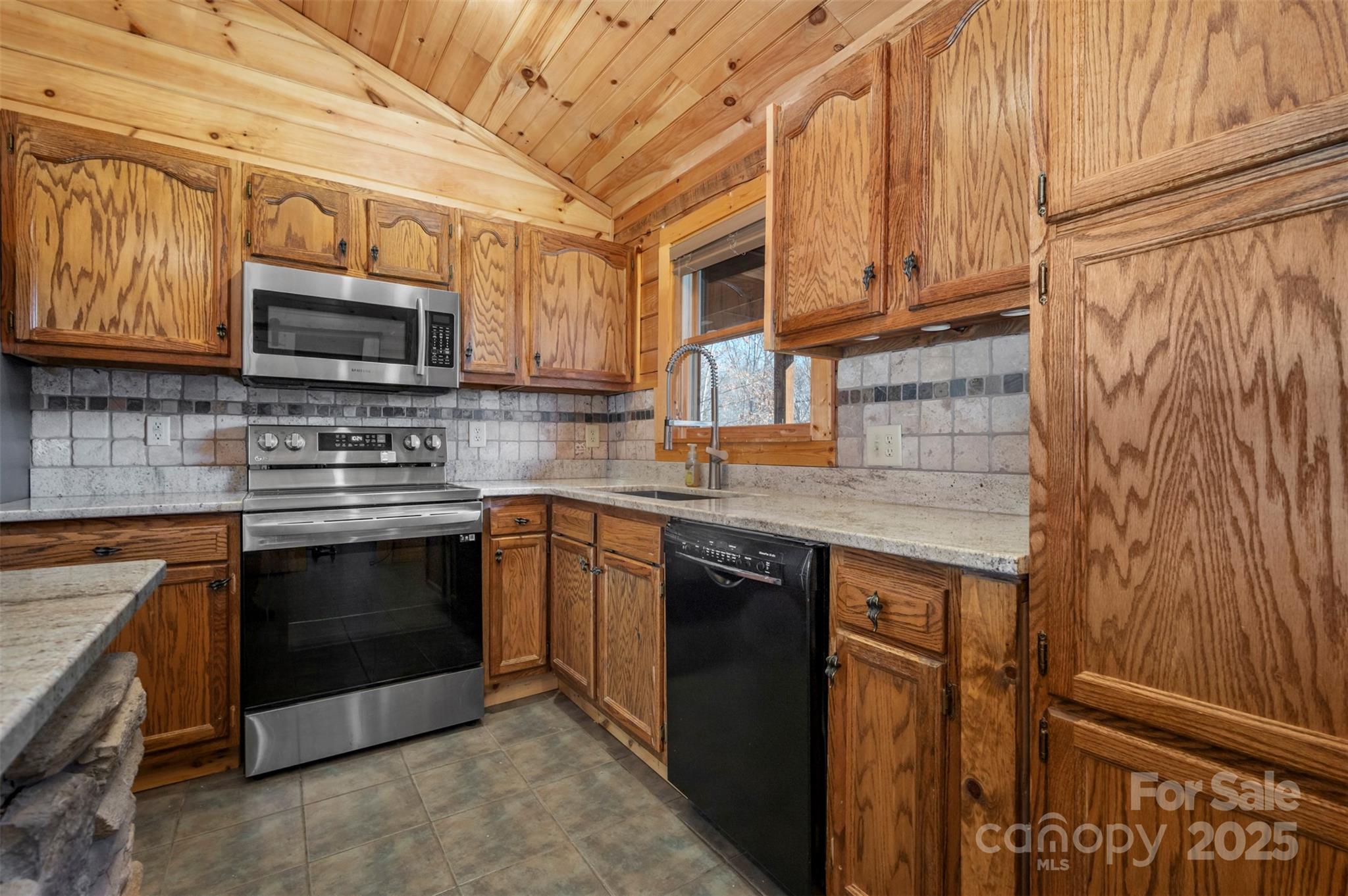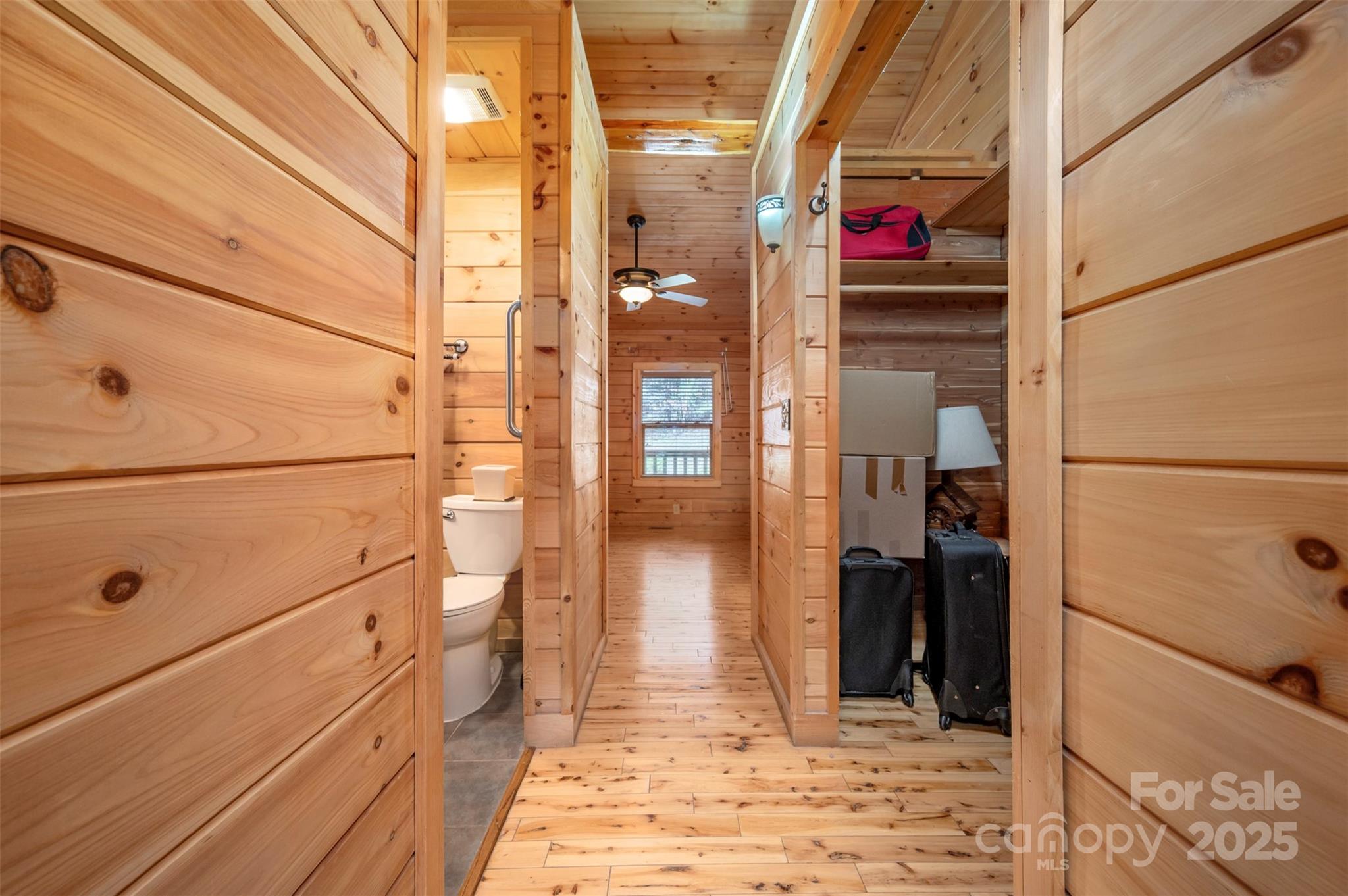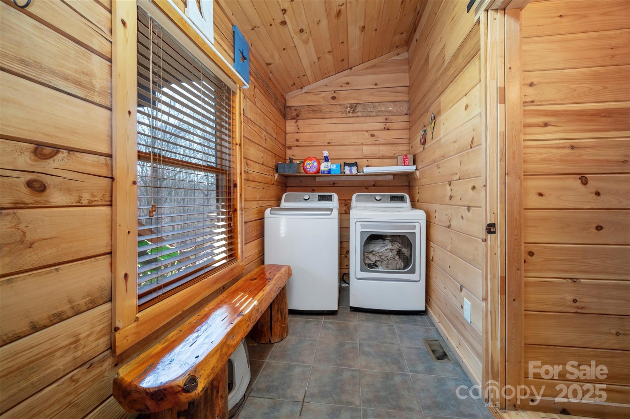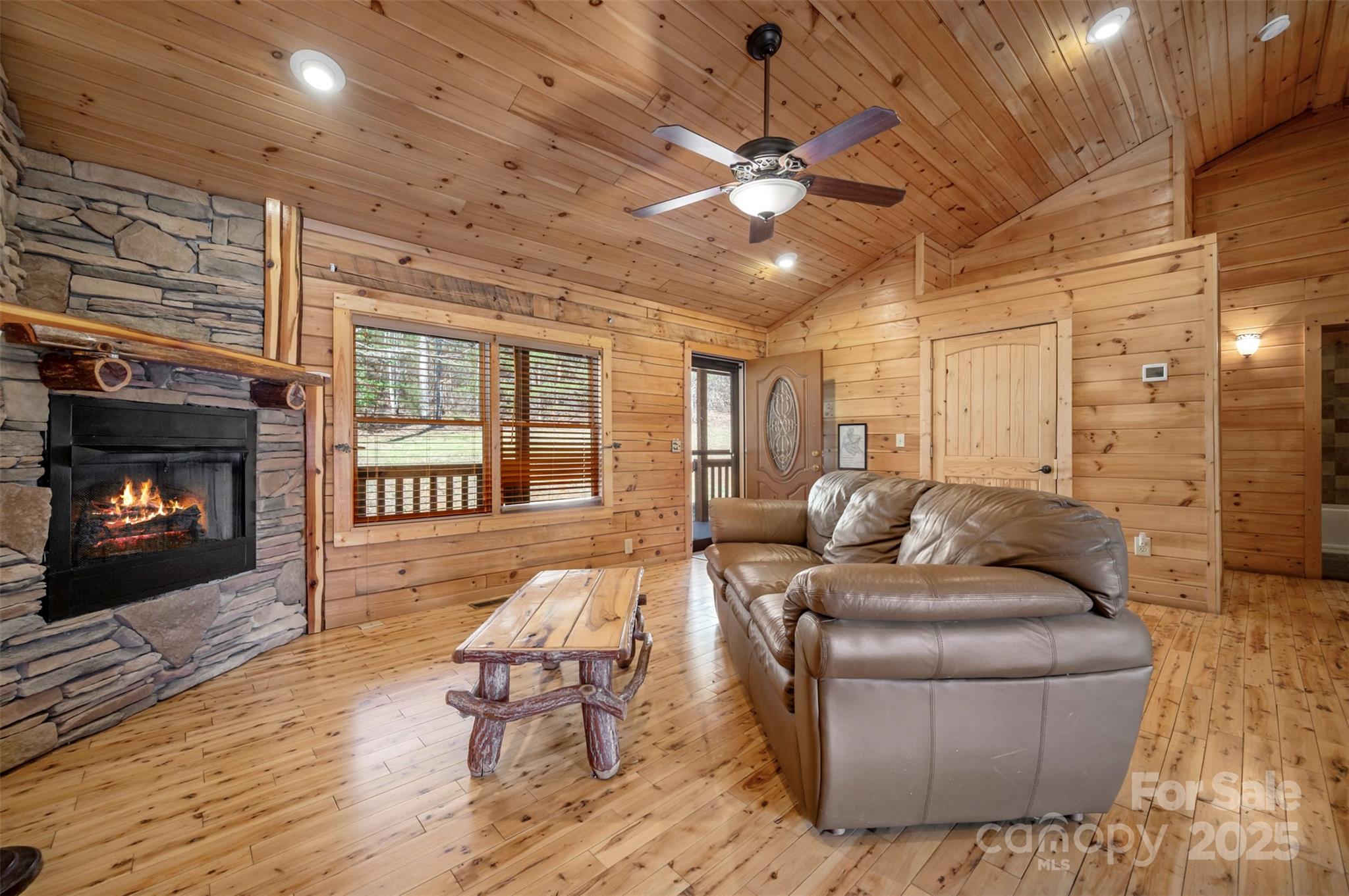 Clearwater Creek is a log home community located in the foothills of Western NC. It is gated and has a community park. In just a few minutes, you can access grocery stores, medical facilities, recreation, walking trails and much more. The lots are all large and this one is 2.78 acres with a CREEK at the back and is surrounded by trees for a private setting. The home is a 3 bedroom , 2 bath log home featuring covered front and back porches, a detached double garage and a 576 square foot studio that can be used as a guest house, recreation or hobby. The driveway is concrete. There is a new generator present in case of any power outage. The house, garage and studio all have new metal roofs and the HVAC unit was replaced in 2023. The interior of the house has wood floors and a gas log fireplace. The kitchen is open to the family room and has all the appliances. The large island with granite tops and rock finish is the focal point and a true gathering place.