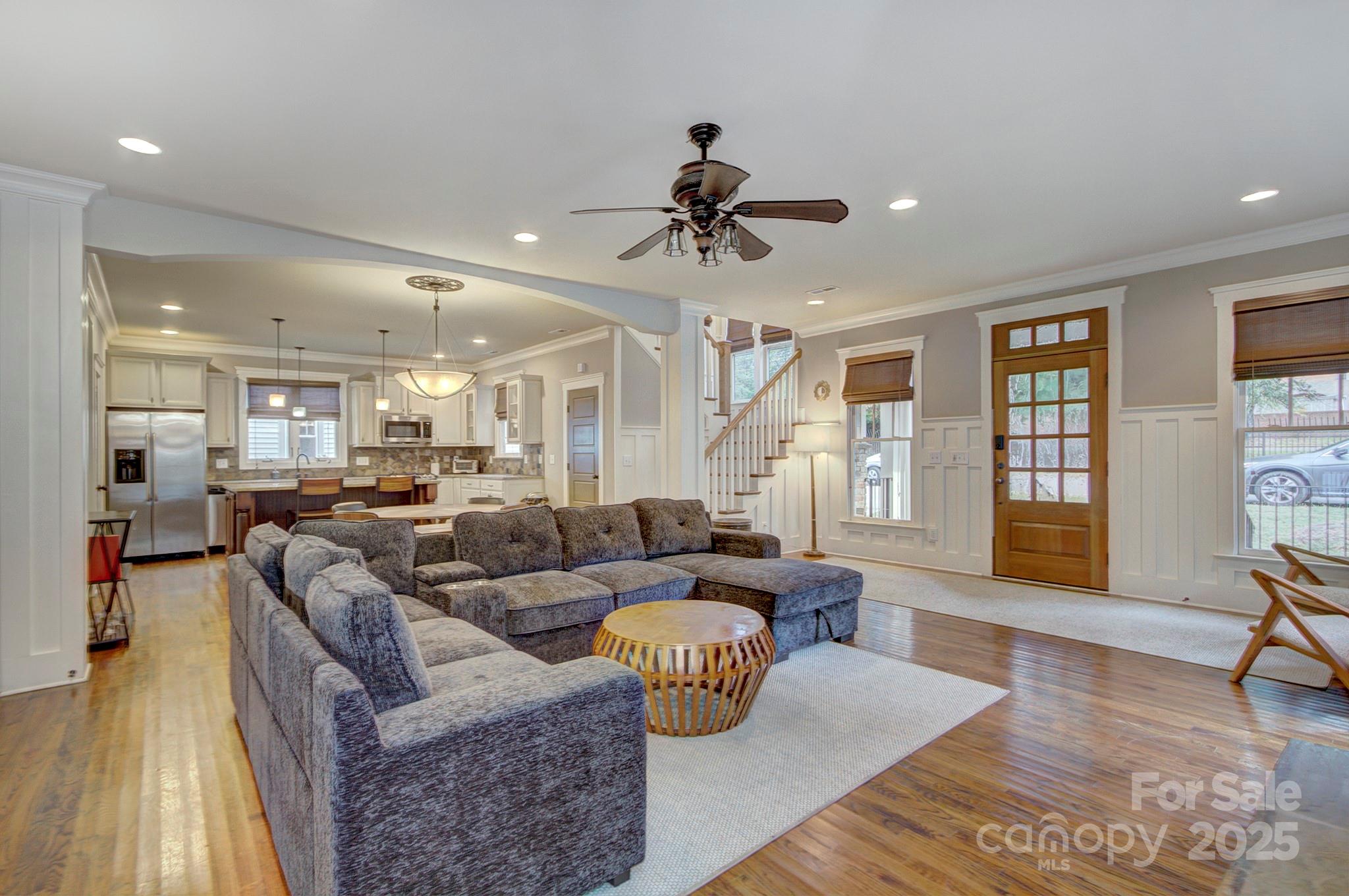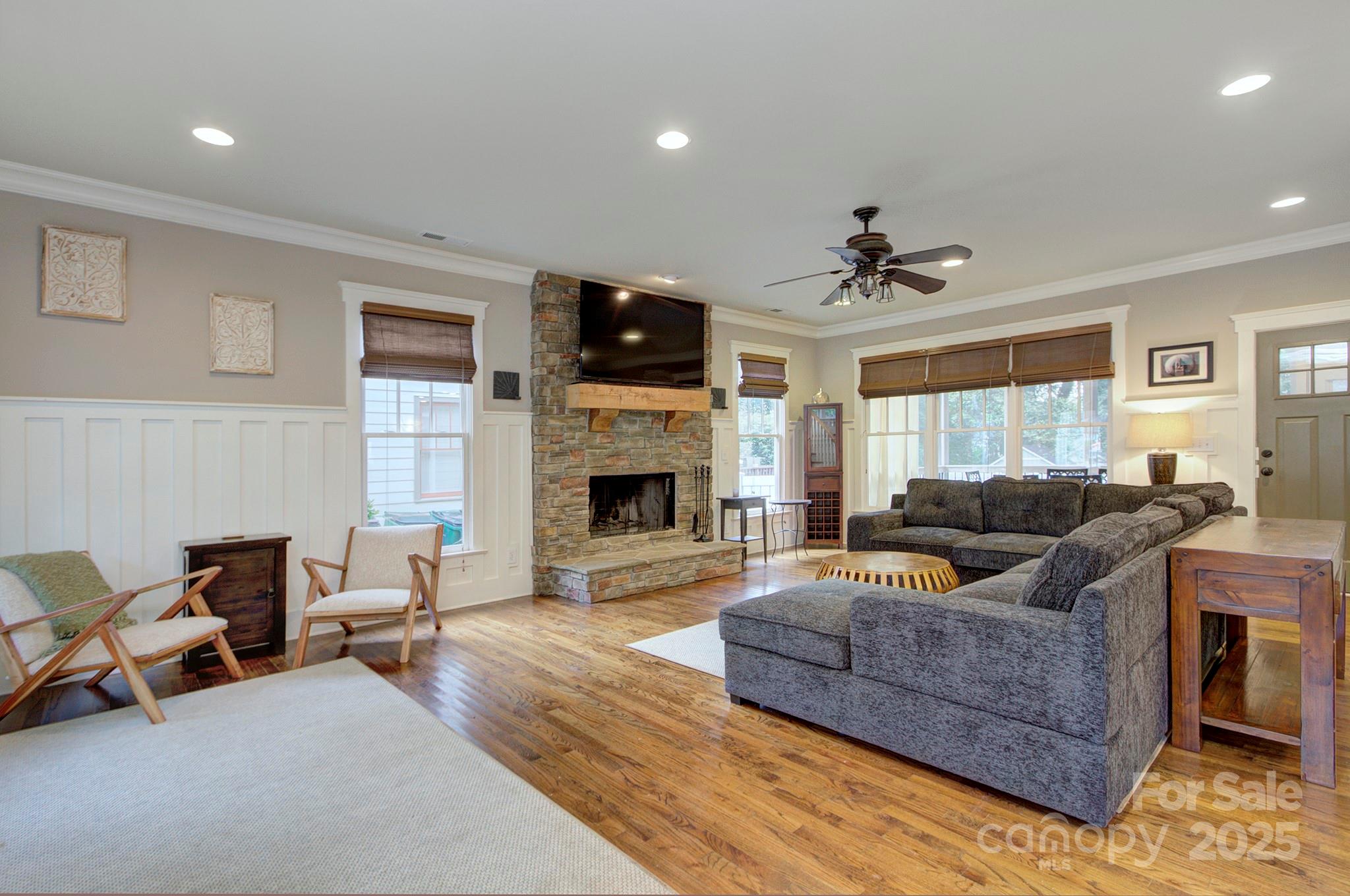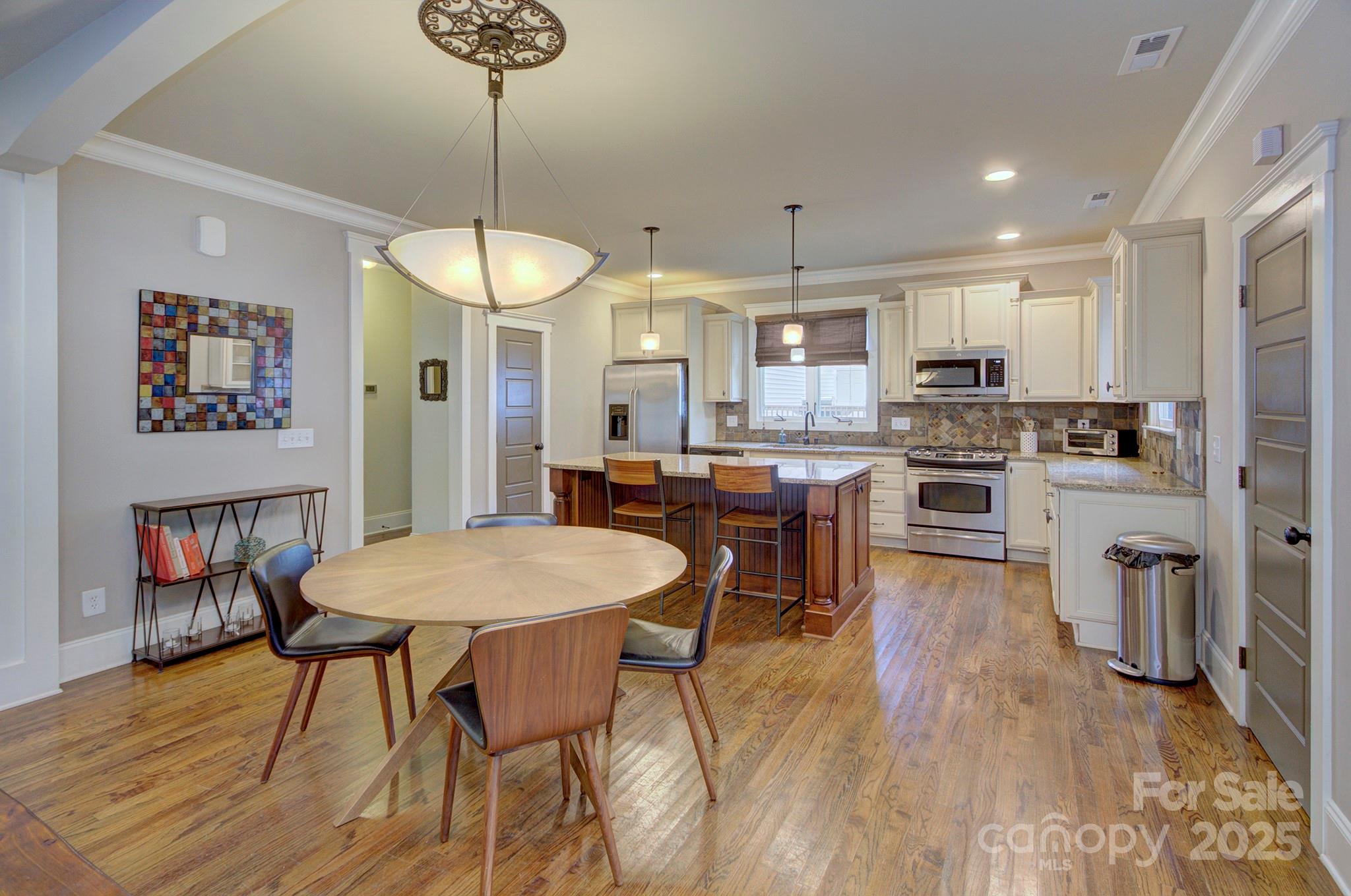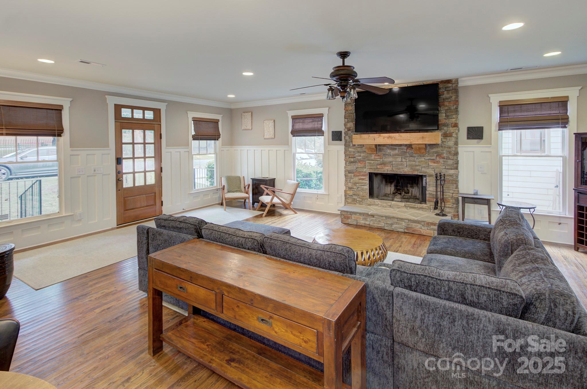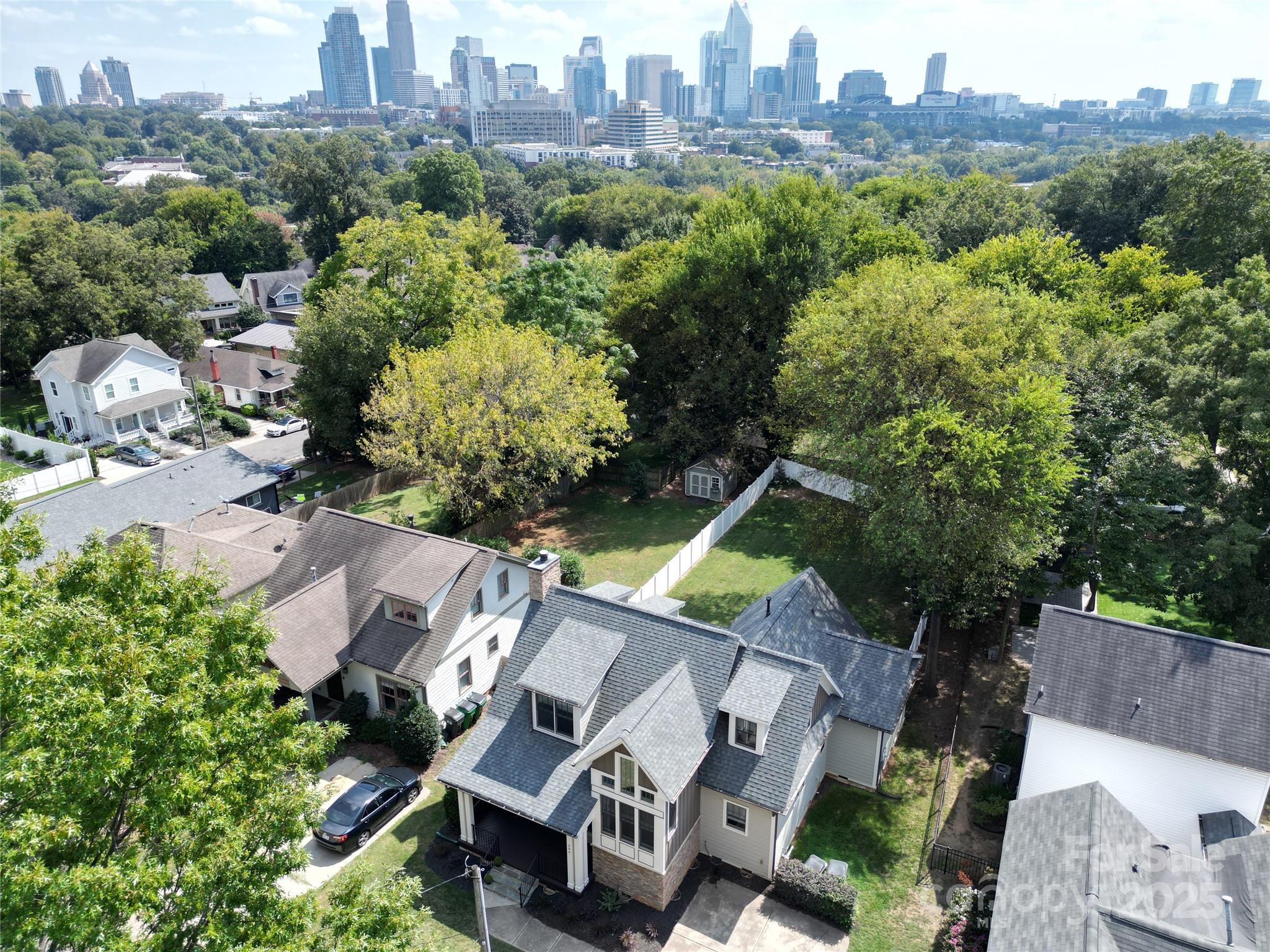 Built by Grandfather Homes, this gorgeous craftsman-style home is loaded with character and thoughtful details. From the inviting front porch to the spacious fenced backyard with Uptown views, it’s perfect for entertaining or simply relaxing in style. Inside, rich hardwood floors, custom trim and moldings, and a stunning stacked-stone fireplace create a warm and elegant living space. The open kitchen features upgraded finishes and a generous gathering space. The convenient main-level owners’ suite is a true retreat with coffered ceilings, a spa-like bath, and walk-in closet. Energy Star Certified for efficiency and comfort. Located on a friendly street in sought-after Biddleville — just minutes from Uptown Charlotte, parks, and dining. Furnishings available for purchase for a seamless, move-in-ready experience. This home has also been a successful short-term rental, offering excellent investment potential. NEW roof in 2024, and furnace replaced in 2025.