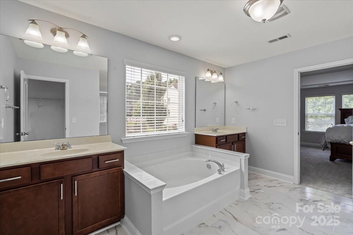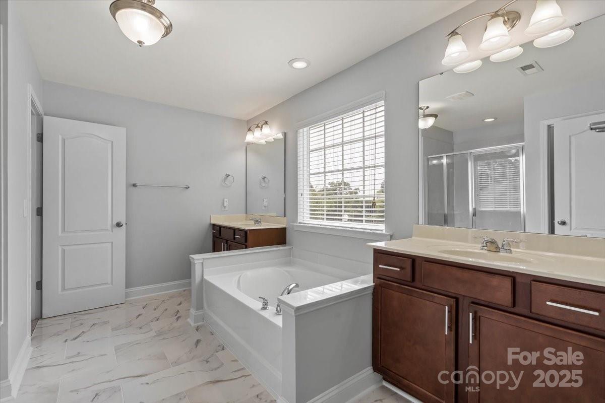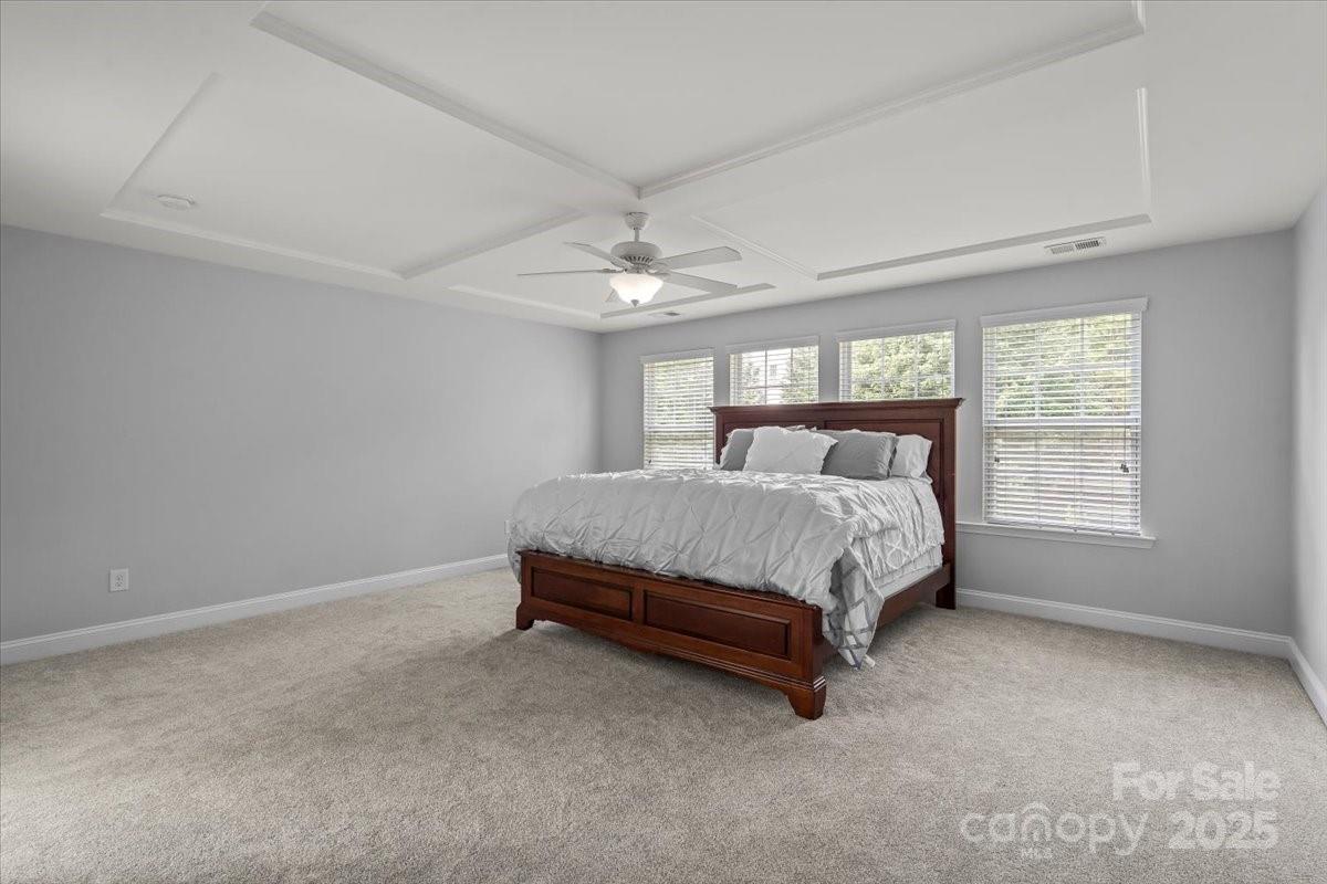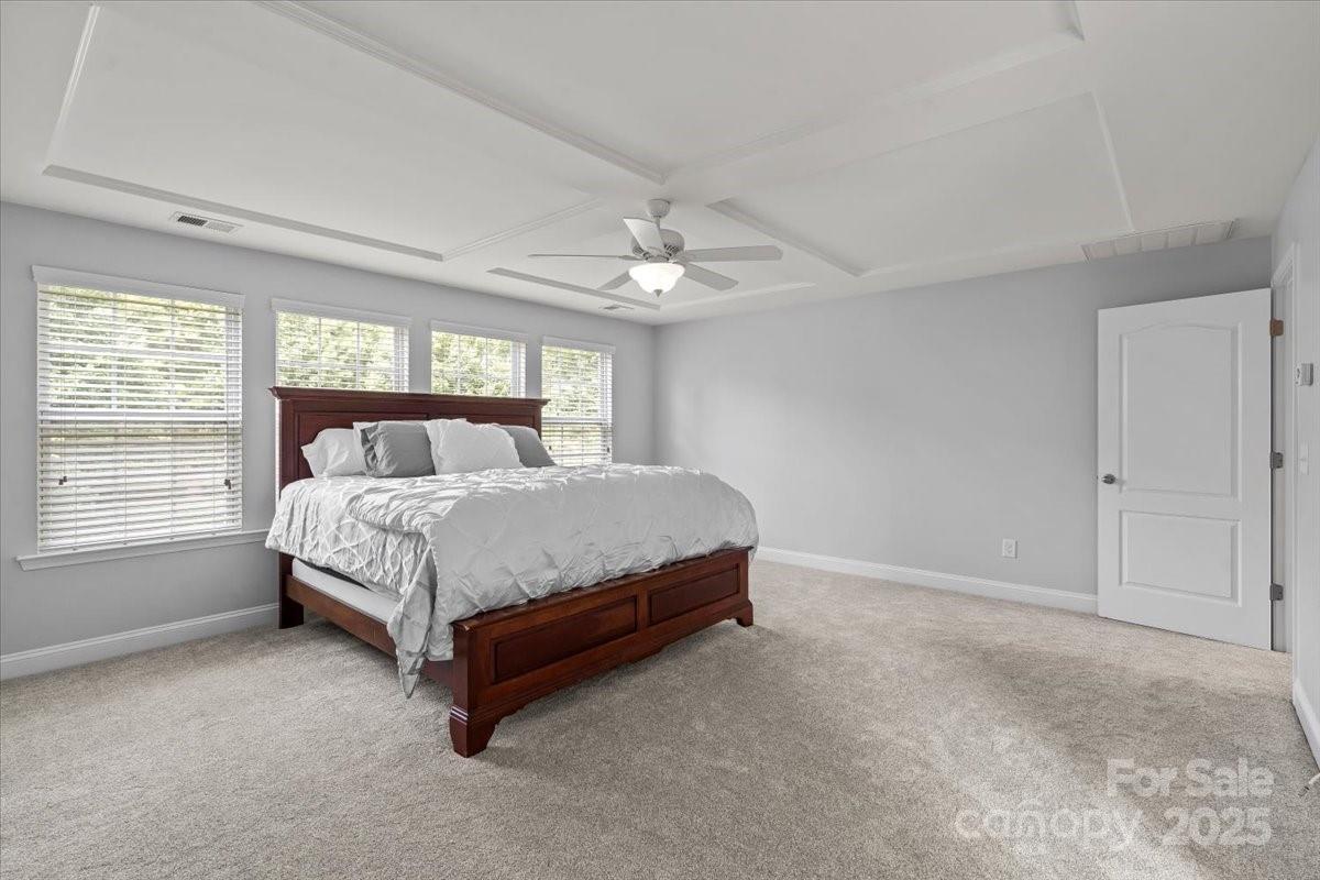 Welcome to this stunning 5-bedroom home located in the desirable Beckett neighborhood, offering fantastic amenities such as a pool and playground. Exterior and interior have been all been painted. The main floor features a convenient bedroom and full bathroom, perfect for guests or multigenerational living. The spacious kitchen boasts a large granite island, walk-in pantry, and ample counter space, ideal for entertaining. The dining room highlights elegant trey ceilings and wainscoting, adding a touch of sophistication. Upstairs, you'll find new carpet and padding throughout, a large loft perfect for relaxation or media room, and generously sized secondary bedrooms. The primary suite offers a beautiful coffered ceiling, while the primary bathroom includes new tile, a walk-in shower, an oversized garden tub, a huge walk-in closet, and a private water closet. Enjoy the meticulously maintained backyard, fully fenced for privacy, featuring a cozy firepit, expansive paver stone patio, and lush landscaping. The large covered front porch and sideload garage complete this stunning home, offering both comfort and style.