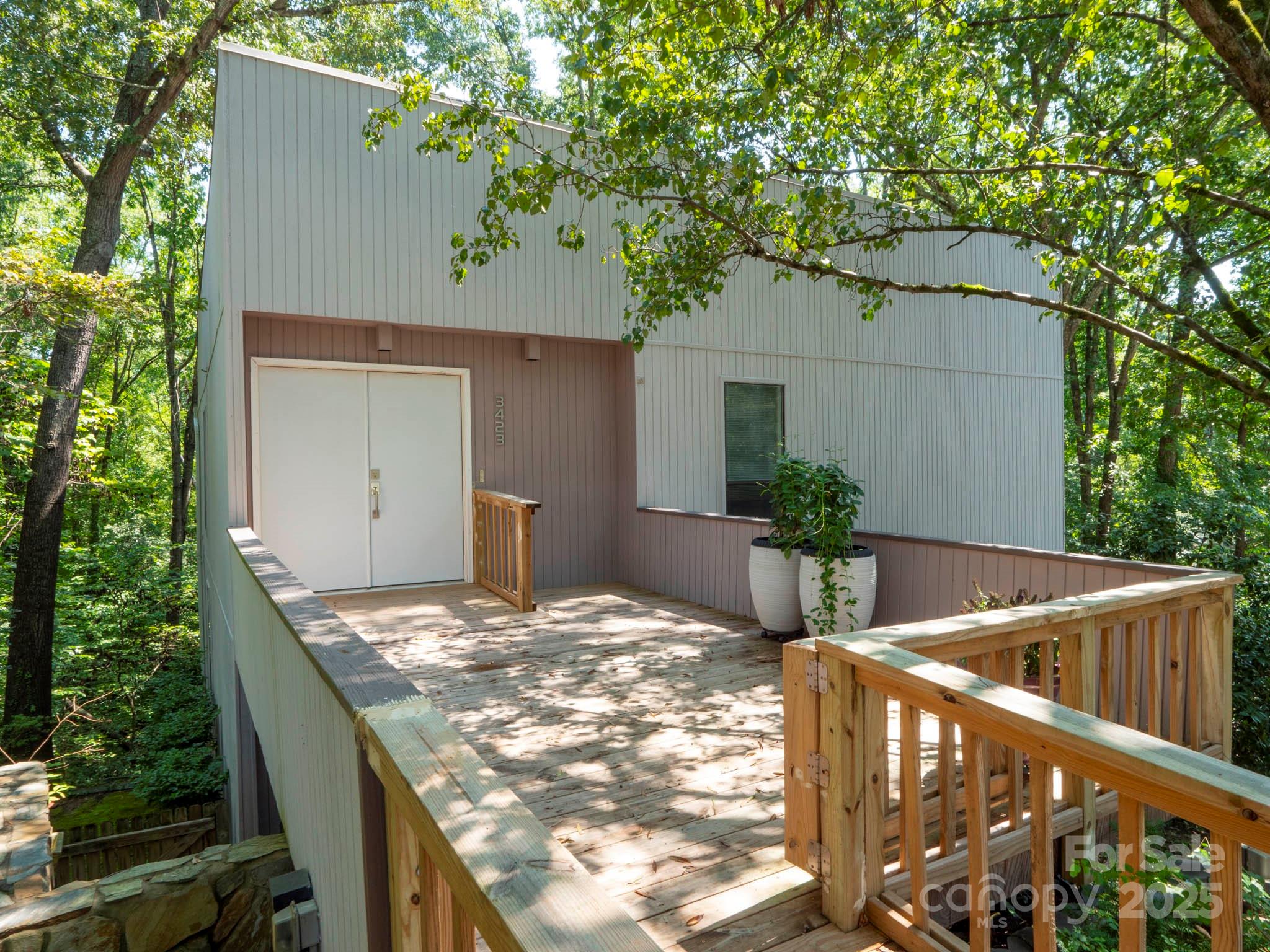 Discover a hidden gem in one of Charlotte’s most desirable neighborhoods. Set on a full acre lot, this charming home feels like a private treehouse retreat while still being close to top-rated public and private schools, shopping, and dining. Built in the late 1970s and lovingly maintained for more than three decades, the home blends character with modern comfort. Distinctive architectural features include wide banisters, angled walls, and multiple balconies that invite you to enjoy the peaceful wooded surroundings. The primary suite offers serene views of the sunrise through the trees, while the large gathering room with fireplace is perfect for entertaining or relaxing evenings at home. A cozy den provides the ideal setting for movie nights, and the lower-level deck, affectionately called “Our Secret Garden,” offers a private escape for quiet reflection or outdoor entertaining. The one-acre wooded lot provides natural beauty and privacy, yet the home is part of a vibrant and welcoming community. Neighbors on Tinkerbell Lane enjoy camaraderie, annual gatherings, and a true sense of belonging that is increasingly rare. For more than 30 years, this home has been filled with love, laughter, and cherished memories — and now it’s ready for its next chapter. 3423 Tinkerbell Lane offers not just a house, but a lifestyle — one filled with warmth, connection, and the magic of living among the trees. Come see why this home is so special — and imagine making it your own.
