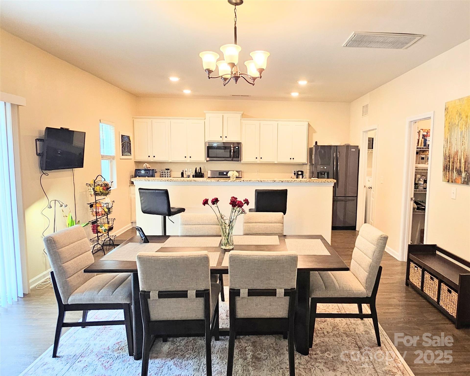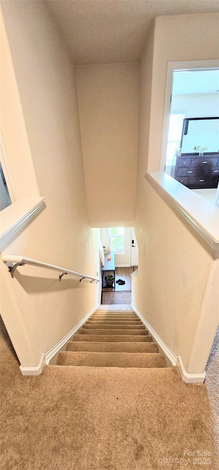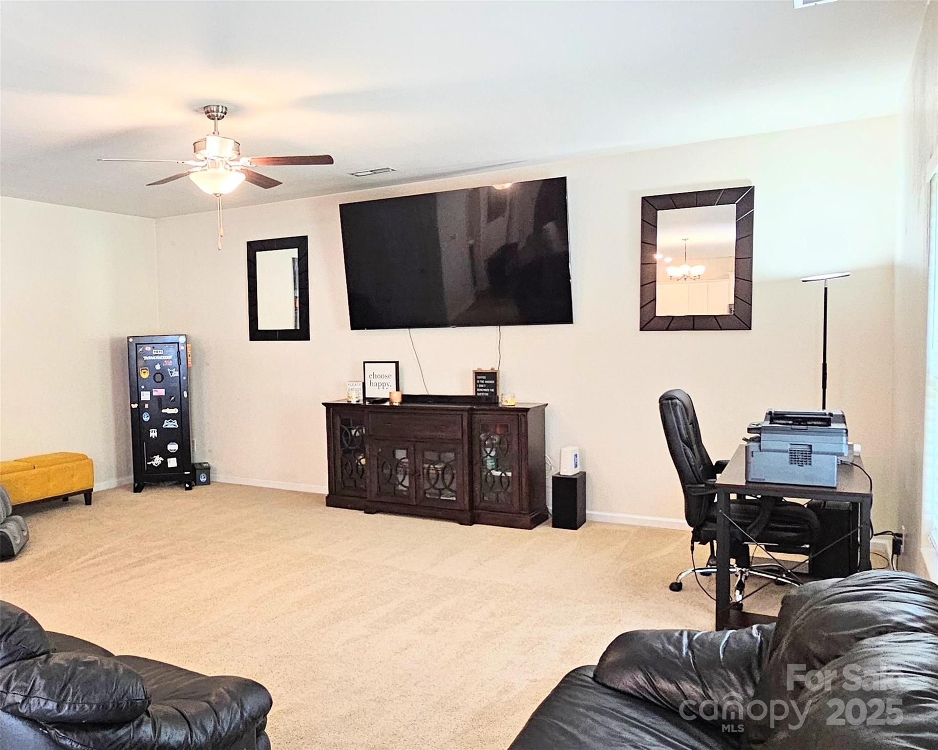 This well-kept open-floor plan home offers 5 bedrooms and 2.5 bathrooms, designed for both comfort and functionality. The main level features a welcoming blend of carpet and laminate wood flooring, a large living room, an office/flex space, a convenient half bath, laundry room, dining area, and a kitchen with island and granite countertops. All appliances convey, making it move-in ready. Upstairs, you’ll find a spacious primary suite with a walk-in closet, soaring ceiling with fan, and a relaxing ensuite bath complete with a stand-up shower, garden tub, and double vanity. The upper level also includes four additional bedrooms to accommodate family, guests, or hobbies. Enjoy outdoor living with a fenced backyard, concrete patio, and charming front porch. A two-car garage with EV outlet adds modern convenience. The community offers a dog park and playground, and its ideal location is just 3.5 miles from Hwy 485 and about 20 minutes from Uptown Charlotte.
