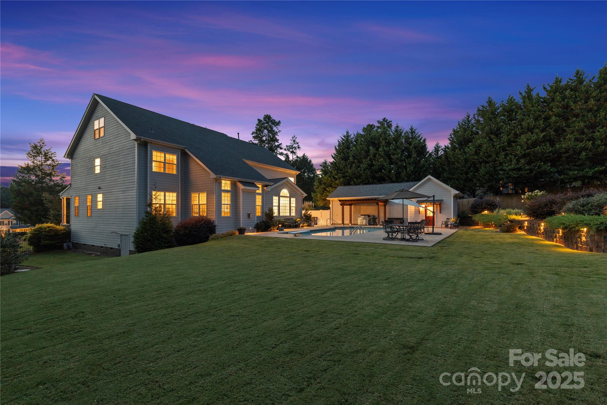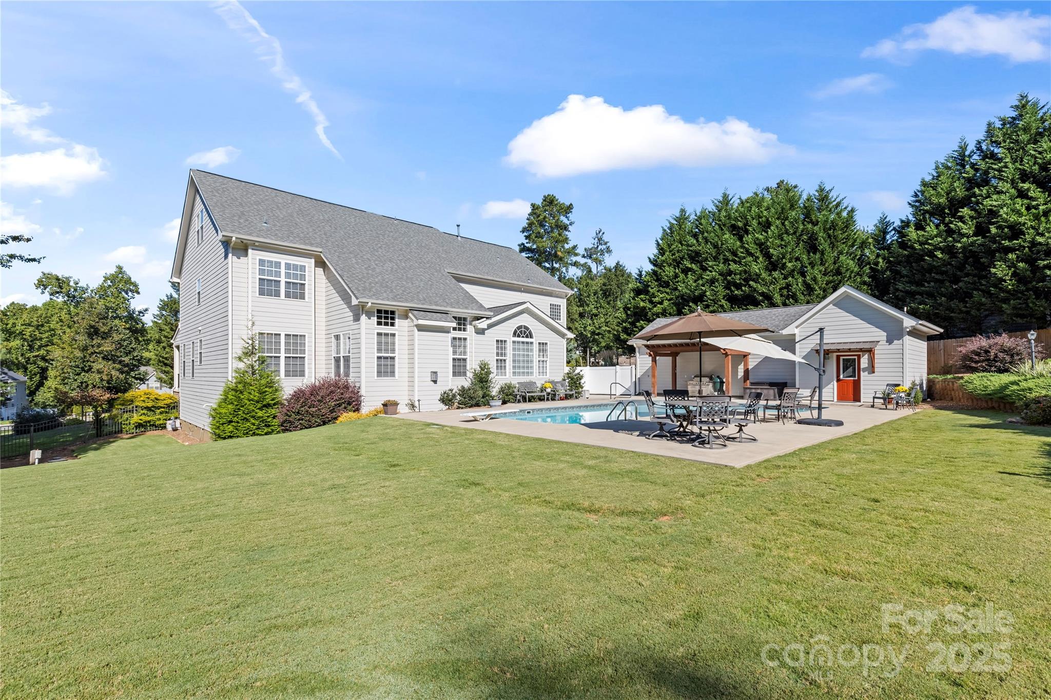 Welcome to 388 Cove Creek Loop in Mooresville – a stunning 5,187 sq ft, 2.5-story home offering 4 bedrooms, 4.5 baths, with a pool, detached workshop and an abundance of upgrades inside and out. Thoughtfully improved over the last few years, this property is truly move-in ready and designed for comfort, efficiency, and outdoor enjoyment. The front entrance has an open foyer and a dramatic circular staircase. The main level also offers hardwood floors, formal living and dining rooms, office, family room with fireplace/gas logs and blower. The gourmet kitchen has a walk-in pantry, granite countertops, an island, breakfast bar and built-in buffet. The kitchen also has a sunny eat-in area that overlooks the pool & lovely landscaped backyard. The refrigerator, washer and dryer are included. The whole house has a water treatment system with R/O water on tap at the kitchen sink and the refrigerator water dispenser. A 2nd stairway is located in the kitchen providing convenient access to the upper levels. The second level has new carpet, 4 spacious bedrooms/3 full baths including an oversized primary suite w/ sitting area and 2 walk-in closets. The third floor is a finished area that can be used as a bonus/exercise room/playroom or additional storage. This area has a full bath, a closet and walk-in access to the attic. The house was recently painted inside and out. The backyard retreat features a new heated pool house with half bath and is attached to a finished 32x20 workshop that offers endless possibilities. The workshop is heated and is wired for an EV Charging Station. A pergola for the pool deck has recently been built and the pool pump was replaced in 2025. Professional landscaping and lighting was installed in 2021 and a new irrigation control panel and rain sensor was recently added. Relax and enjoy the large backyard with new privacy fencing and appreciate the beautifully installed landscaping and lighting. Some of the other recent system updates to the home include installation of a Rinnai tankless water heater, a humidifier for the entire house installed in the crawlspace, 2 new HVAC units (2nd floor in 2021 and 3rd floor heat pump in 2023) This home combines elegance, functionality, and outdoor living in one remarkable package and is Ready to Welcome It's Next Owners.
