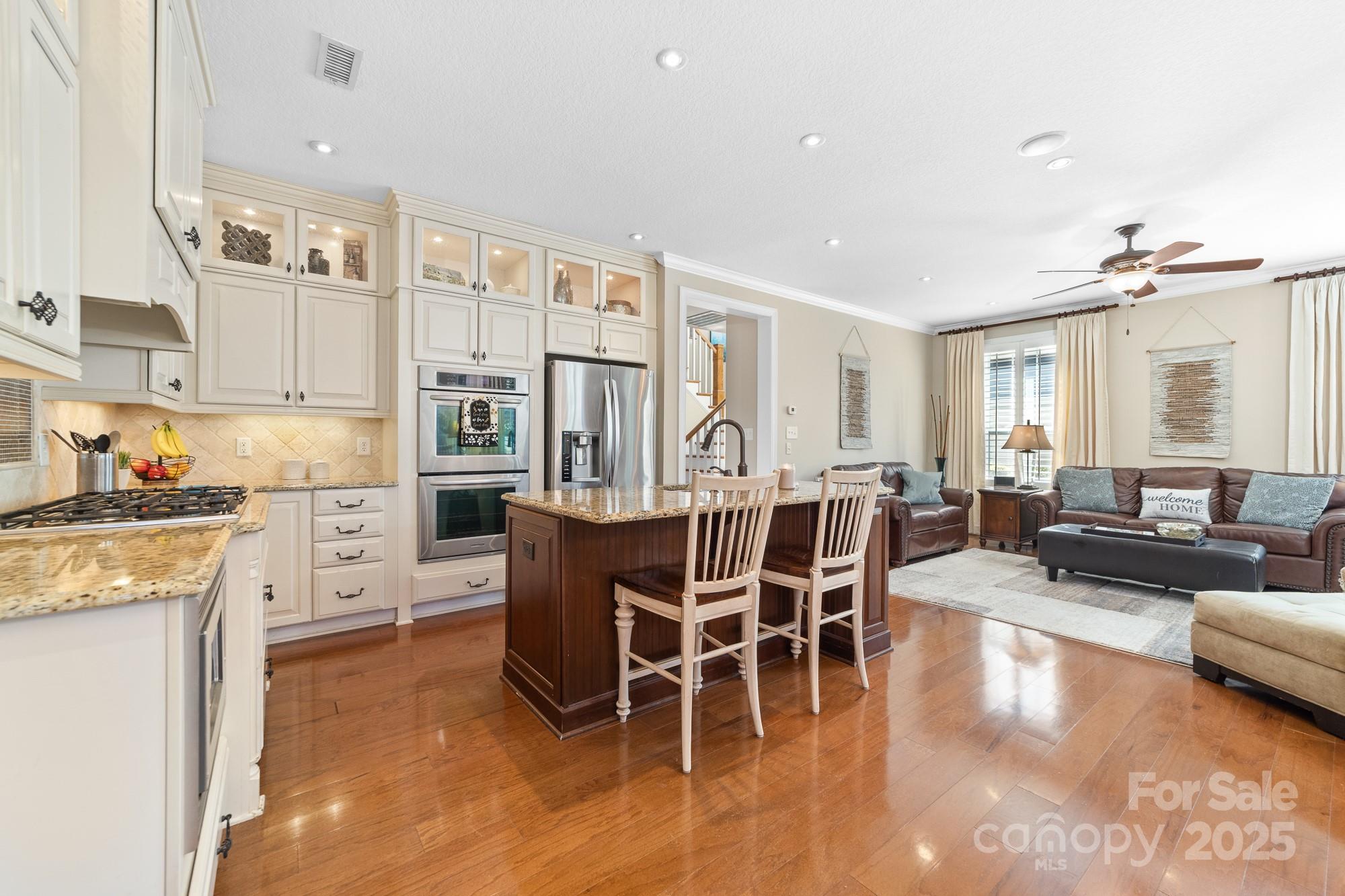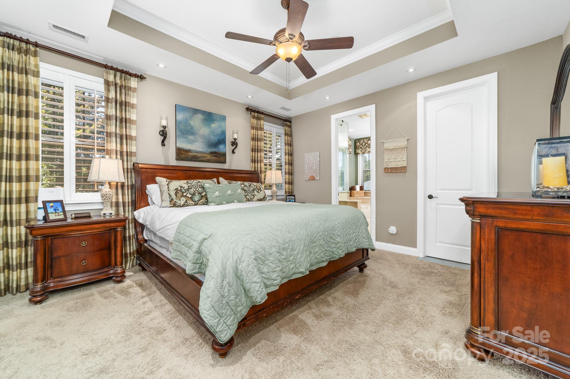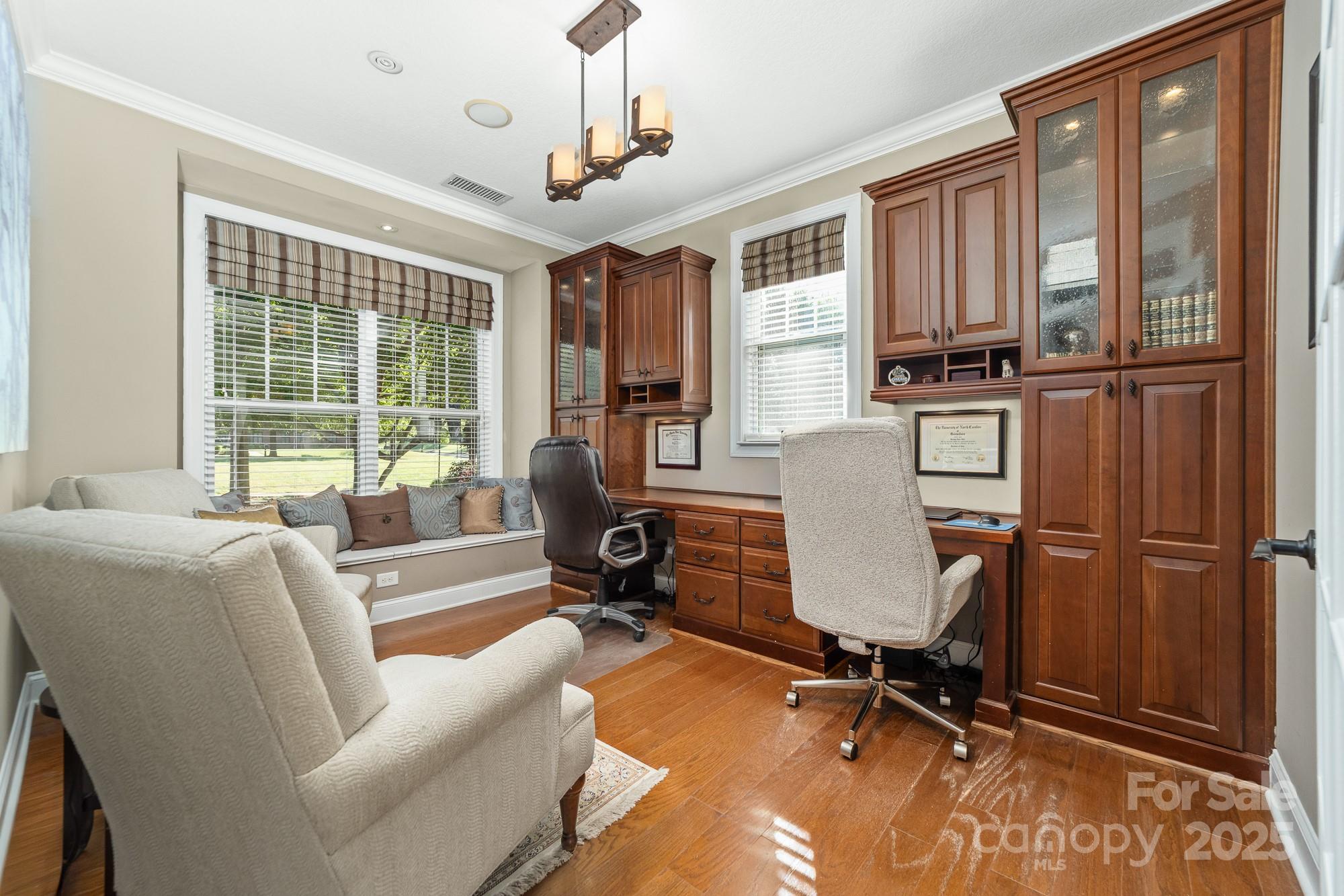 Welcome Home to 2048 Middleton Farm! This is a rare opportunity to purchase a former model home in the desirable South Point Village neighborhood of Belmont! Well maintained by the original owners, this home boasts many builder upgrades and additional improvements. Open concept kitchen features upgraded cabinets with accent lighting, stainless appliances, double oven, gas cooktop, and a butler's pantry. Beautiful windows with plantation shutters surround the living and breakfast areas with natural light. Stone fireplace with gas logs adds a cozy charm to the space. Elegant dining room with coffered ceiling and designer molding. French door allows privacy in the home office which features a dual built-in desk and window seat storage. Crown molding detail, high ceilings (9ft) and doorways (8ft) on both levels. Spacious primary ensuite is a relaxing retreat with a sitting area, tray ceiling, two custom walk-in closets, frameless glass shower, garden tub, and dual sink. Two additional bedrooms and a loft for flexible use space. Surround sound speaker system with individual volume control in living, office, primary bedroom, and loft. Don't miss the large storage closet under the stairs or the extra space in the garage perfect for a workshop, golf-cart, or even a third vehicle parked tandem. 240 volt outlet added to garage to accommodate EV chargers. Enjoy the outside on the upper or lower front porches, on the rear paver patio w/ pergola and firepit, or the greenspace just across the street. Sidewalks throughout the neighborhood lead to schools, Belmont Town Center w/ Harris Teeter, and even to downtown Belmont which is only one mile away. Public access to Lake Wylie is nearby. Only 15 minutes to the airport or 25 minutes to Uptown Charlotte.