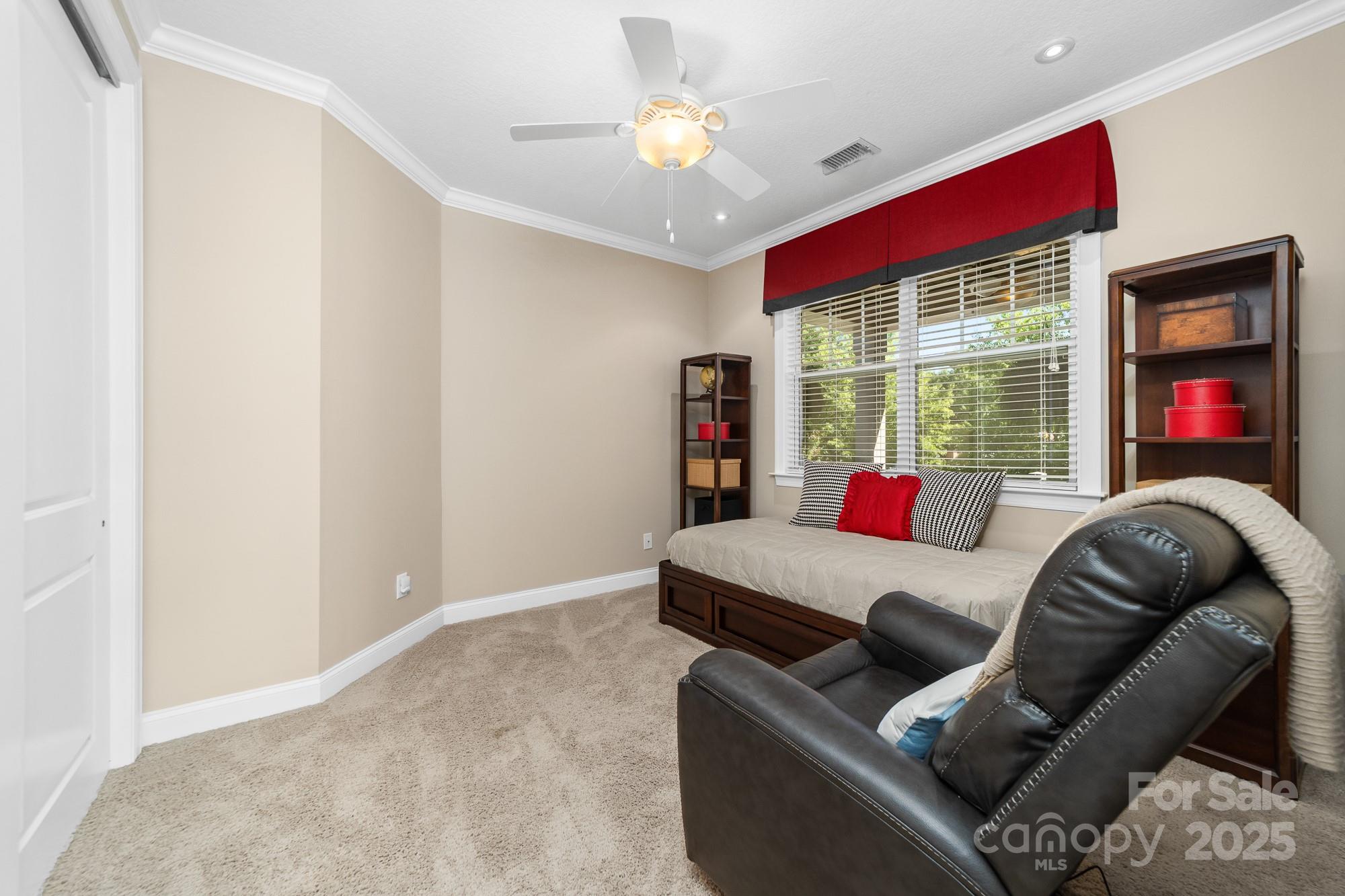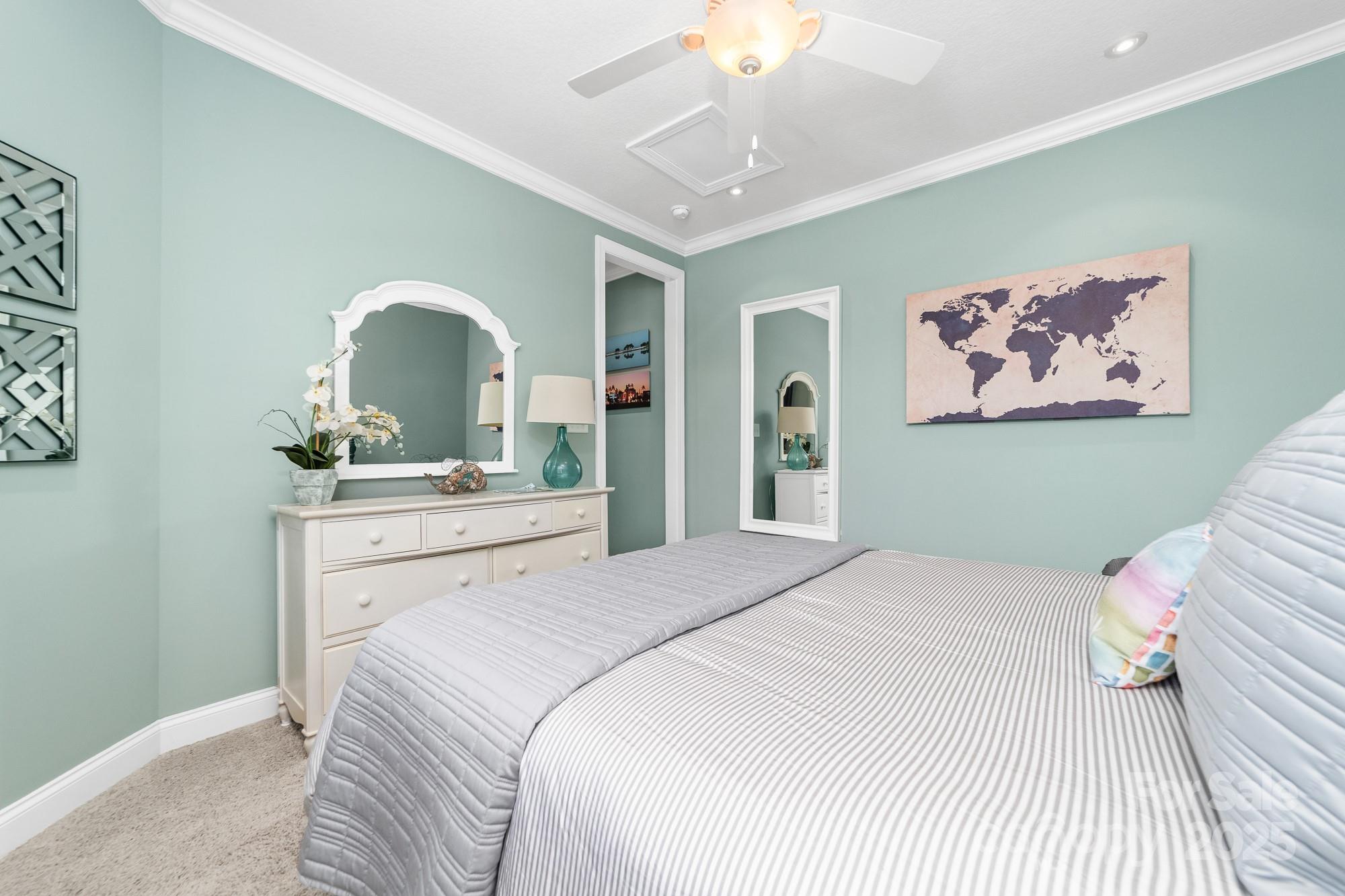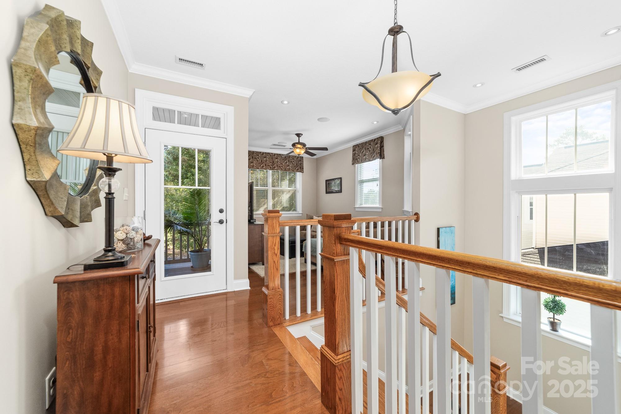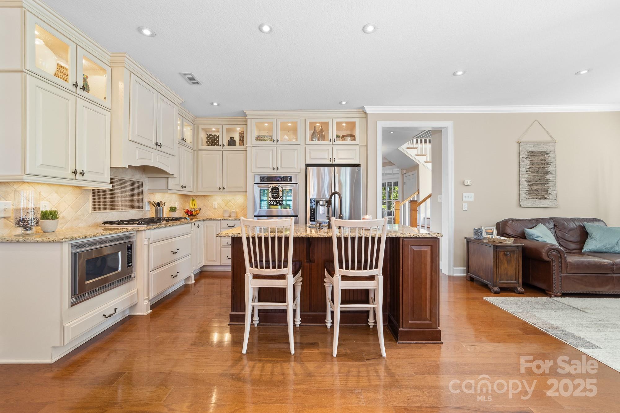 Welcome Home to 2048 Middleton Farm! This is a rare opportunity to purchase a former model home in the desirable South Point Village neighborhood of Belmont! Well maintained by the original owners, this home boasts many builder upgrades and additional improvements. Open concept kitchen features upgraded cabinets with accent lighting, stainless appliances, double oven, gas cooktop, and a butler's pantry. Beautiful windows with plantation shutters surround the living and breakfast areas with natural light. Stone fireplace with gas logs adds a cozy charm to the space. Elegant dining room with coffered ceiling and designer molding. French door allows privacy in the home office which features a dual built-in desk and window seat storage. Crown molding detail, high ceilings (9ft) and doorways (8ft) on both levels. Spacious primary ensuite is a relaxing retreat with a sitting area, tray ceiling, two custom walk-in closets, frameless glass shower, garden tub, and dual sink. Two additional bedrooms and a loft for flexible use space. Surround sound speaker system with individual volume control in living, office, primary bedroom, and loft. Don't miss the large storage closet under the stairs or the extra space in the garage perfect for a workshop, golf-cart, or even a third vehicle parked tandem. 240 volt outlet added to garage to accommodate EV chargers. Enjoy the outside on the upper or lower front porches, on the rear paver patio w/ pergola and firepit, or the greenspace just across the street. Sidewalks throughout the neighborhood lead to schools, Belmont Town Center w/ Harris Teeter, and even to downtown Belmont which is only one mile away. Public access to Lake Wylie is nearby. Only 15 minutes to the airport or 25 minutes to Uptown Charlotte.