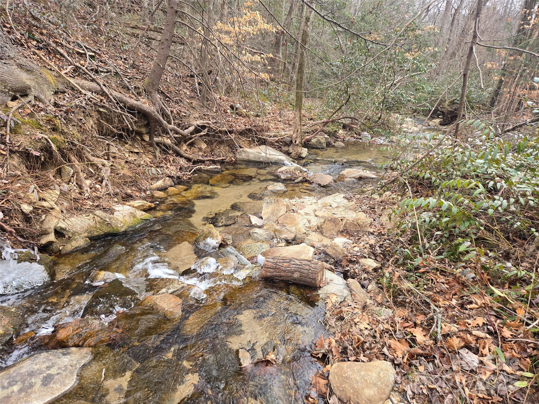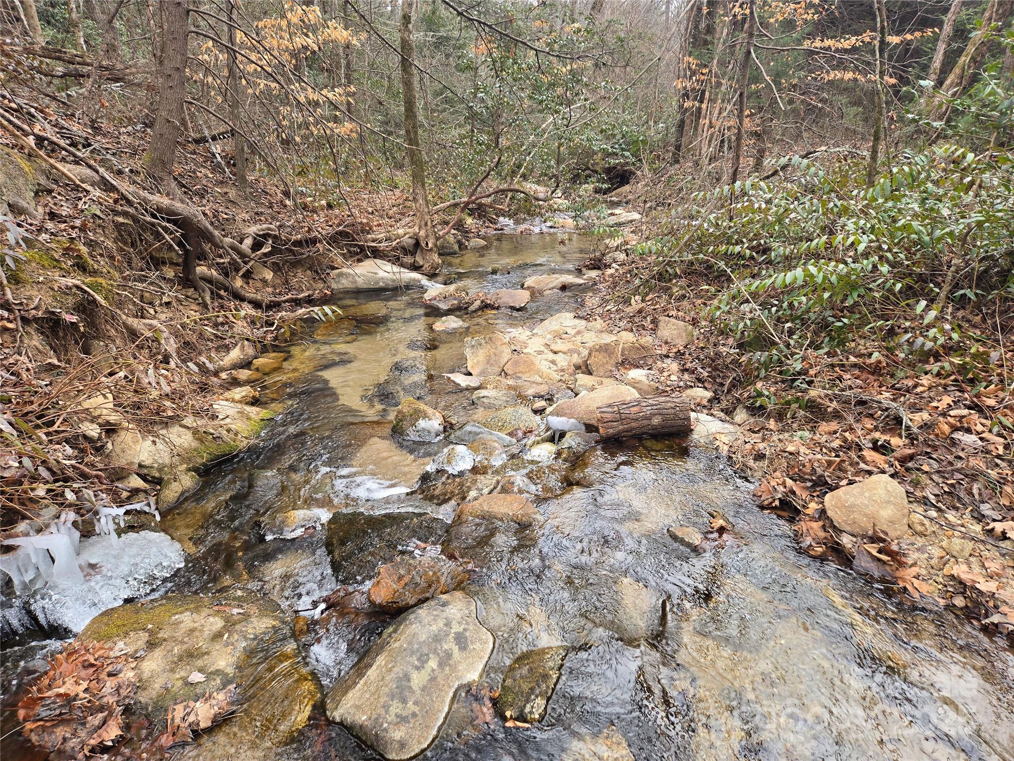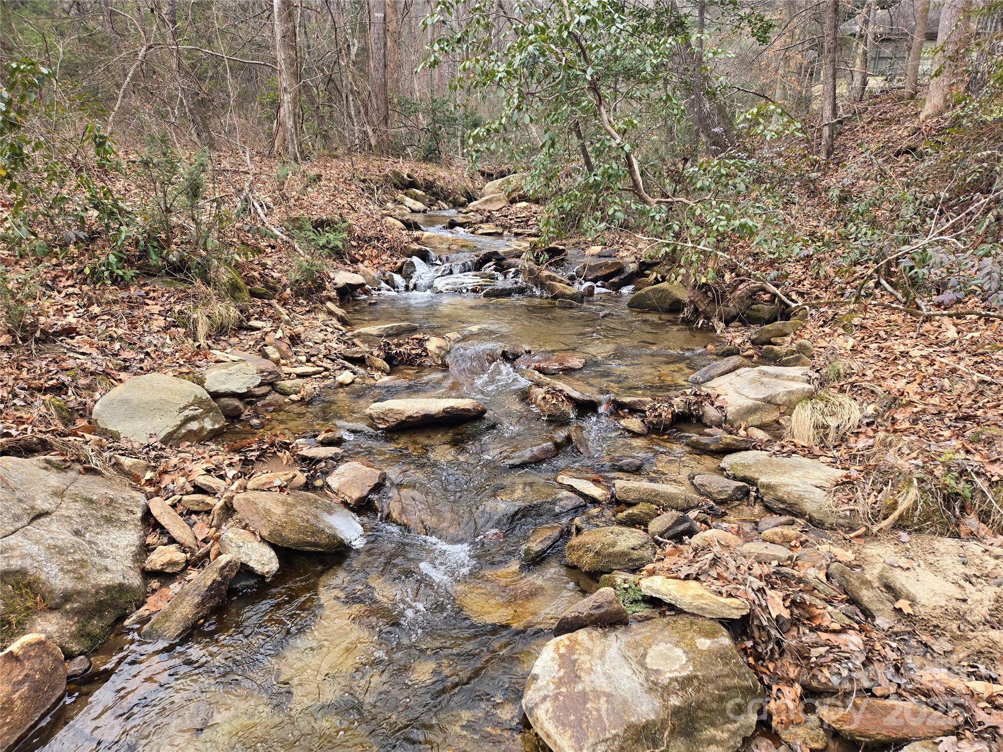 A Babbling Brook borders this gently sloping lot inside the gate in Rumbling Bald on Lake Lure. With approximately 140 feet of beautiful mountain stream frontage, you can enjoy the sounds of water cascading down the small native rocks and boulders throughout the year. A gentle topography makes this property an excellent option to build your dream home. Stunning views of Bald Mountain await you during the winter months. This property sits inside the main gate within close proximity to many of Rumbling Bald's amenities including the Beach, Club House, Restaurants, Pools, Wellness Center, and others. Underground utilities including water, power, and high-speed fiber optic internet are available. Adjoining 1.26 acres of bonus land is available from the POA that would add approximately 380 feet of crystal-clear stream to your property and is eligible for combination.