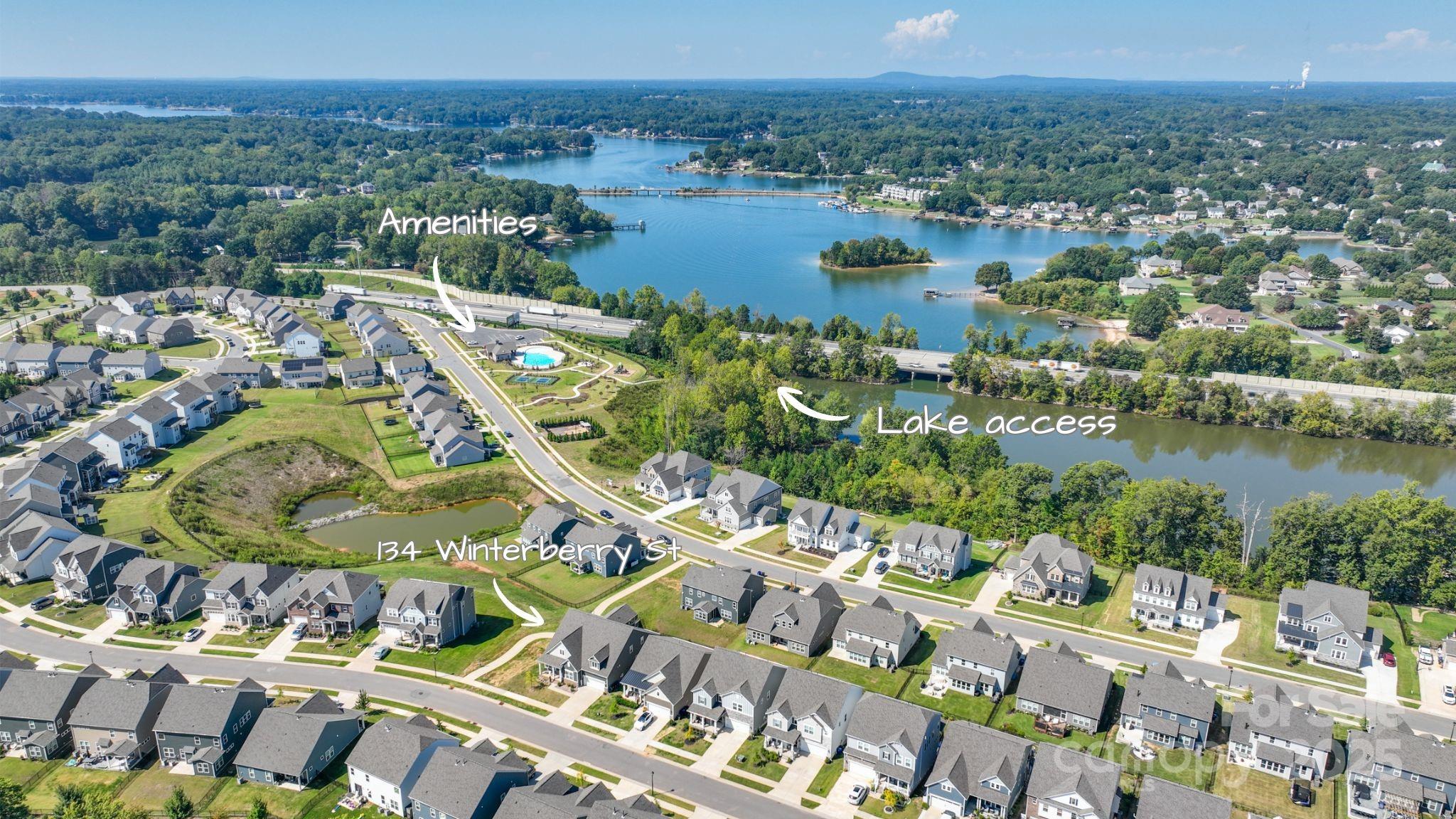 Outstanding home in Mooresville's Reid's Cove neighborhood, with sunset views of Lake Norman! Excellent, open floor plan with 5 bedrooms & 5.5 baths. Very well-maintained home and shows like a model. Features amazing kitchen with a spacious island, upgraded soft-close cabinets with lots of drawers, gas cooktop, stainless hood, and an elegant tile back splash. Three bedrooms on the main floor, including the primary suite! You'll have tons of room, with over 4,700 heated square feet, including the finished basement. (Basement has rough plumbing for wet bar or kitchenette.) Excellent set up for multi-generational living. 2023 construction. Enjoy beautiful sunset views from the triple-decker porch out back! Tesla Level 2 Car charger available in garage. Dual Rinnai tankless hot water heater, home theater pre-wire in basement. 3-zone HVAC. Gigabit internet / ethernet. Reid’s Cove amenities include a resort-style pool, lit pickleball court, playground, Lake Norman access & kayak racks. Take a paddle on Lake Norman and visit local restaurants for lunch or dinner. Excellent schools. Location offers easy access to shopping, restaurants, and entertainment in Mooresville and Davidson.