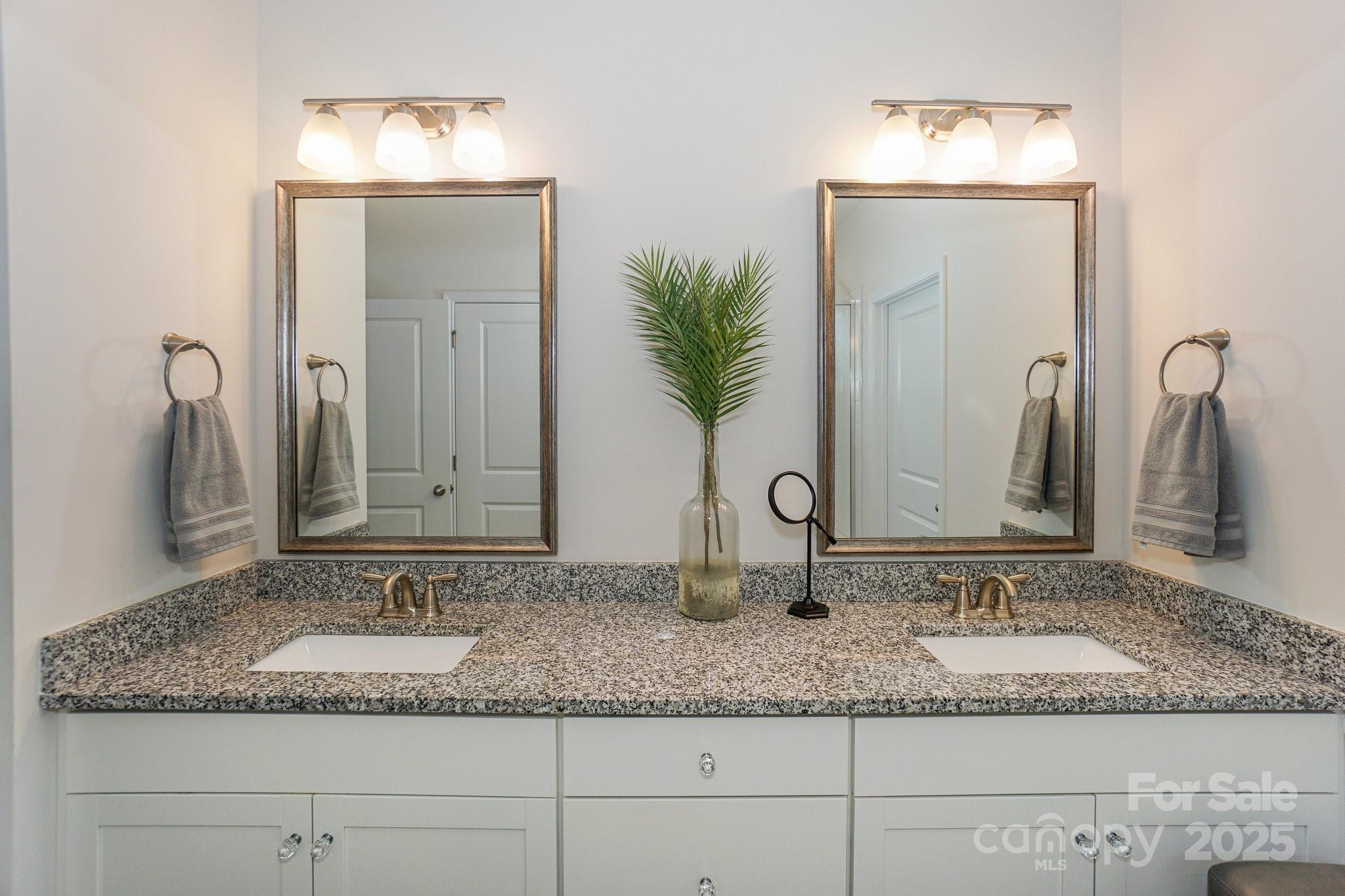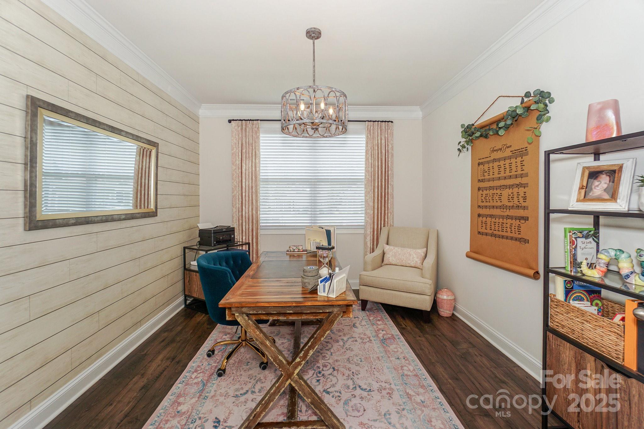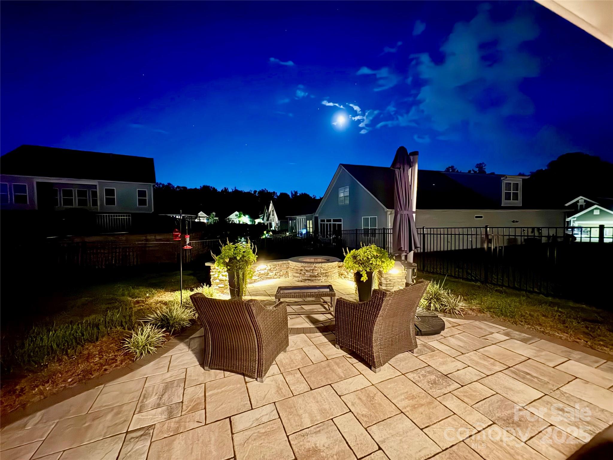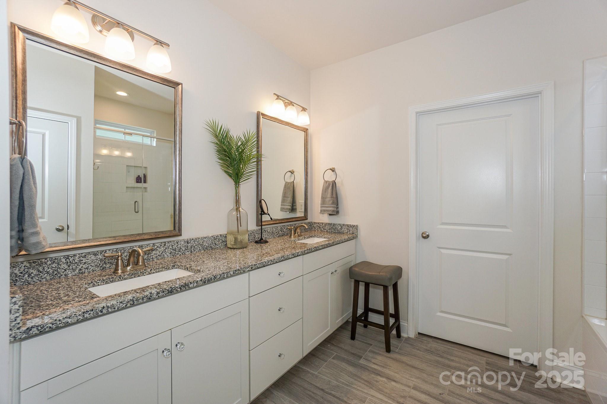 Welcome to Lakewalk living! This 3-bed, 3-bath home, built in 2020, offers 2,529 HLA of refined yet comfortable space plus a bonus loft and walk-in attic storage. Located on a quiet street, the property backs to HOA-maintained green space with benches and a walking trail, offering a sense of openness without the maintenance. Inside, the main level is designed for effortless living and entertaining. A gourmet kitchen anchors the open layout, featuring white shaker cabinetry, quartz counters, a black shiplap island with seating, bronze pendants and stainless steel appliances and gas range. The kitchen flows into a light-filled dining area and great room with crown molding, hardwood floors and a stone-faced gas fireplace. Nearby, an office/flex room with a beautiful accent wall provides a private workspace or guest space. A spacious walk-in pantry keeps essentials organized with custom shelving. The main-level primary suite is generously sized with hardwood floors and a tray ceiling. Its ensuite bath offers dual vanities, a tiled walk-in shower with bench and glass enclosure, and access to a custom-shelved closet. A second bedroom and full bath are on this level, while upstairs you’ll find another bedroom and bath plus a large loft/bonus room suitable for a gym, media room or playroom. The laundry room includes cabinetry and a sink for convenience, and a huge walk-in attic provides storage. Outdoor living is a highlight. French doors open to a covered veranda with a ceiling fan for year-round use. A custom paver patio features a curved stone bench and built-in fire pit under a cantilevered umbrella, making it perfect for gatherings. The fenced yard is professionally landscaped and borders community green space. The Lakewalk community offers resort-style amenities: pickleball courts, a clubhouse with a large pool and sun deck, playground, dog park and walking trails. Residents enjoy private lake access with a waterfront pavilion, grill and picnic area, stone steps to the water and kayak/canoe launch. Lawn maintenance is included in the HOA dues, freeing you to spend your weekends on the lake or at the pool. Just minutes to shopping, dining and I-77, this home combines luxury finishes, thoughtful design and an unparalleled lakeside lifestyle.