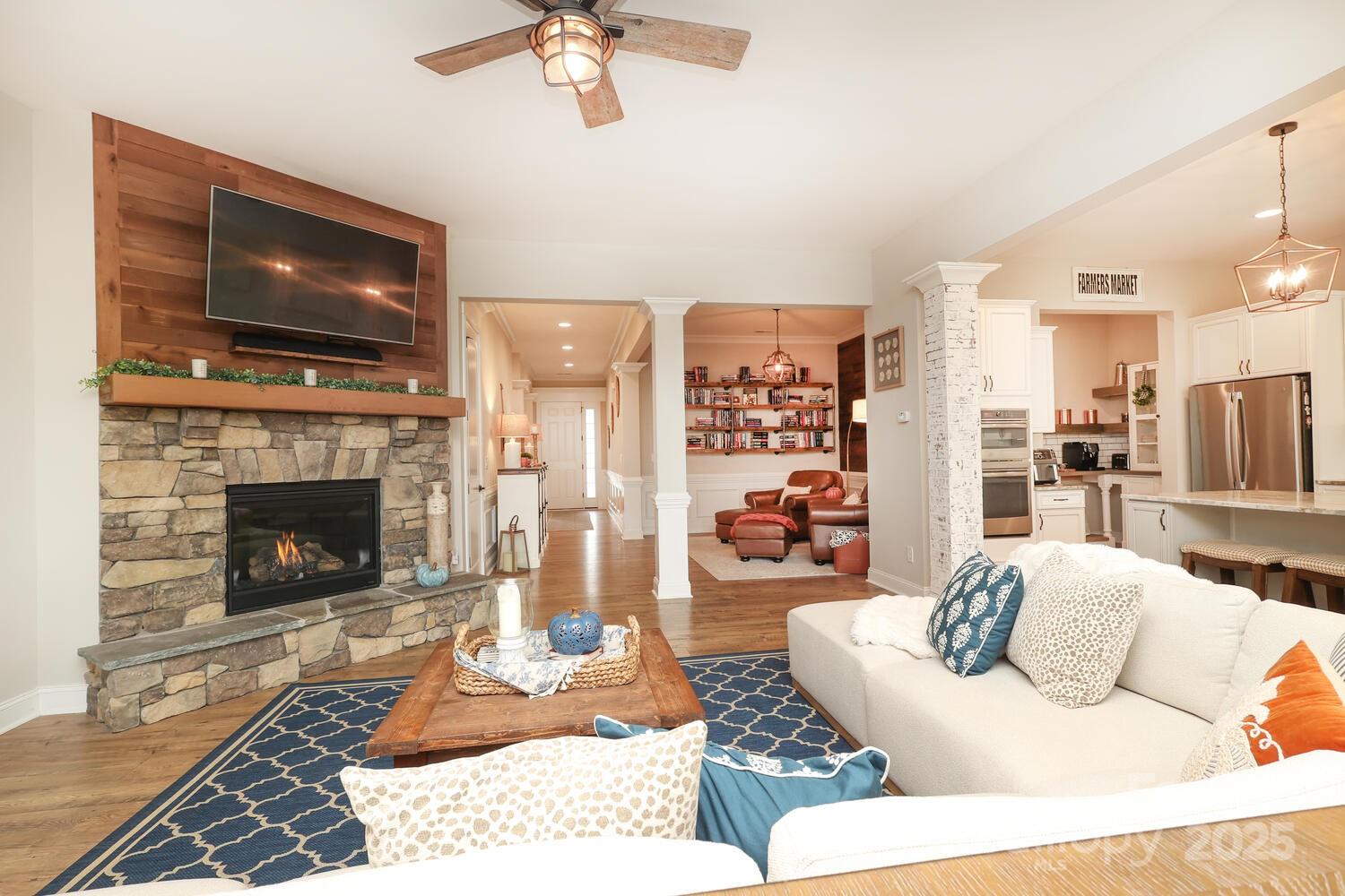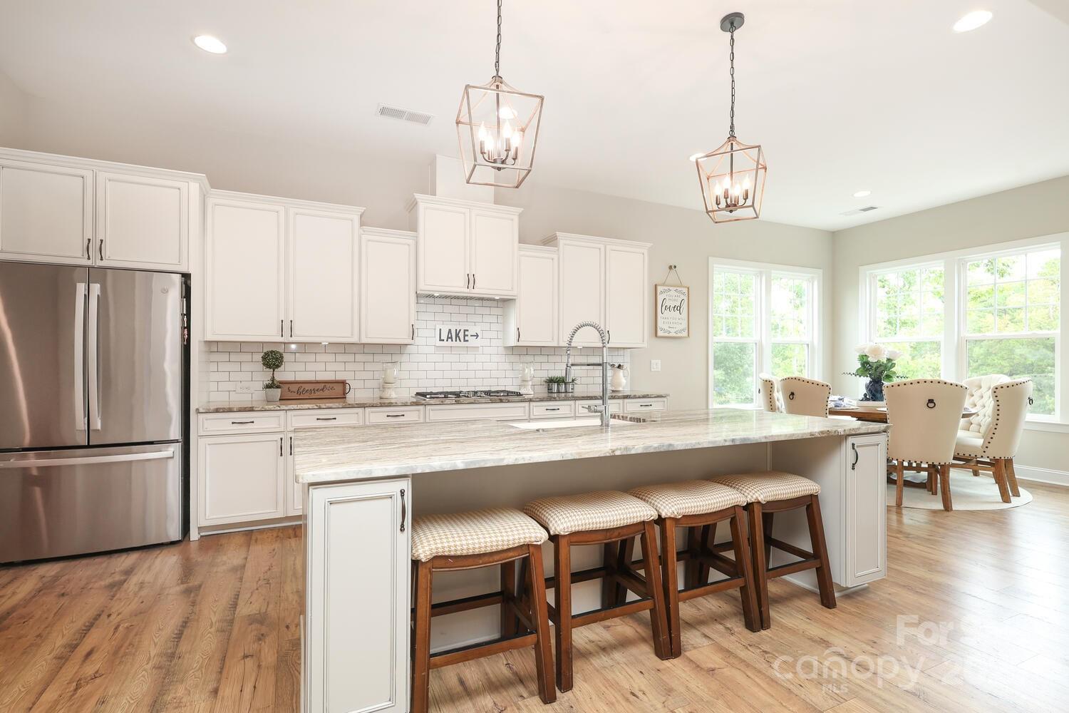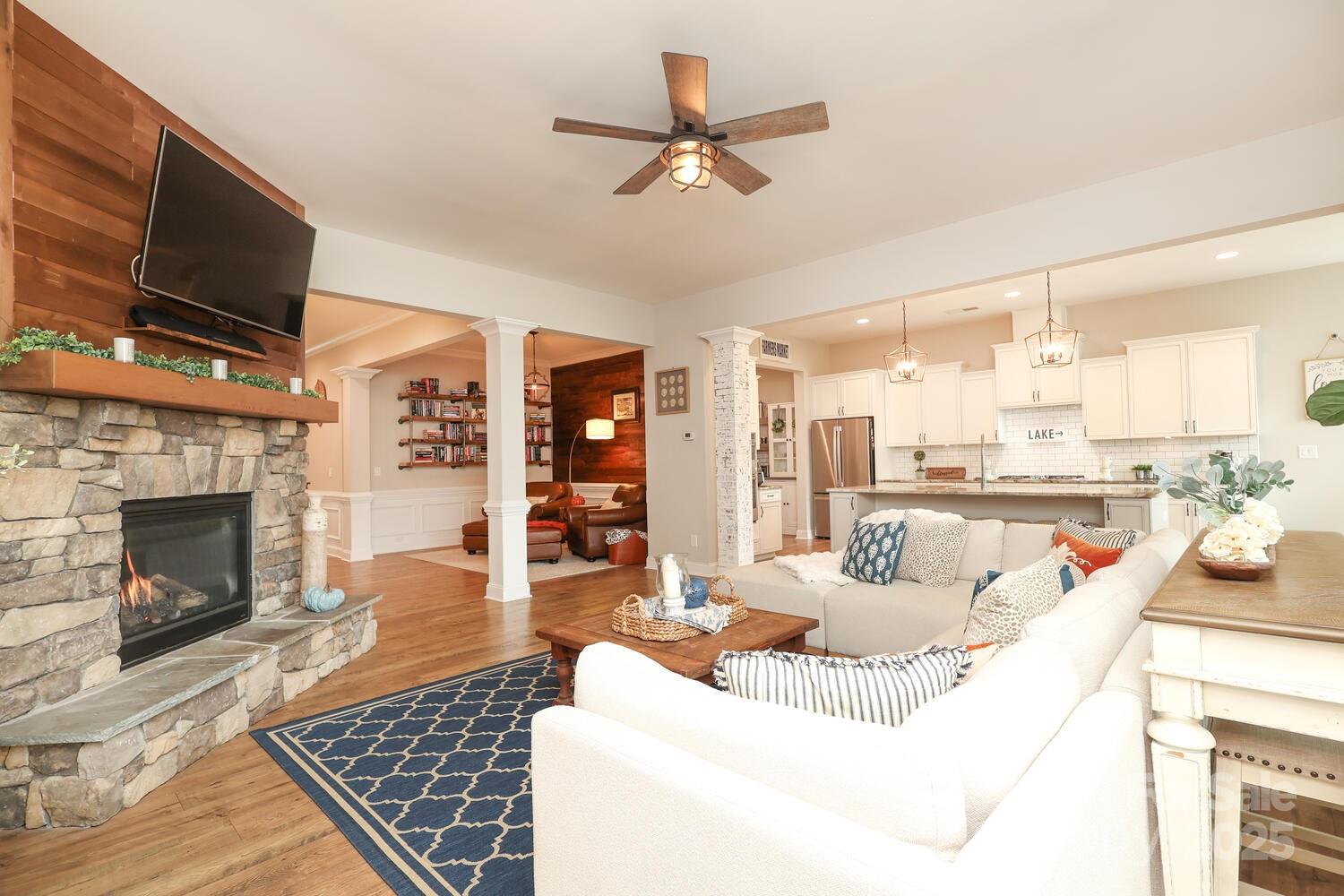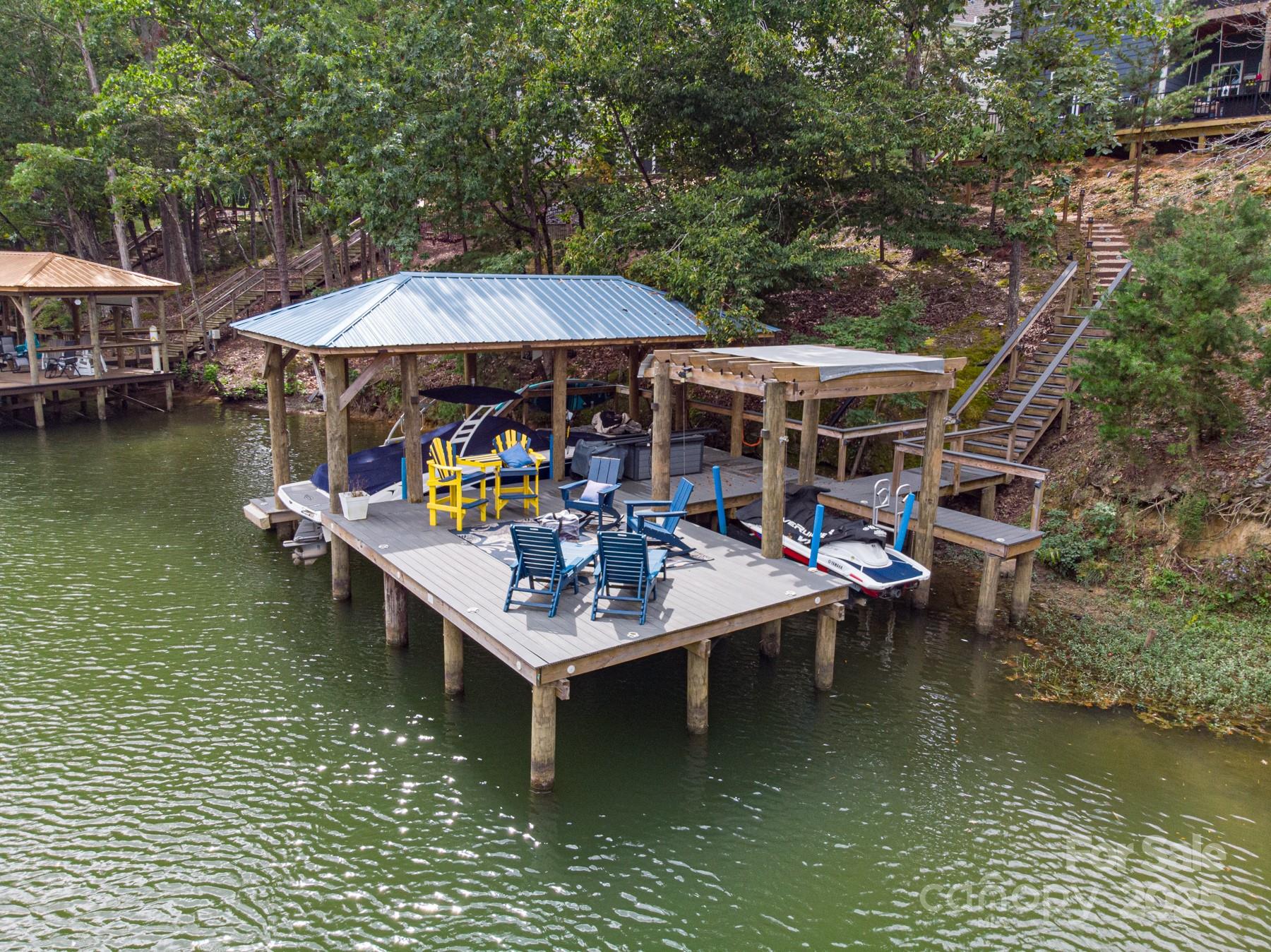 Lakefront Living at Its Finest on Lake Wylie! Welcome to this stunning 4-bedroom, 3-bath lakefront home in the sought-after Harpers Pointe community. Designed with both elegance and comfort in mind, the home features 10-foot ceilings on the main level, 9-foot ceilings on the daylight basement level, and 8-foot interior doors throughout, creating a spacious and airy feel. Enjoy outdoor living year-round with a screened porch with TV hookup on the main floor, a gas line ready for grilling, and a basement-level porch with a fireplace and TV hookup. A 300 sq. ft. Trex deck overlooks the water, while the impressive 1,000 sq. ft. dock with two covered lifts and a large sun deck is perfect for boating, entertaining, and soaking in Lake Wylie sunsets. Inside, thoughtful details abound, including large bedroom closets, abundant storage, and an unfinished space with electrical already in place that could be finished for additional square footage. The home is equipped with a 50-gallon water heater and inground lawn irrigation system for convenience. The basement bar area is perfect for hosting, complete with a beverage fridge, compact fridge, and wine fridge. And yes, the pool table, GE washer & dryer, and GE refrigerator are all included in the sale!