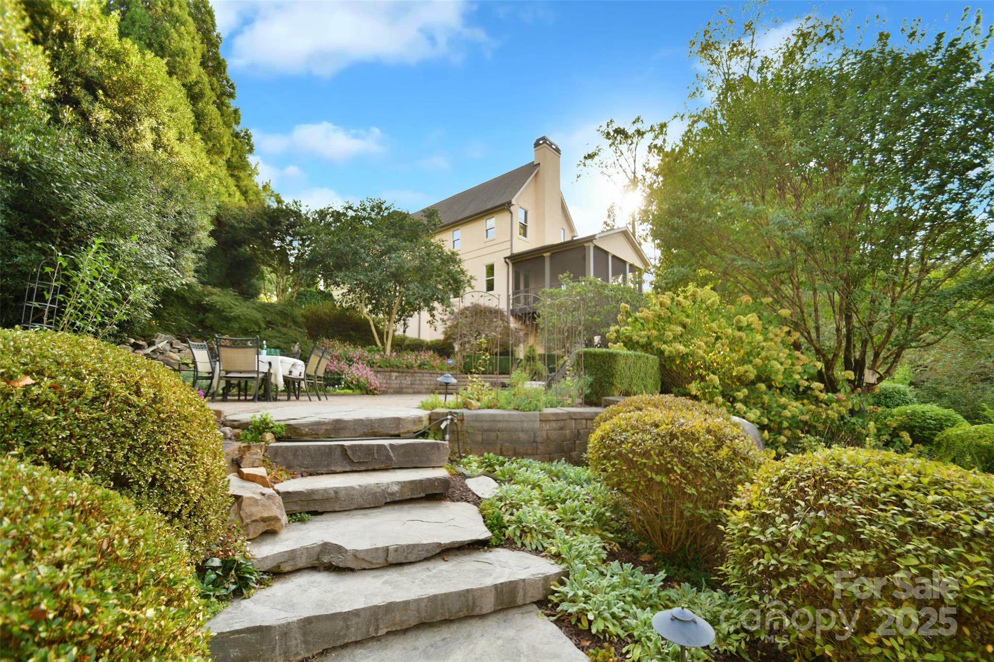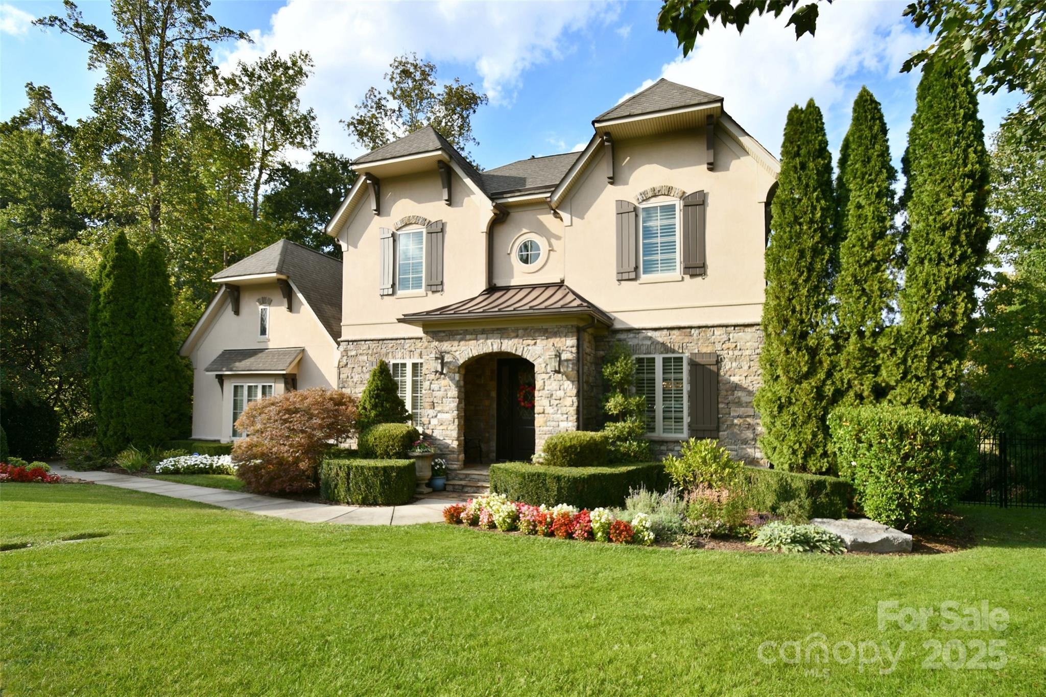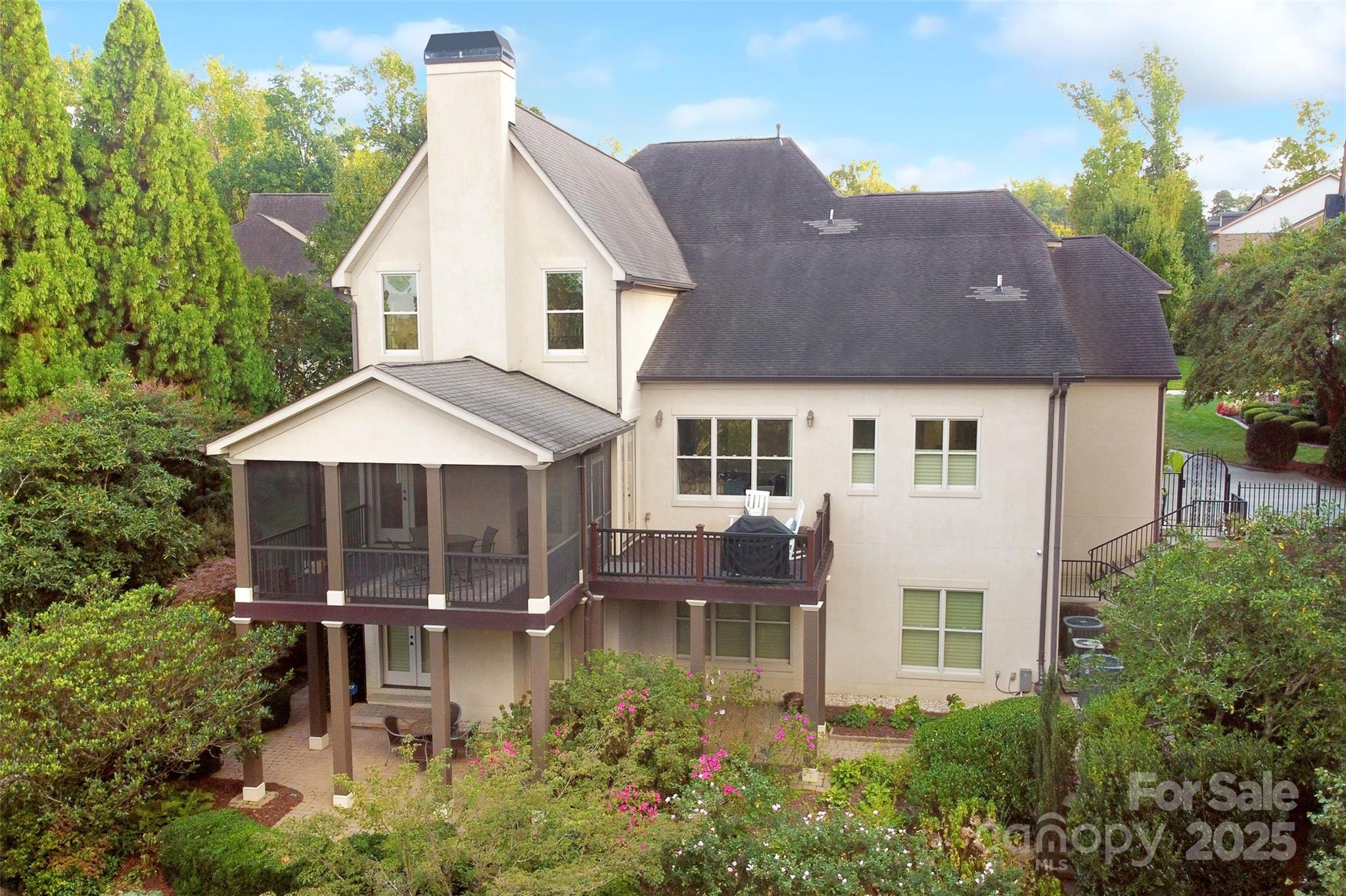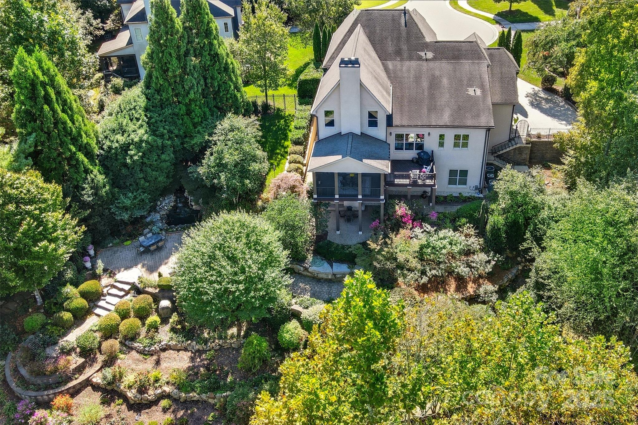 Tucked behind the gates of Christenbury Hall, this Simonini-built residence is more than a home: it’s a sanctuary of natural beauty and architectural distinction overlooking the Clarke Creek wetlands. Picture serene evenings spent dining al fresco beside a softly illuminated waterfall and koi pond, with the rustle of leaves and birdsong providing the perfect soundtrack. An entertainer’s dream, host intimate gatherings on the main level, overlooking the creek from the screened porch and open deck, or large celebrations that flow to the walk-out terrace level and into one of the most breathtaking backyard gardens in the Carolinas. At the center of the home lies a chef’s kitchen with Sub-Zero, Wolf, and Bosch appliances, and custom cabinetry surrounding an oversized island. The main level offers one-level living, with a formal dining room, formal study, breakfast room, living area with fireplace, drop zone, and a gracious primary suite. Upstairs, three well-appointed bedrooms are accompanied by an expanded bonus room and newly designed media room. The terrace level offers a full secondary living space, perfect for multi-generational families or longterm guests, featuring a kitchen, expansive living room with fireplace, dining room, and guest suite, as well as a large dedicated fitness studio and 405 sf storage room (not included in finished sf). Designer updates throughout. The neighborhood offers world-class amenities including a resort-style pool, clubhouse, fitness center, and nature trails. Zoned for top-ranked Cox Mill schools, with Cabarrus County taxes, and unmatched convenience to I-85 and I-485, this home offers a rare opportunity to live beautifully, inside and out.