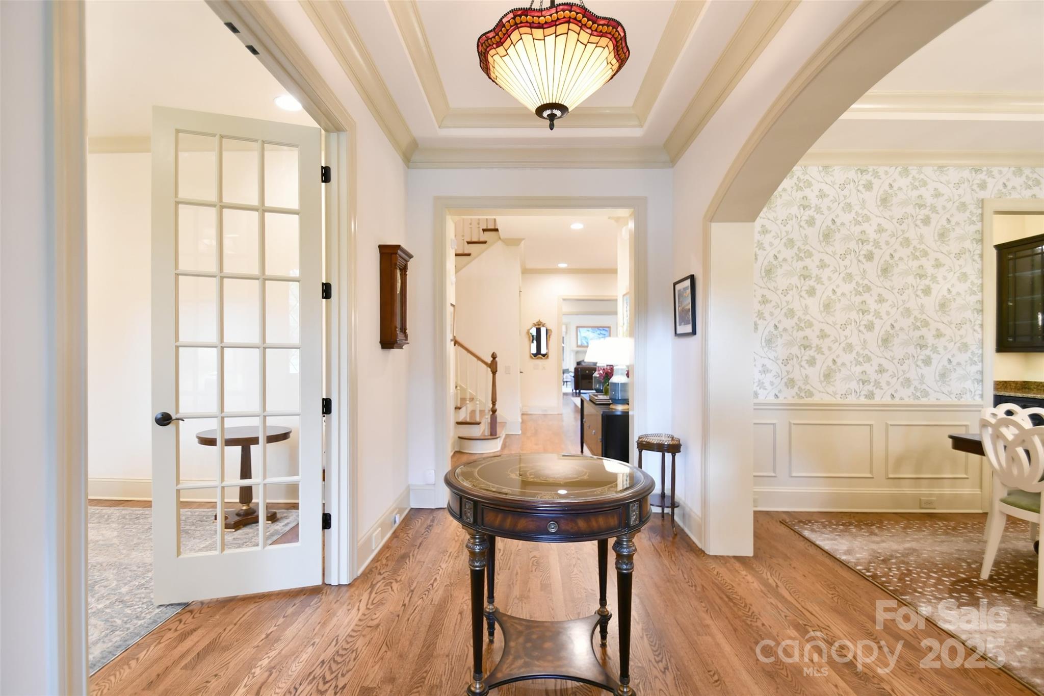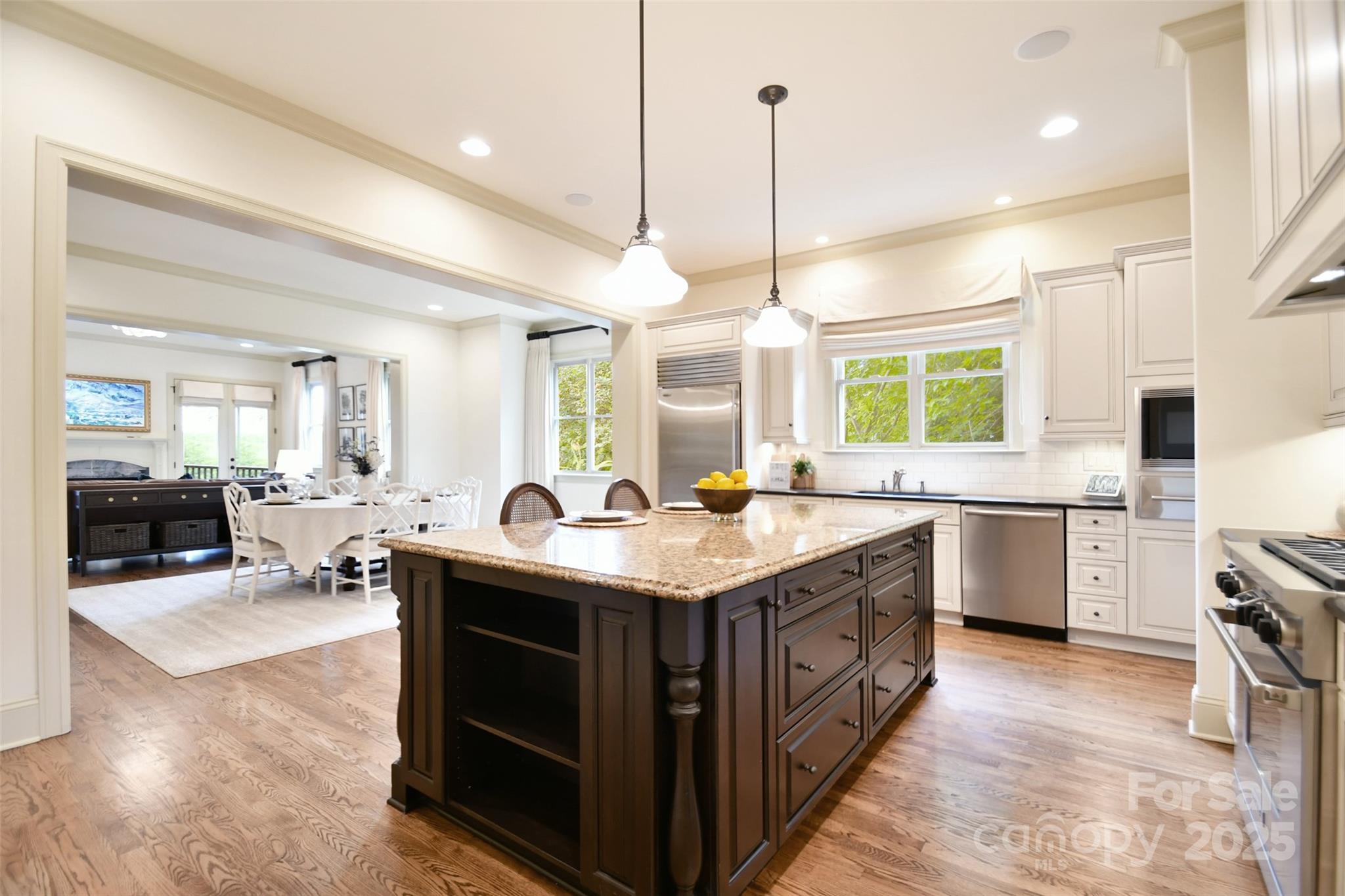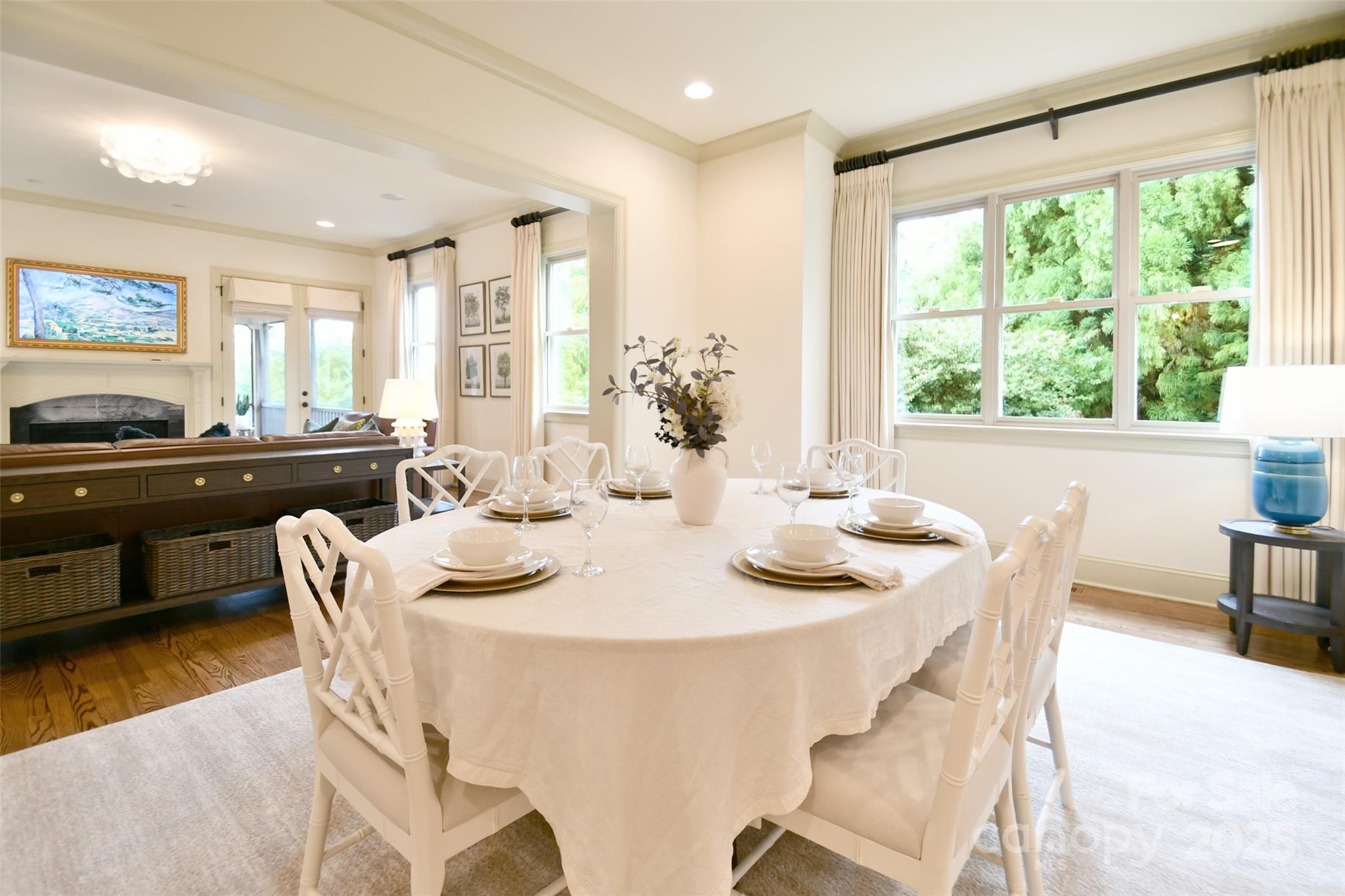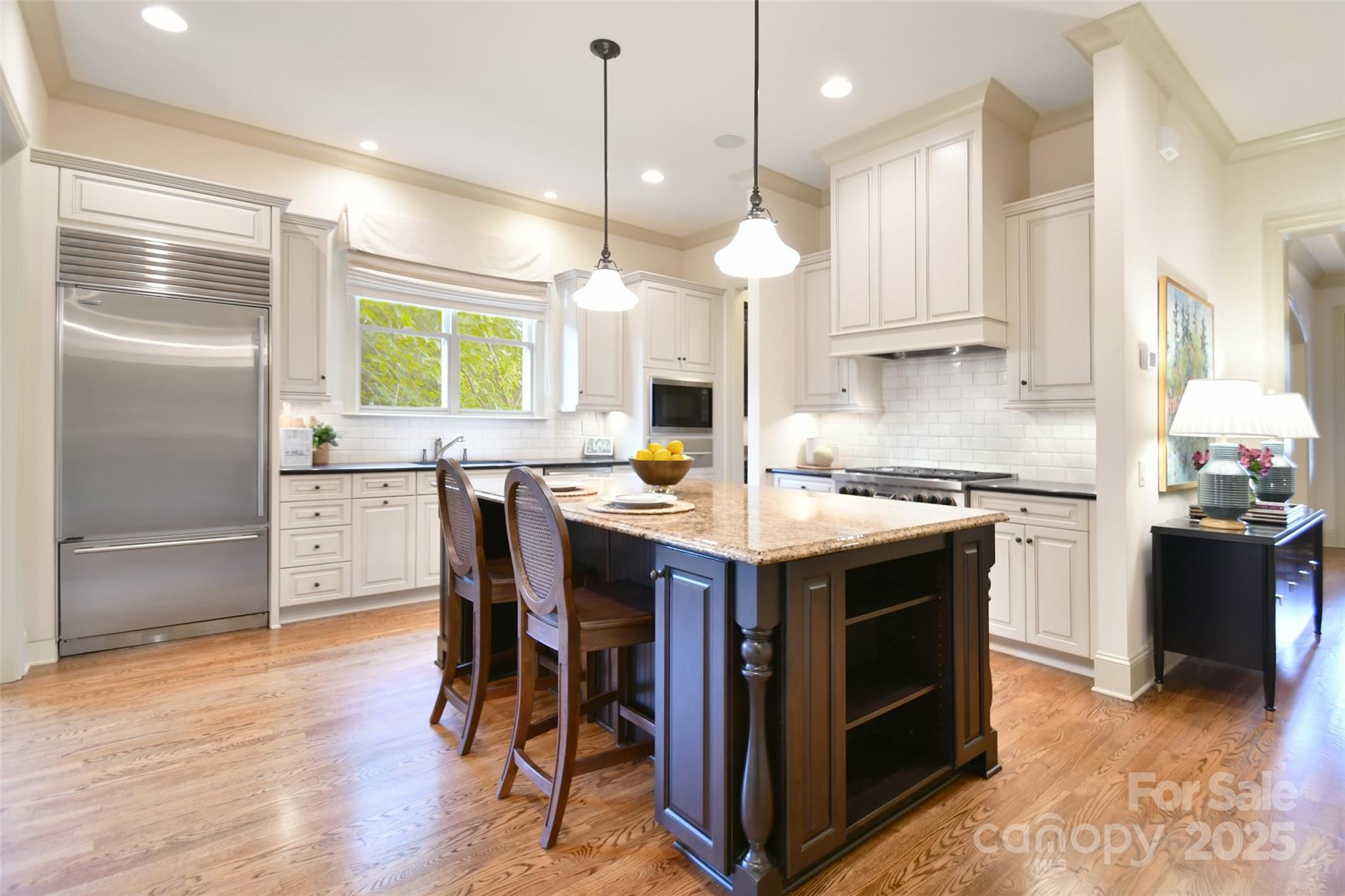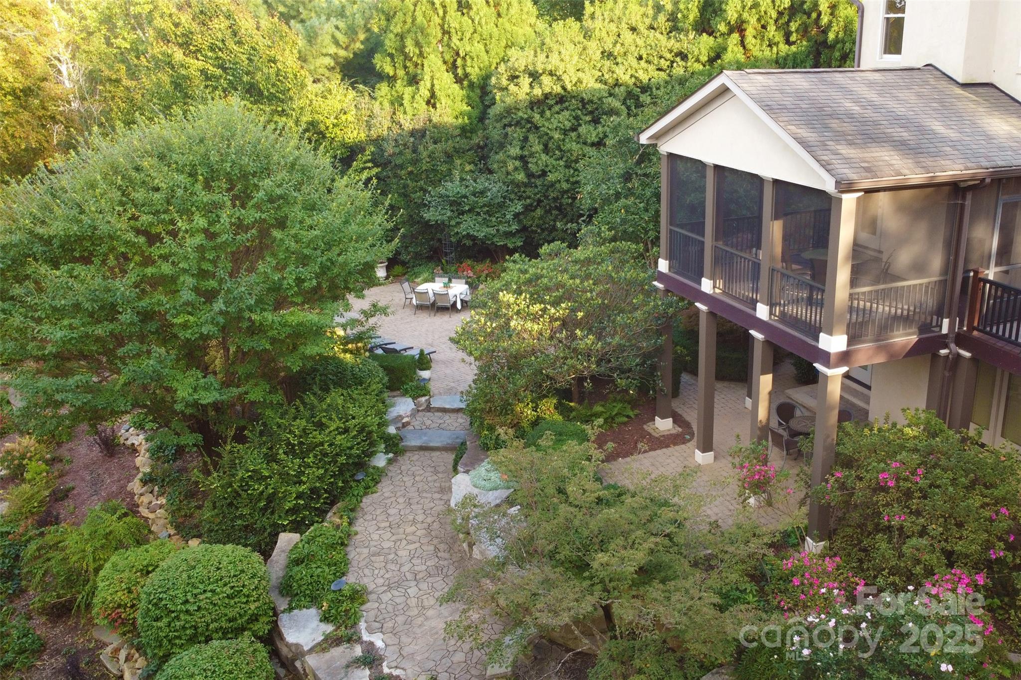 Tucked behind the gates of Christenbury Hall, this Simonini-built residence is more than a home: it’s a sanctuary of natural beauty and architectural distinction overlooking the Clarke Creek wetlands. Picture serene evenings spent dining al fresco beside a softly illuminated waterfall and koi pond, with the rustle of leaves and birdsong providing the perfect soundtrack. An entertainer’s dream, host intimate gatherings on the main level, overlooking the creek from the screened porch and open deck, or large celebrations that flow to the walk-out terrace level and into one of the most breathtaking backyard gardens in the Carolinas. At the center of the home lies a chef’s kitchen with Sub-Zero, Wolf, and Bosch appliances, and custom cabinetry surrounding an oversized island. The main level offers one-level living, with a formal dining room, formal study, breakfast room, living area with fireplace, drop zone, and a gracious primary suite. Upstairs, three well-appointed bedrooms are accompanied by an expanded bonus room and newly designed media room. The terrace level offers a full secondary living space, perfect for multi-generational families or longterm guests, featuring a kitchen, expansive living room with fireplace, dining room, and guest suite, as well as a large dedicated fitness studio and 405 sf storage room (not included in finished sf). Designer updates throughout. The neighborhood offers world-class amenities including a resort-style pool, clubhouse, fitness center, and nature trails. Zoned for top-ranked Cox Mill schools, with Cabarrus County taxes, and unmatched convenience to I-85 and I-485, this home offers a rare opportunity to live beautifully, inside and out.