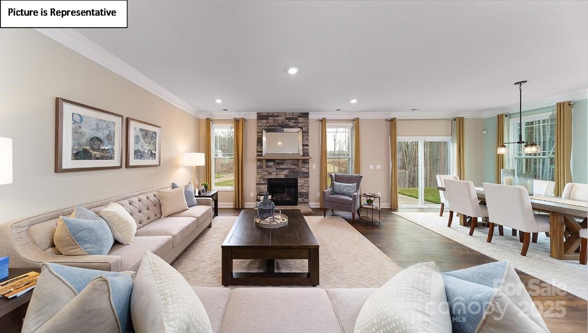 America's #1 Builder's newest exclusive community in Mooresville! Enjoy a unique boutique community with only 59 homes surrounded by trees and walking trails, located directly across the street from Mooresville Graded Schools! NEW CONSTRUCTION FINISHED BASEMENT home with tons of upgrades! Formal dining room connects to a gorgeous Butler's pantry and breakfast bar. Open kitchen-family room concept with gas fireplace leads out to a deck with stairs leading to the ground level! 1st floor guest suite with full bathroom along with a convenient mud room w/ a built-in drop zone! Hardwood staircase lined w/ wrought iron spindles opens to a generous sized loft. Primary suite is the epidemy of luxury adorned with a trey ceiling, a sitting room and an oversized closet! Gorgeous primary bath tile shower and soaking garden tub. Tankless water heater, smart home technology package, modern crown molding and cased windows all come with your brand new home!