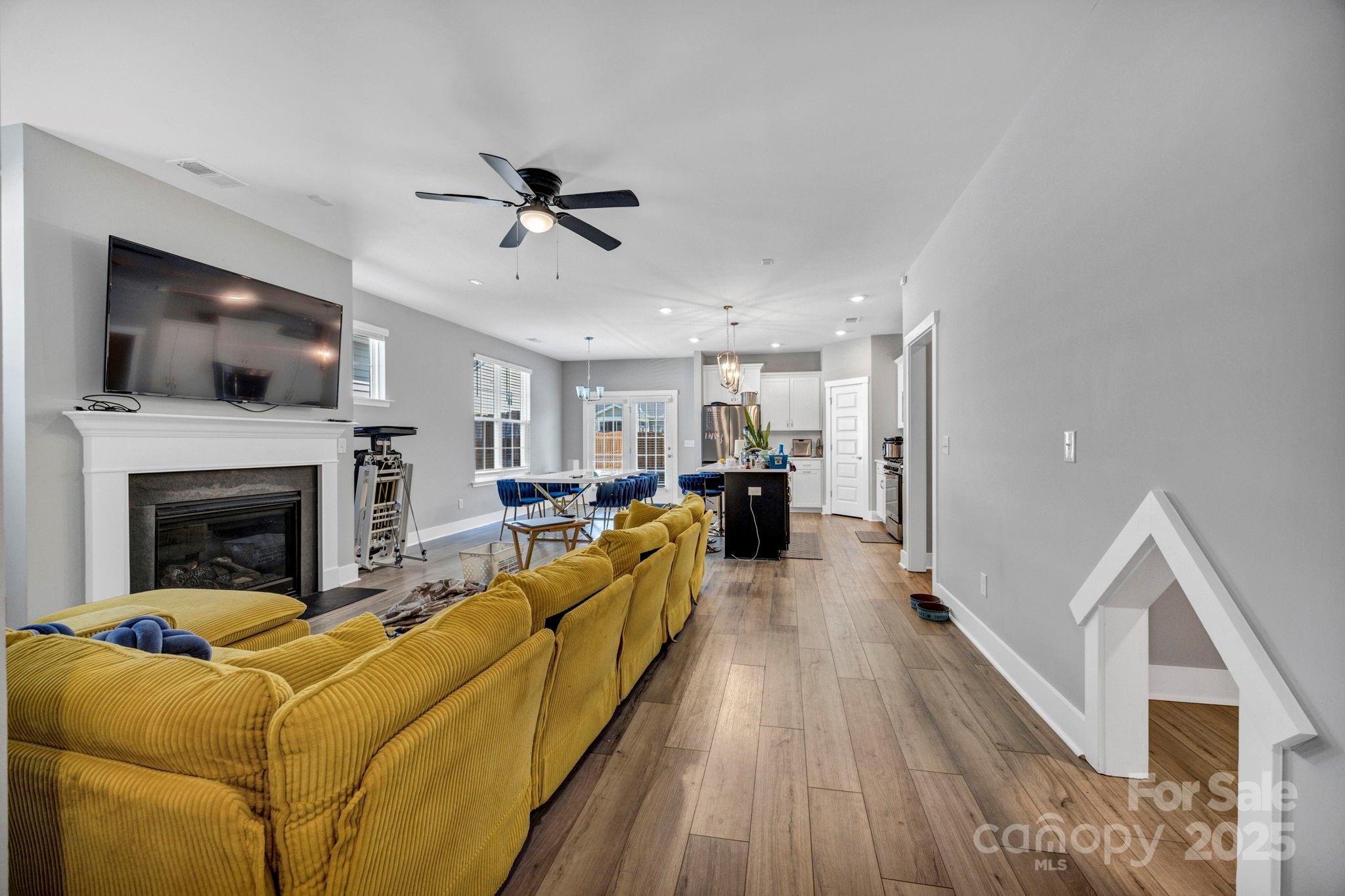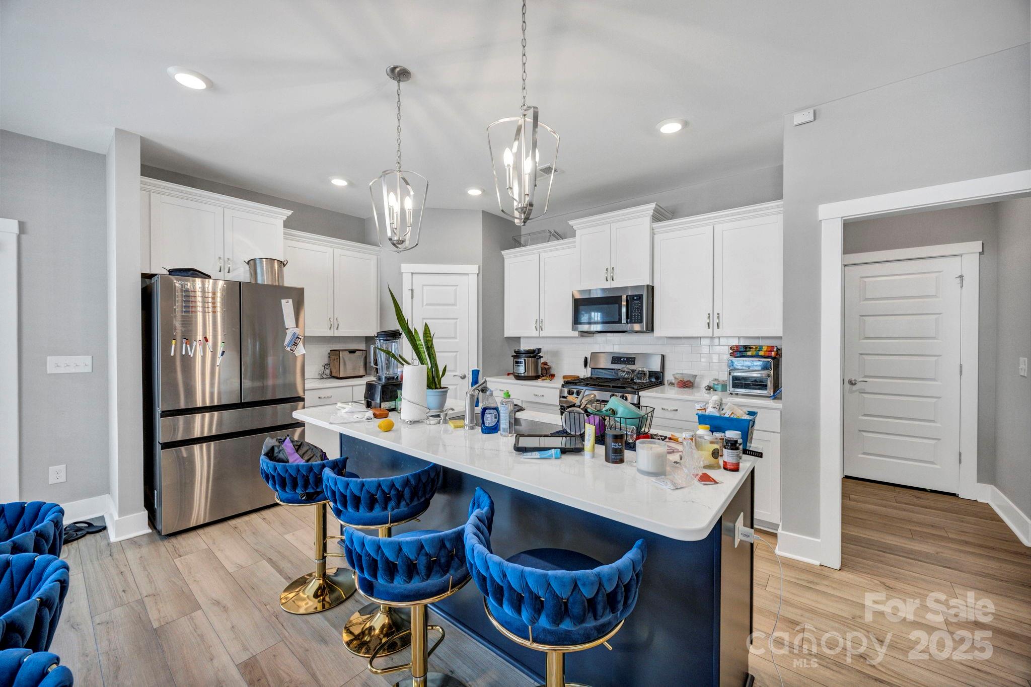 Step into this exceptional 2023-built home, where sleek design meets effortless functionality in a bright and airy open layout. From the moment you enter, you'll be drawn into the expansive main living space—an inviting blend of comfort and style with abundant natural light and seamless flow between the living, dining, and kitchen areas. At the heart of the home lies a beautifully designed chef’s kitchen, featuring a large center island perfect for casual meals, entertaining guests, or simply gathering with family. Crisp quartz countertops, a deep farmhouse sink, modern cabinetry, and high-end smart appliances make this space both striking and highly functional. The main-level primary suite offers a tranquil retreat with generous space, a luxurious ensuite bath, and thoughtful privacy—ideal for those seeking single-floor living. Three additional bedrooms and two full bathrooms provide flexible living options for guests, kids, or home office needs. Throughout the home, durable luxury plank flooring ensures a carpet-free, easy-to-maintain environment, while the integrated smart home features offer modern convenience at your fingertips. But the lifestyle doesn’t stop at your front door. This home is nestled in a resort-style community that elevates everyday living with exceptional amenities. Spend your weekends lounging by the sparkling community pool, host gatherings in the stylish clubhouse, or enjoy quality time outdoors at the playground, firepit, or the serene hammock garden—a peaceful retreat designed for true relaxation. With its thoughtful layout, high-end finishes, and access to luxurious community features, this home offers a unique opportunity to live in comfort, style, and connection. Move-in ready and waiting to welcome you home.