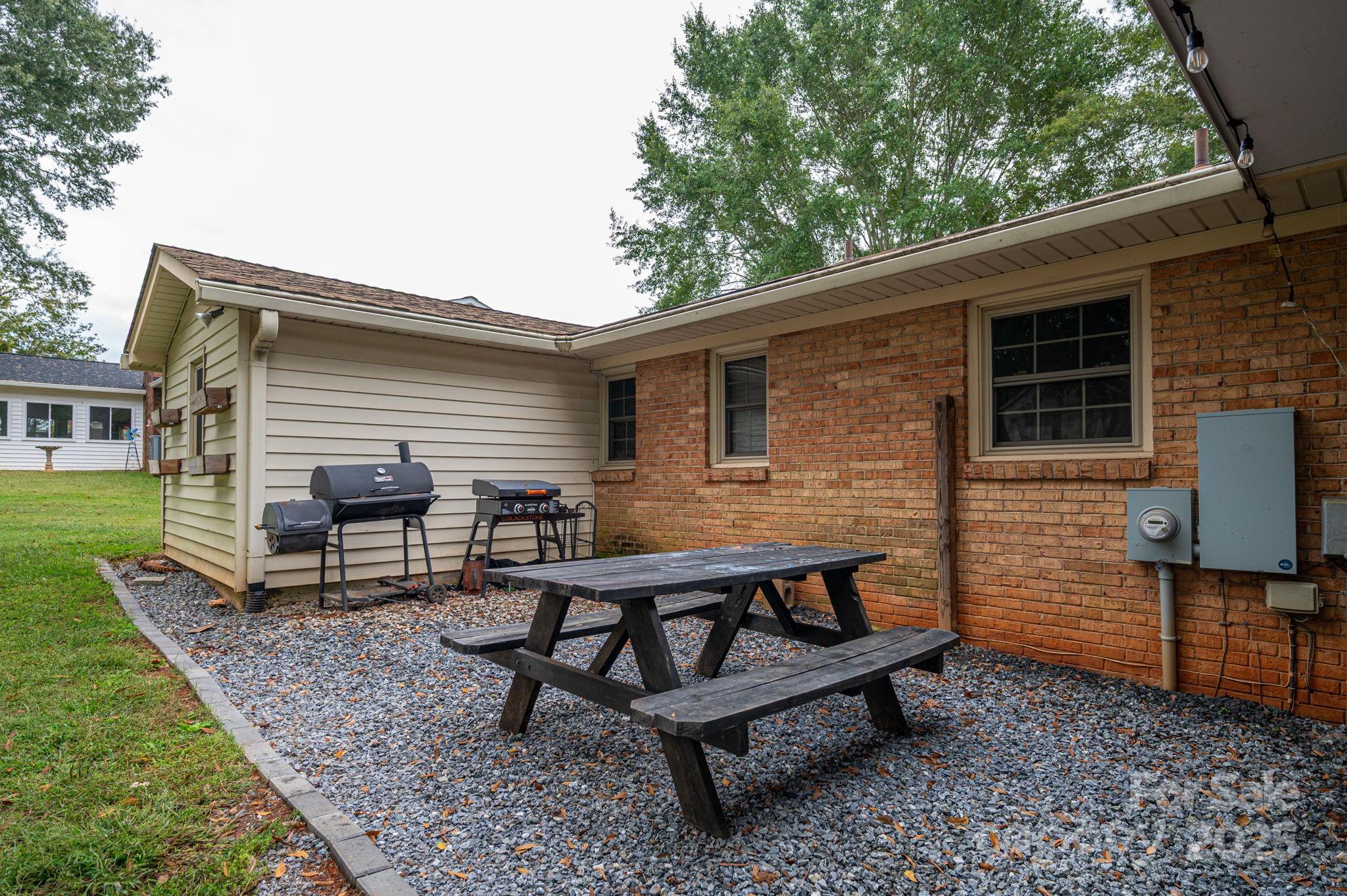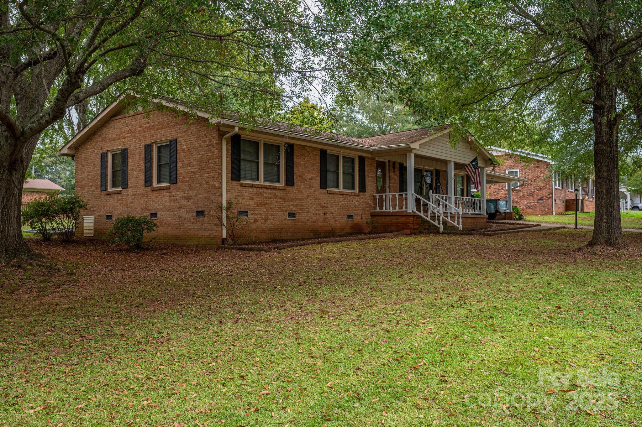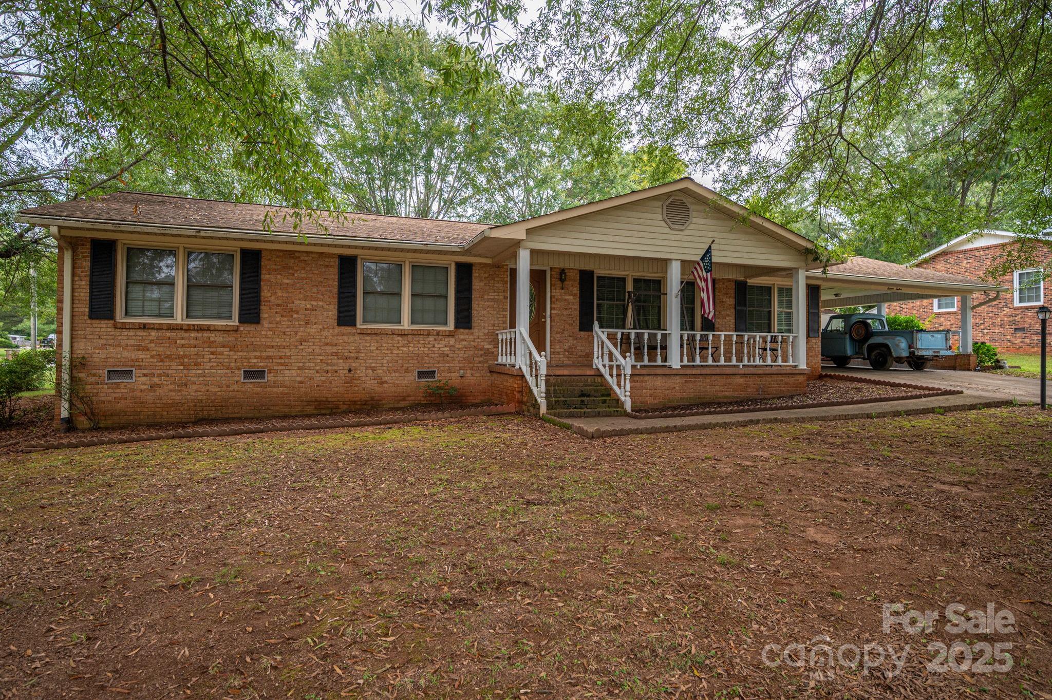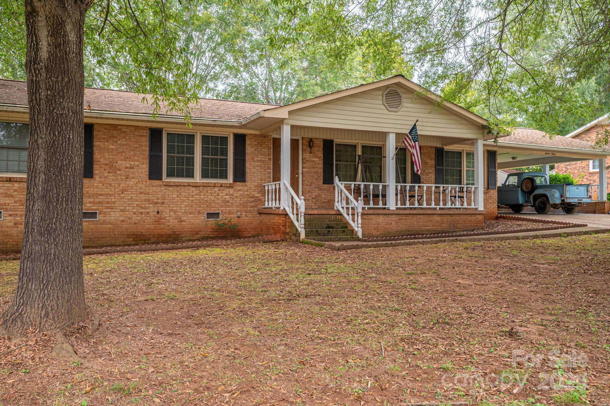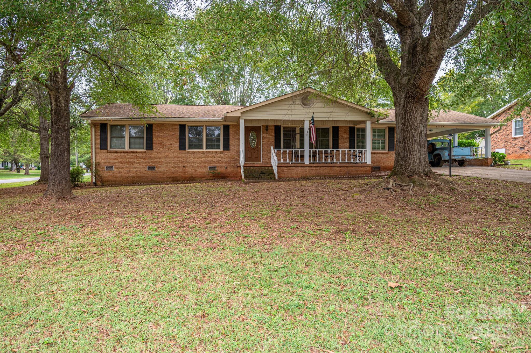 This charming ranch-style home features a full brick exterior that exudes classic appeal and durability. Upon entering, you'll appreciate the open floor plan that seamlessly connects the living spaces, making it ideal for entertaining and family gatherings. The rich hardwood flooring flows throughout, adding warmth and elegance to the interior. The spacious living area includes a cozy brick fireplace, perfect for chilly evenings. The large kitchen is a standout feature, boasting ample cabinet space for all your culinary needs, along with appliances that make meal prep a breeze. With three well-appointed bedrooms and two and a half baths, the home offers plenty of space for family and guests. The two distinct living areas provide flexibility, whether you want a formal sitting room or a casual hangout space. Step outside to enjoy the covered back porch, a perfect spot for outdoor dining or relaxing with a book. The property also includes two storage sheds and a workshop attached to the carport, offering additional space for hobbies, tools, or outdoor equipment. This ranch home combines comfort, functionality, and charming outdoor features, making it an ideal retreat for any lifestyle.