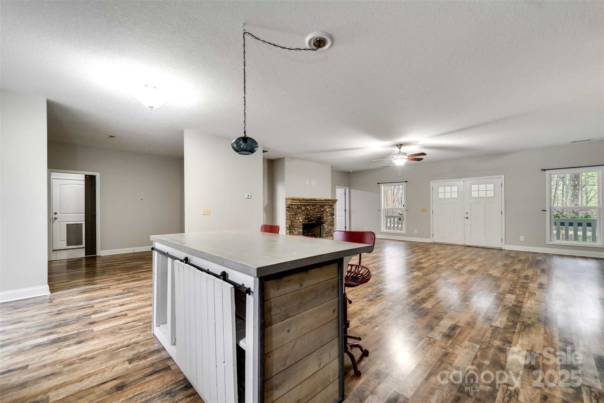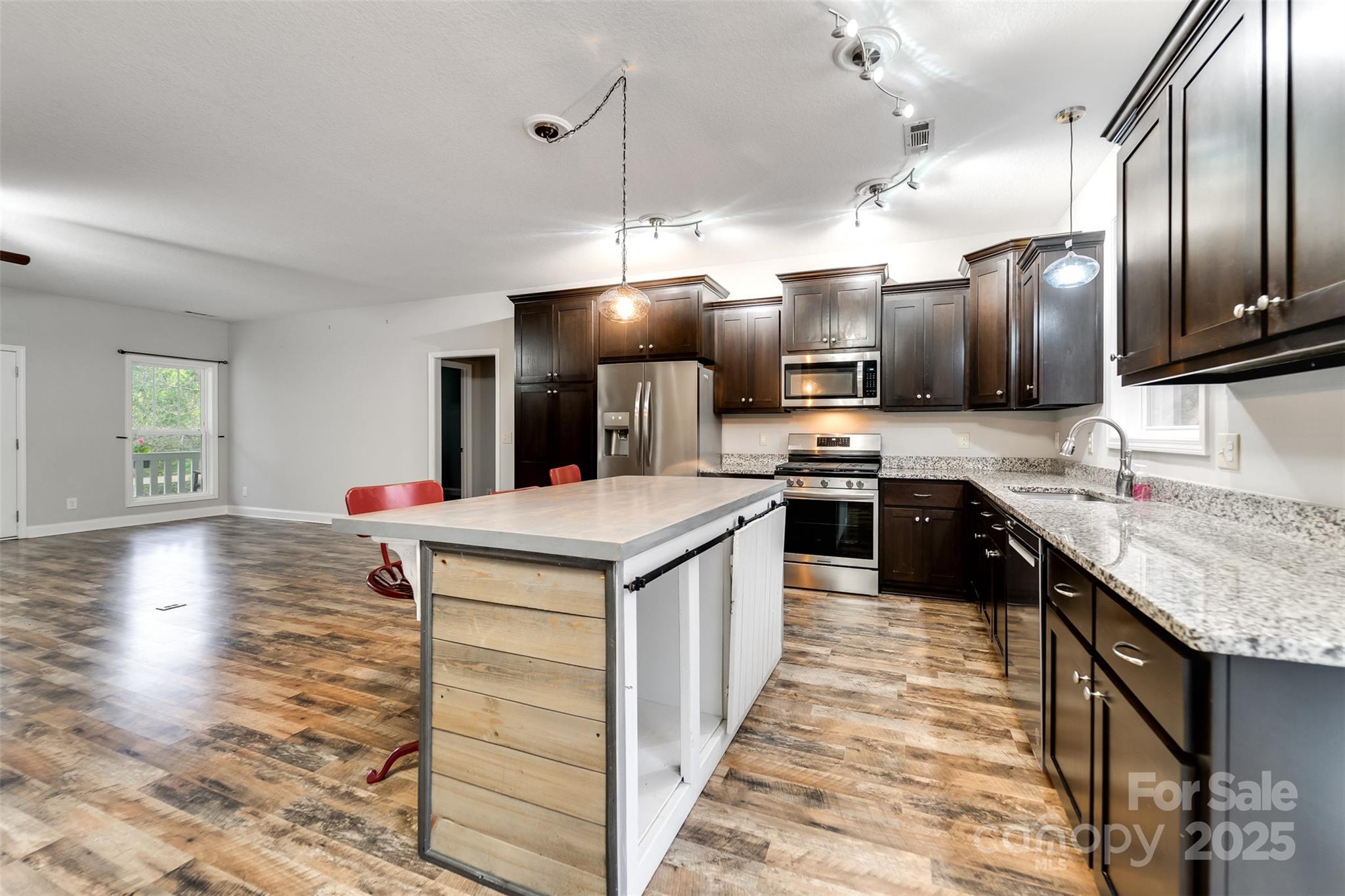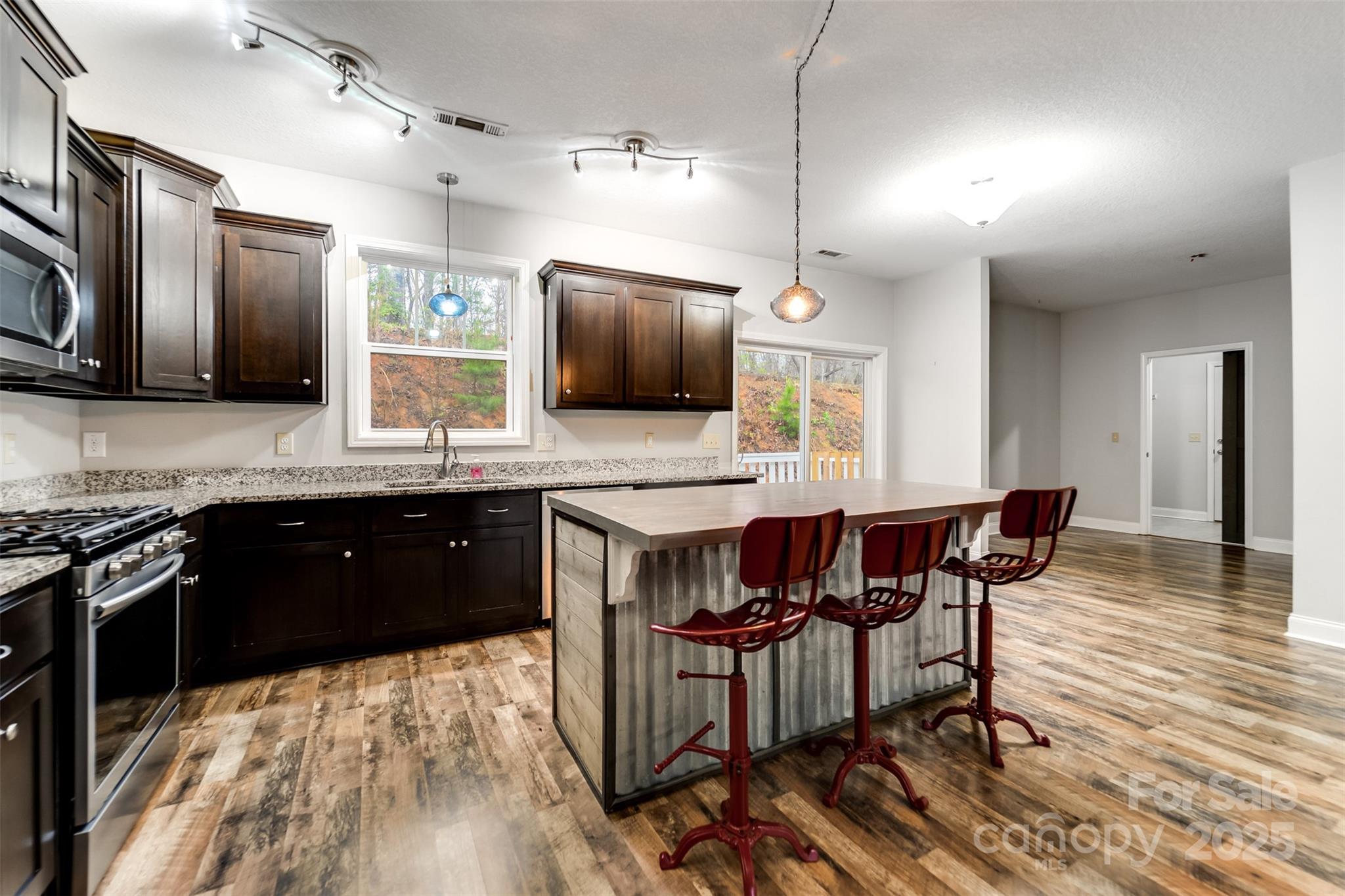 This 3-BR, 2-bath home offers end-of-the-road privacy, an extra lot, and an attached 2-car garage—just under 3 miles from downtown Bryson City. The split floor plan is both functional & comfortable. Inside, the open-concept layout features an XL great room with a stone gas fireplace that flows into the kitchen, complete with stainless appliances, ample cabinet & counter space, an island with breakfast bar, & dining area. The spacious primary suite includes dual granite vanities, a walk-in ceramic tile shower with dual heads, soaking tub, and walk-in closet. Enjoy the full-length covered front porch overlooking the yard, firepit area, & seasonal view. The side yard is fenced, and the deck is pre-wired for a hot tub. Extras include a 22 KW Generac generator, underground power, private well, and sensible deed restrictions. Peaceful setting in a small, quiet neighborhood with easy year-round access—just minutes from town. VA loan at 2.65% interest may be assumable with qualified borrower.