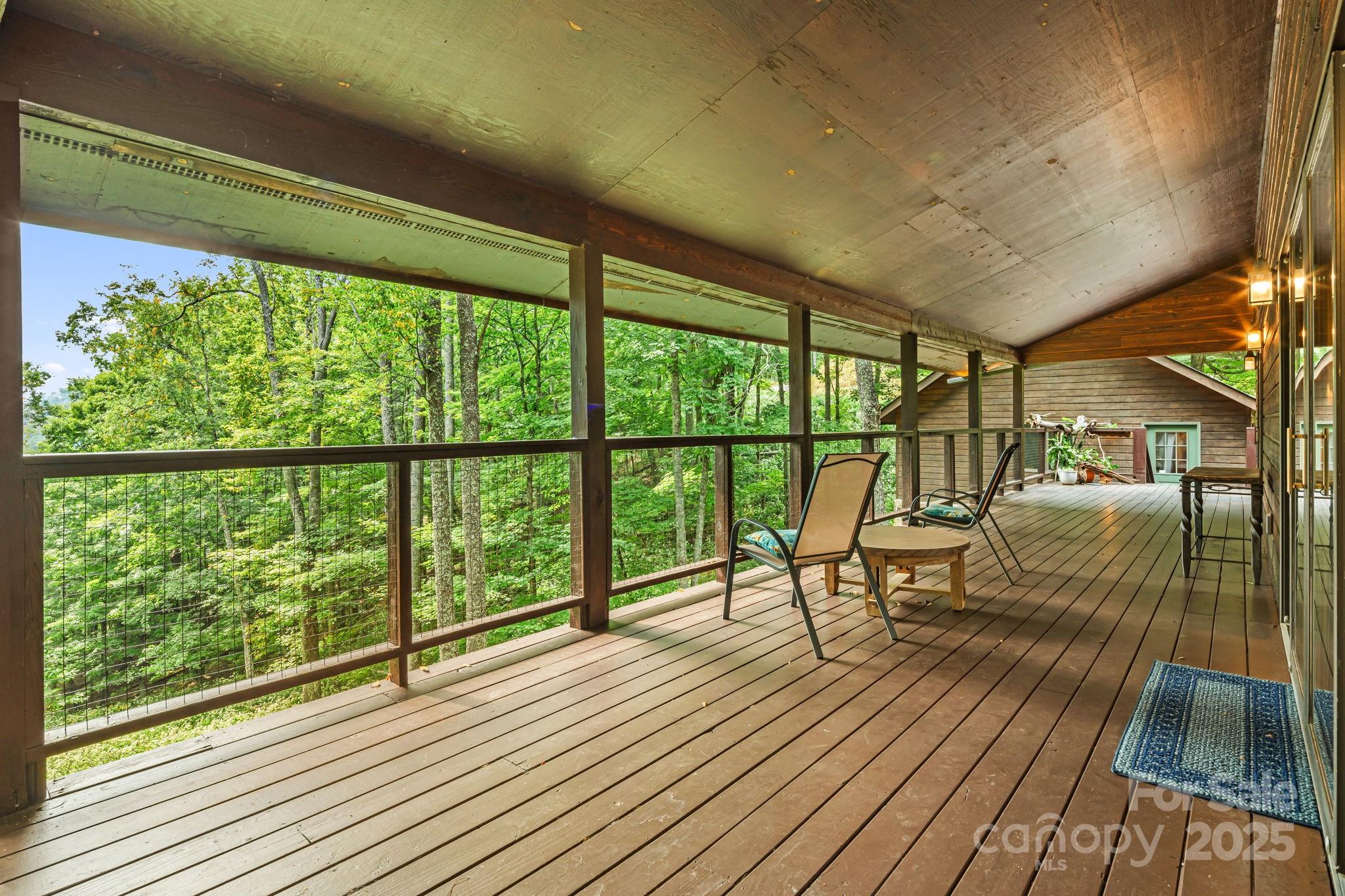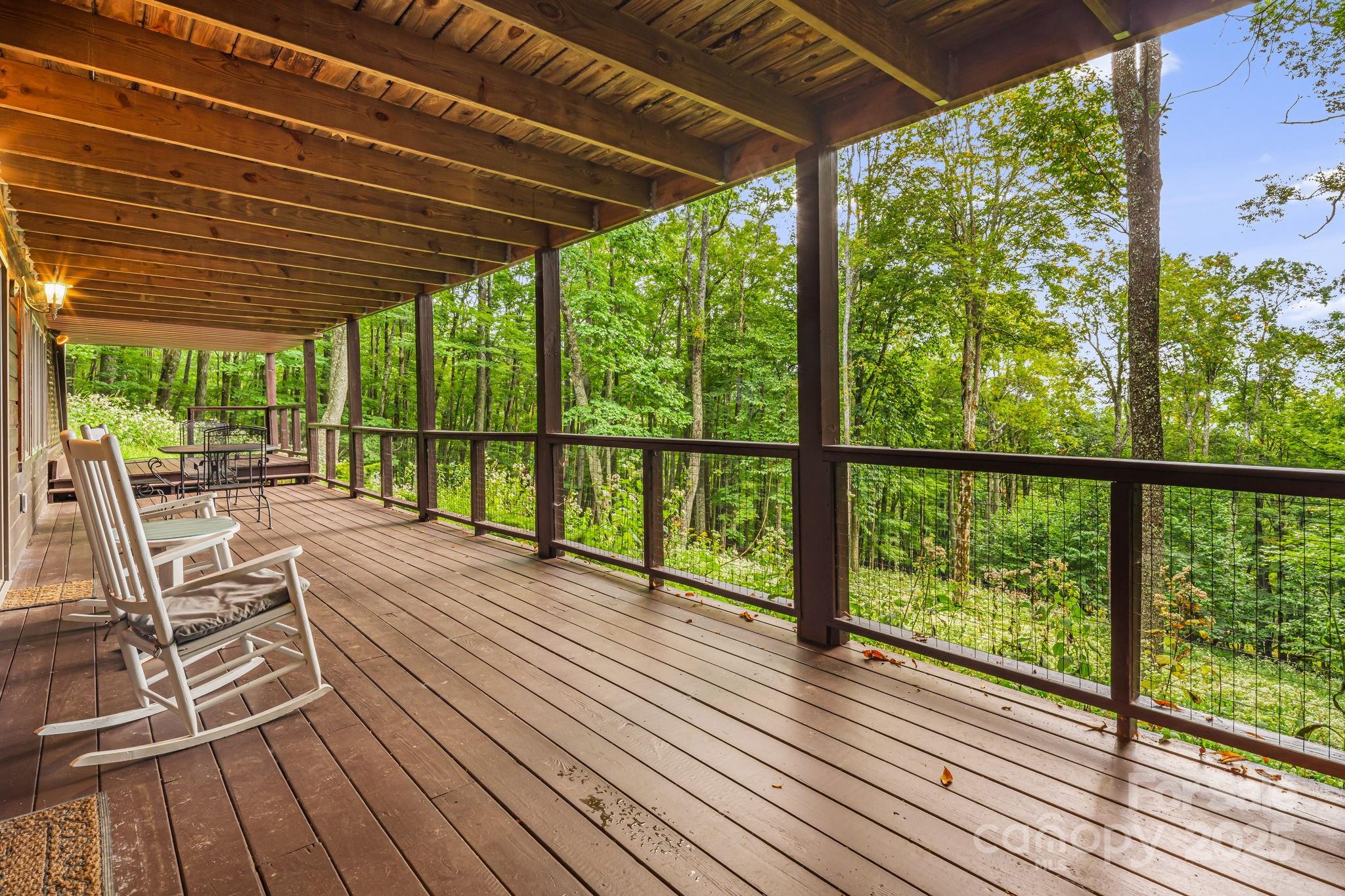 Secluded mountain cabin on three lots totaling 2.74 acres with one HOA fee, deep inside the 5,300-acre high-elevation gated Wolf Laurel community. Set in a rare, remote pocket neighboring SE Trust conservation land and the Pisgah National Forest for true privacy within privacy. The 2-bed/3-bath home features a 3-car garage, main-level great room with a wood-burning fireplace, and two levels of covered decking that frame wooded views and wildflowers. The walkout lower level has its own entrance, living area, full bath, and kitchenette—ideal for extended family and guests, with vented gas logs for easy warmth on winter evenings. Ownership connects you to all of Wolf Laurel’s amenities, including the highly regarded, optional Wolf Laurel Country Club with a 5-star mountain golf course, lodge, and 24-hour fitness center. A Village Club Membership conveys with a transfer fee, providing pickleball and tennis for summer play. Additional Village Club amenities also include an outdoor pool, sports courts, playgrounds, stocked trout pond, creeks, and a community center. Nearby Hatley Pointe Ski Resort offers year-round fine dining at Smoke & Timber, with a downhill bike park planned for spring 2026. There are 50 miles of internal trail systems and numerous access points to the Appalachian Trail. Beyond the gates, you’ll find trout waters on the Laurel, French Broad, and Nolichucky River. Two mountain lakes—Watauga and Boone—are within an hour’s drive for added summer adventures. Quick trips to the surrounding towns of Mars Hill, Burnsville, Hot Springs, Weaverville, Marshall, and Spruce Pine. Both Asheville and Johnson City, TN, are a 45-minute drive, with regional airports. With cooler summer temps, vibrant fall color, and four-season adventure at your doorstep, come see why they call us the “Jewel of the Blue Ridge.”