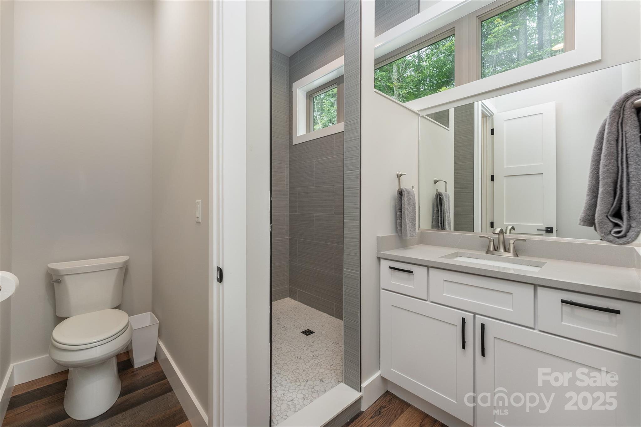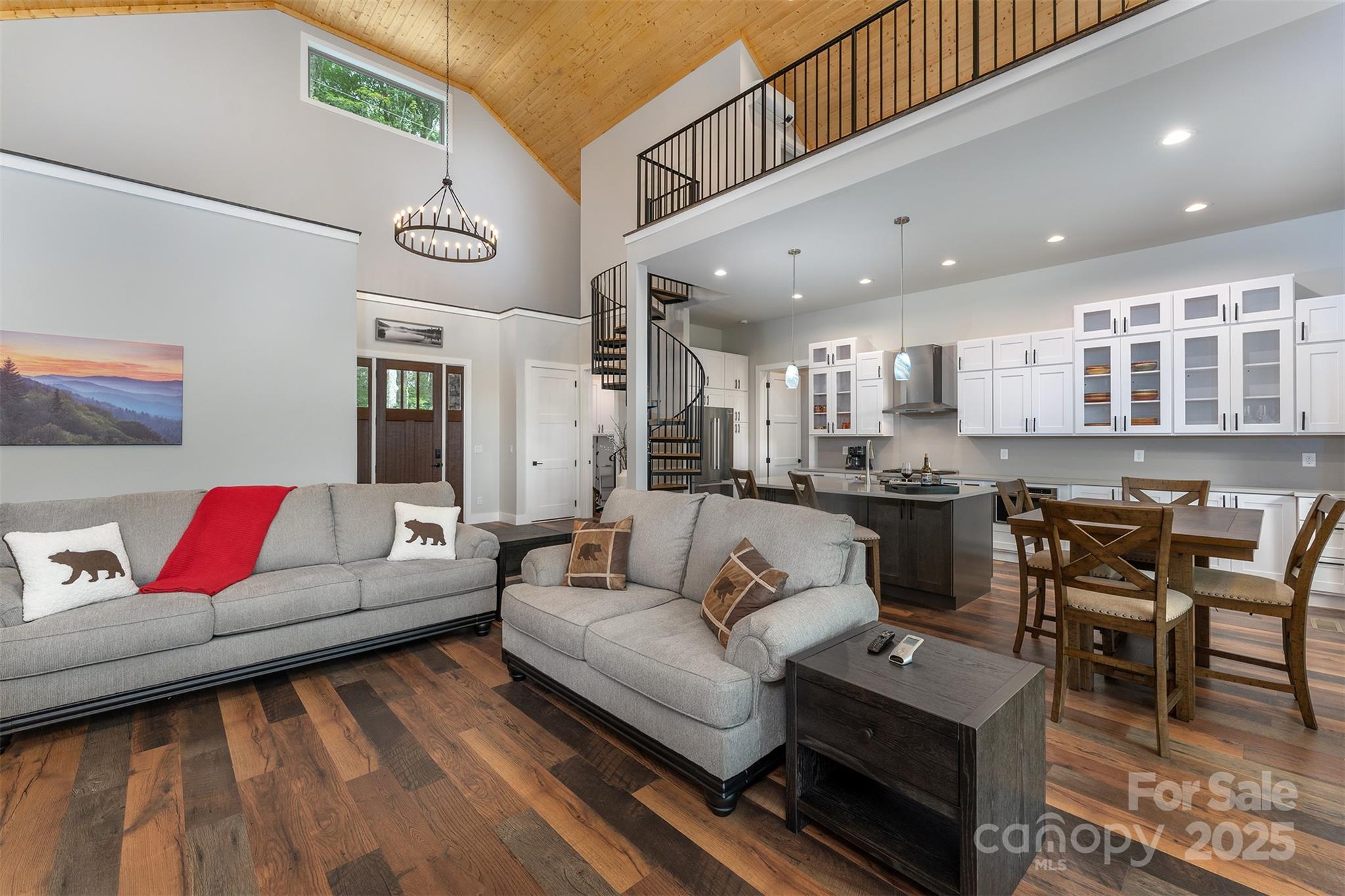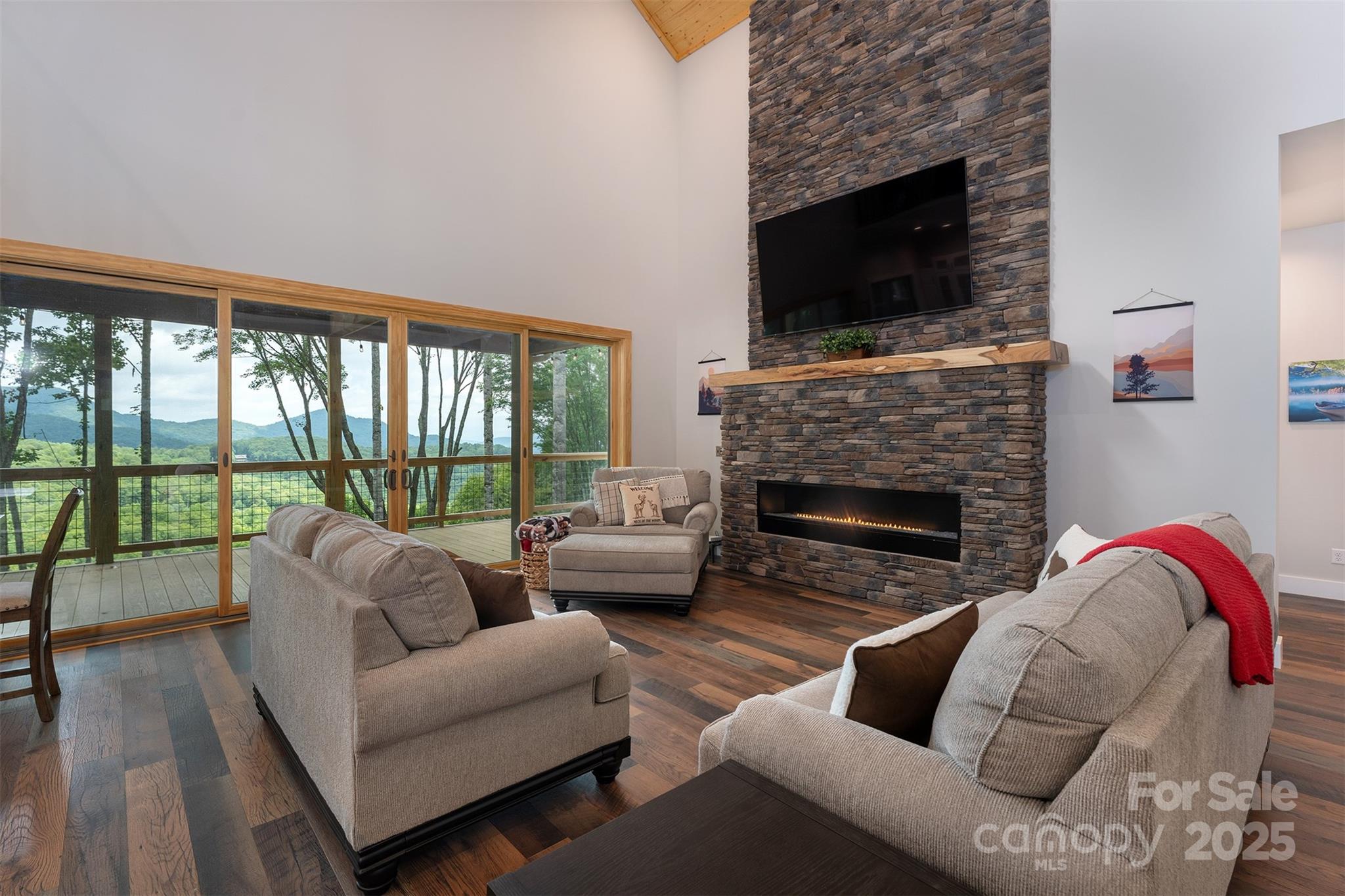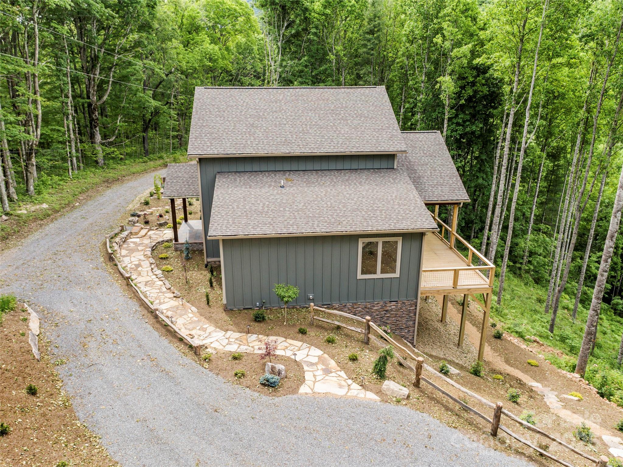 Introducing a new luxury listing with amazing views and an open floor plan designed for modern living. This exquisite home features 3 spacious bedrooms, each with its own private bathroom, offering ultimate comfort. Most of the living space is situated on the main floor, highlighted by a beautiful stone fireplace that adds warmth and charm to the living area. The custom kitchen is a chef's dream, complete with sleek quartz countertops and top-of-the-line Bosch appliances. The primary bedroom is a true retreat, boasting stunning ceiling beams and breathtaking views. A custom spiral staircase leads to an upper loft, perfect as a bonus room or versatile family space. The covered deck offers a serene spot for entertaining. Listed as an Airbnb, the cabin will feature luxury furniture, a hot tub, and be sold fully furnished, ready for immediate enjoyment or rental. No storm damage Don't miss the chance to own this exceptional home that combines modern luxury with natural beauty.