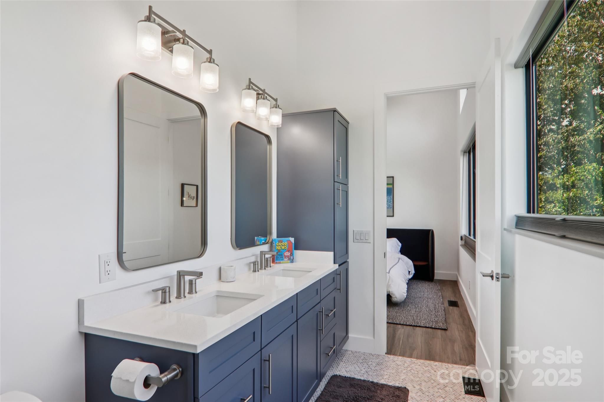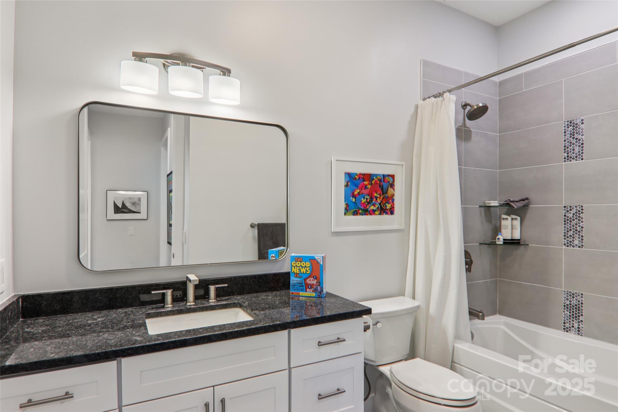 Welcome to "The Good News Is House" — a luxurious, modern mountain retreat just above the Ecusta Trail and less than 2 miles from downtown Hendersonville. This newly built 4BR/3.5BA Certified Green-Built home offers nearly 2,700 sq ft of light-filled living space, plus a 522 sq ft garage (with new 6-seat Bintelli golf cart included!) and 522 sq ft of unfinished flex space for future potential. Named “The Good News Is House” by its owner, a board game inventor who completed his latest game here, this home was designed to inspire creativity and comfort. Enjoy two open-concept kitchens and living areas, a peaceful and spacious primary suite, upper-level Trex deck, screened patio, and game room—ideal for entertaining or multi-generational living. Luxury upgrades include Hunter Douglas premium blinds, privacy window tint, custom Carolina Closets, Ring security system, AT&T fiber internet, and professional landscaping. Privately tucked away on a quiet cul-de-sac, the home offers a peaceful setting with seasonal mountain views—yet is just minutes from shops, dining, and outdoor adventure. "The Good News Is": this home has it all. The great news is: it can now be yours. Sold mostly furnished. Please contact agent for features sheet and showings.