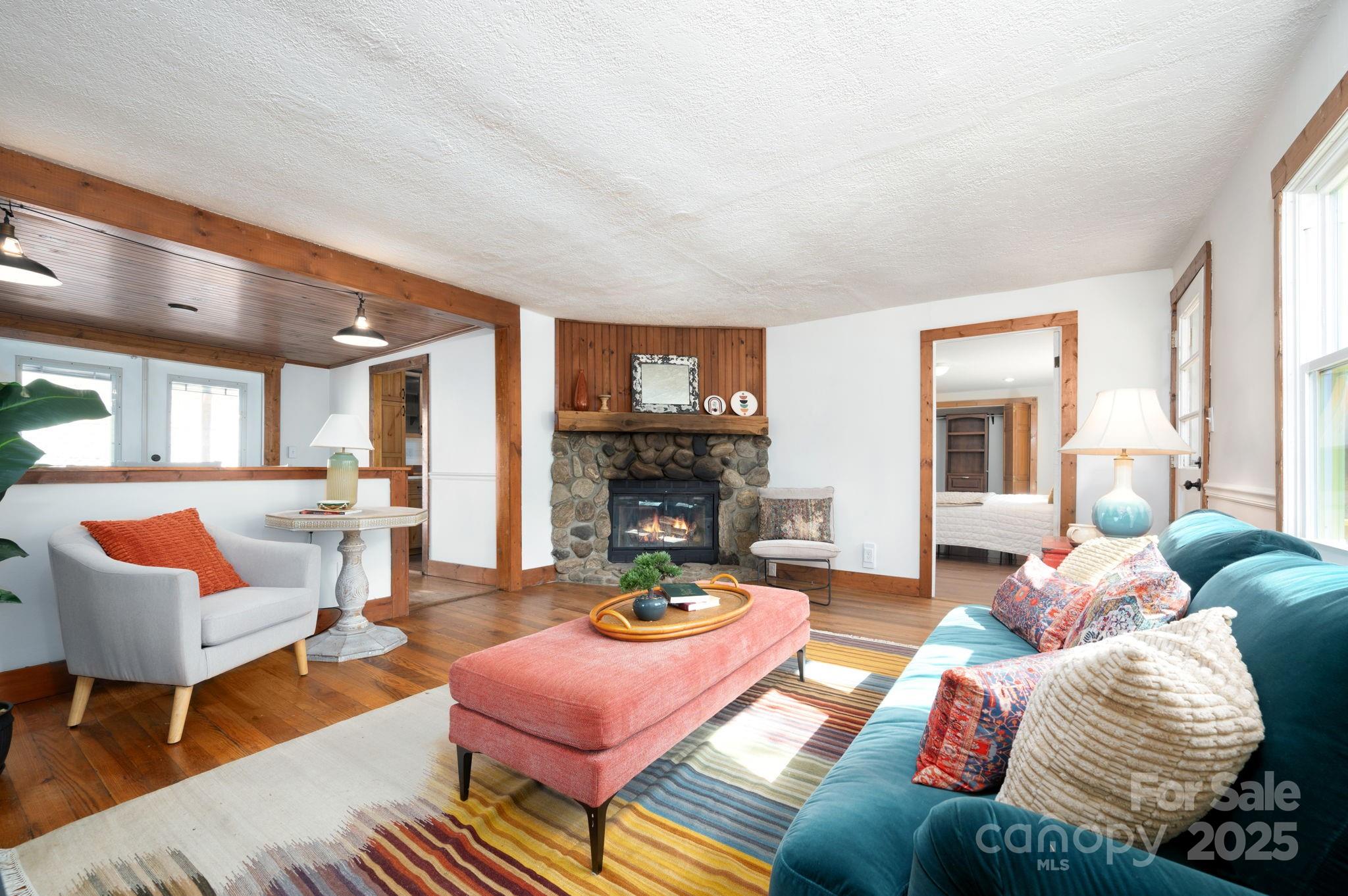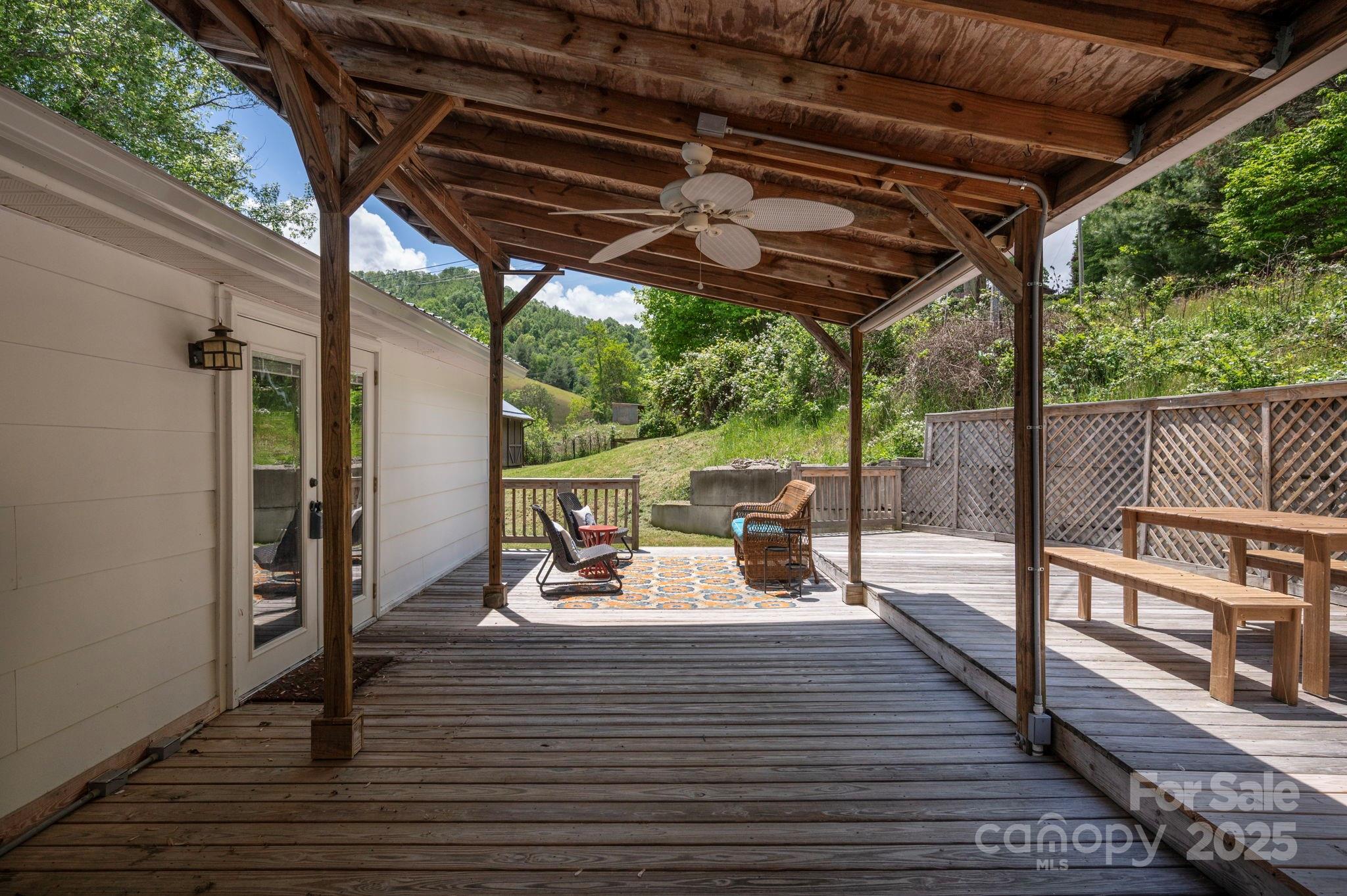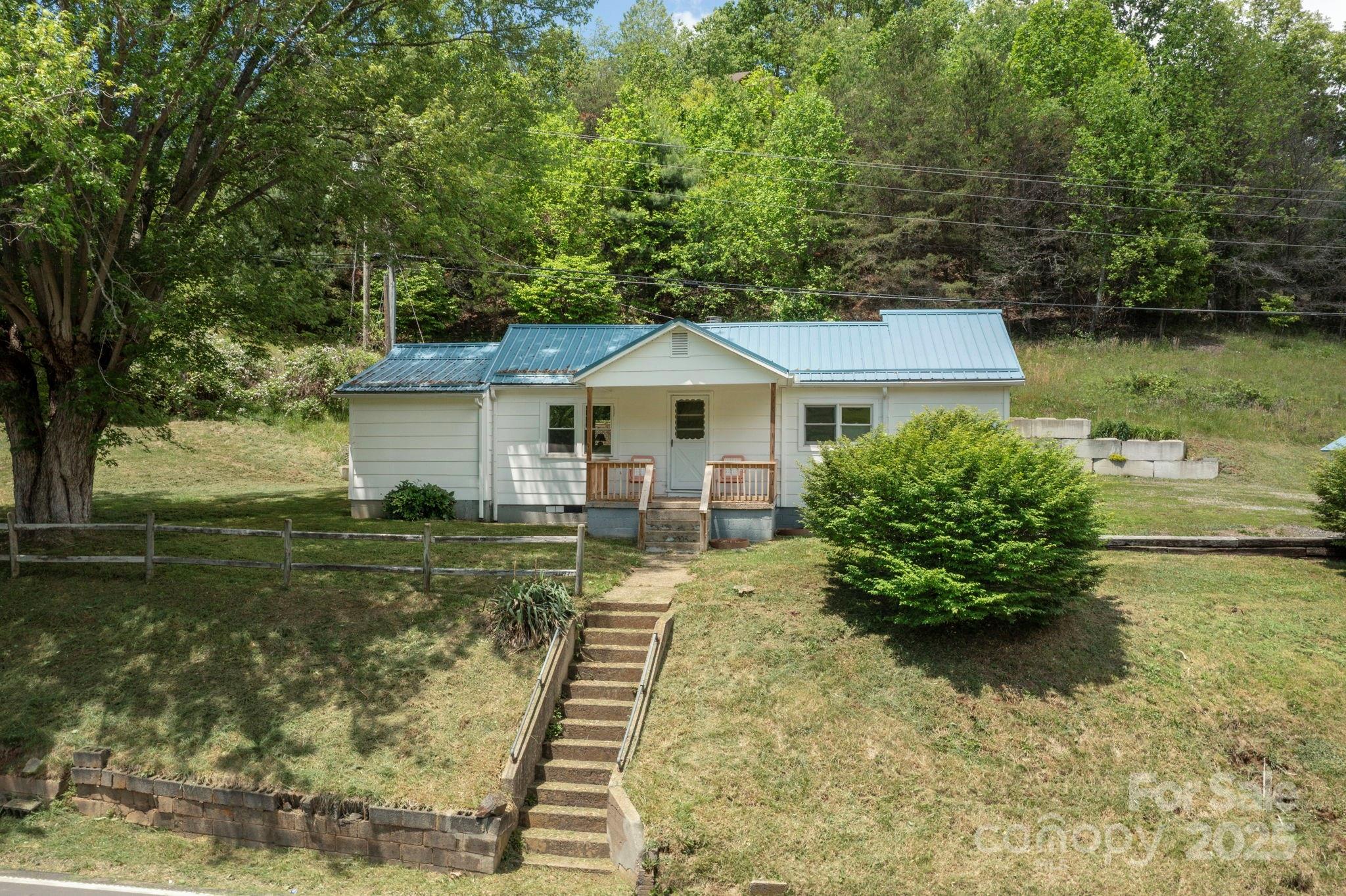 Cute cottage with two outbuildings great for artists ! Minutes Mountain Air Country Club, 5 min to Burnsville- 30 to Marshall and 35 min to downtown Asheville. Sunny quiet spot great for gardening and just enjoying the peace and quiet of mountain living. Enjoy picturesque rolling hills from this charming 3 bedroom 2 bath. Renovated kitchen with new appliances and quartz counter tops and fresh interior paint. One level living with open living/dining area with gorgeous stone fireplace. Spacious primary bedroom has clawfoot tub bathroom. Beautiful hardwood floors throughout. Beautiful antique vanity in second full bath. Tons of outdoor decking and covered area. Has carport and tons of room to park. Great for vacation home, first time home, second home or empty nest. Cute outbuilding makes great potential studio (water currently not hooked up). Second storage shed is a great workshop space. 2009 metal roof. Shared well. New Septic in process. Perfect homestead chickens and goats allowed.