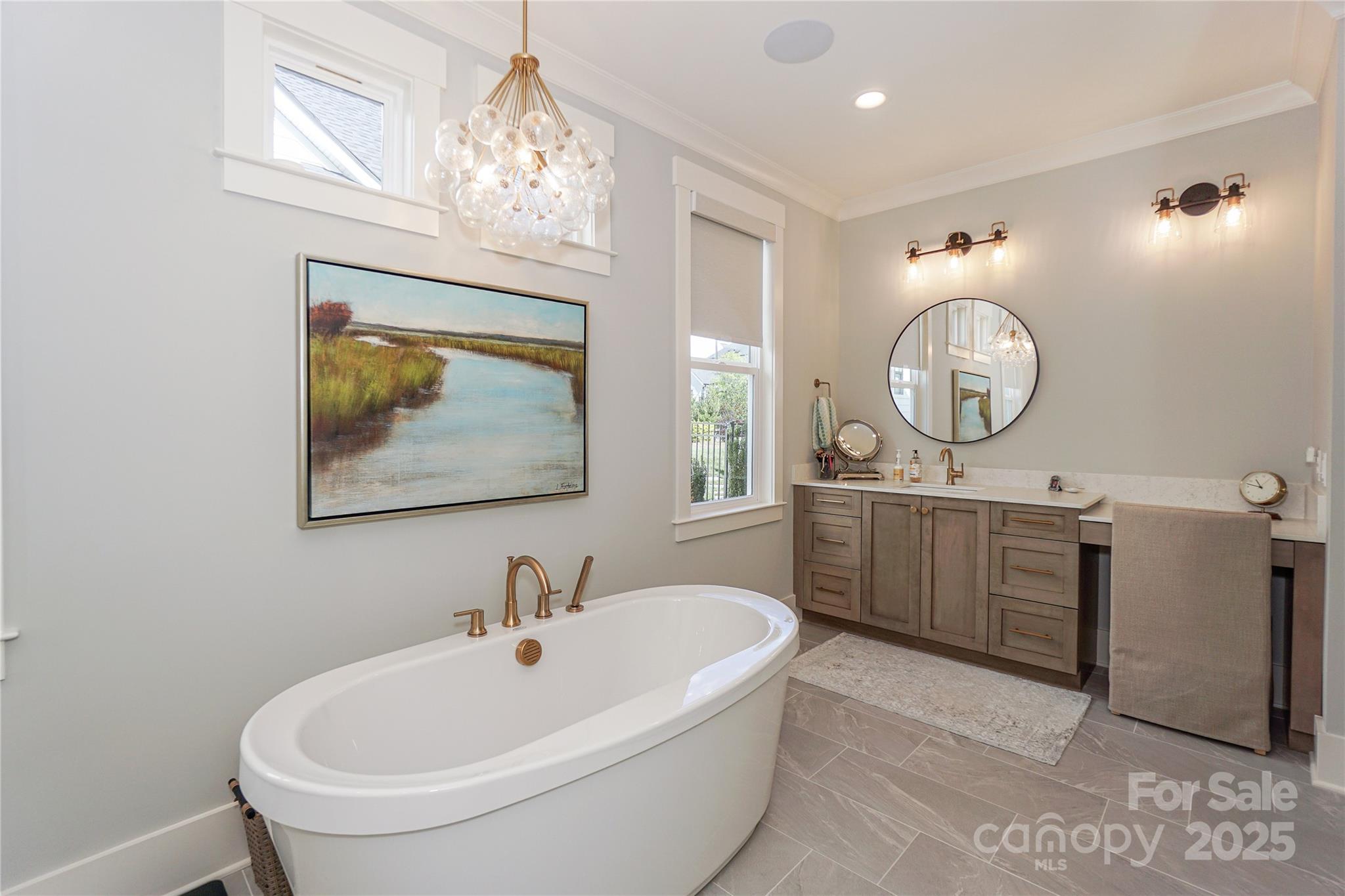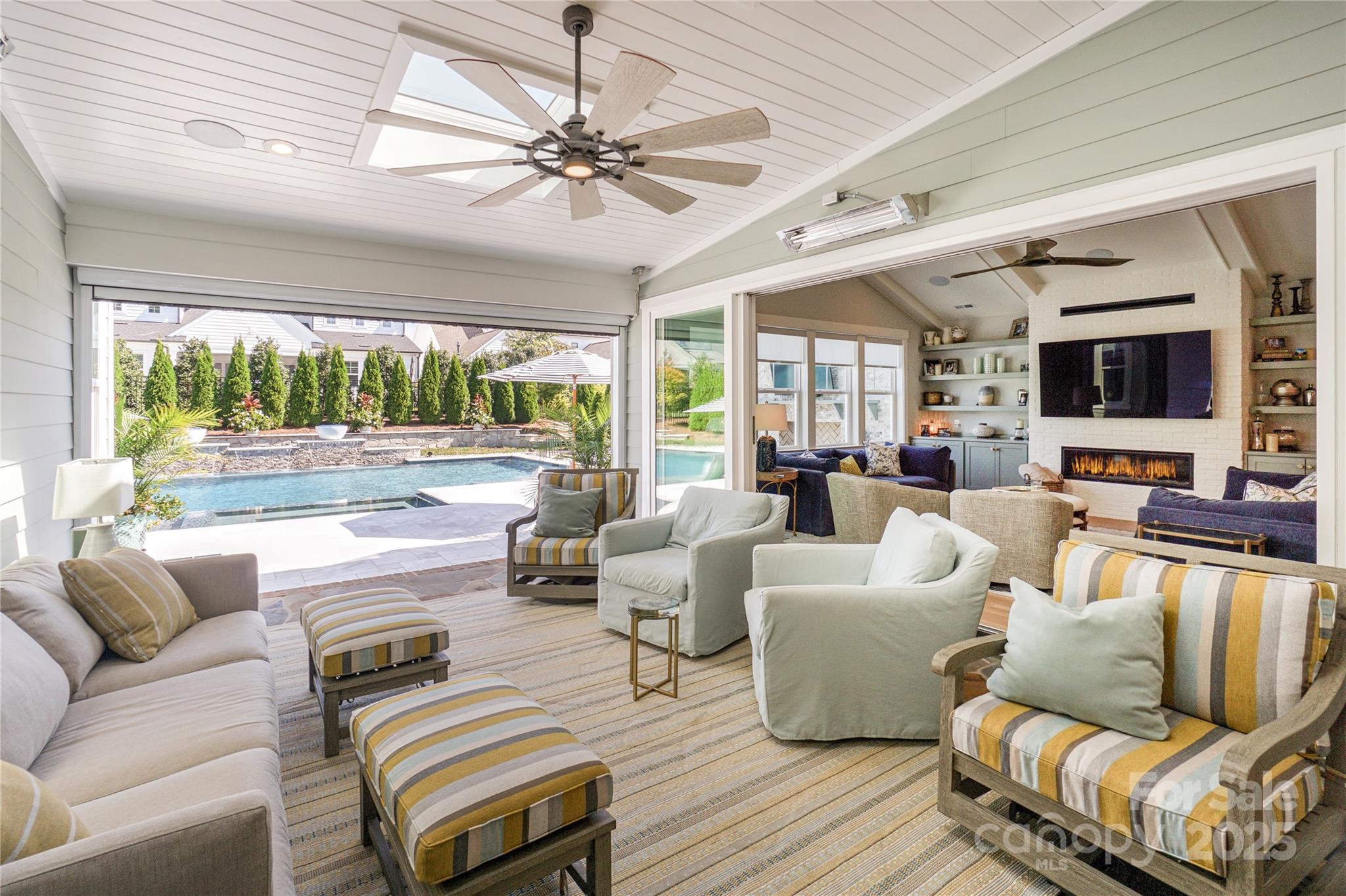 SPECTACULAR Classica (Monterrey plan) with ALL the bells, whistles, & MORE! You will enjoy entertaining by the Luxury saltwater pool w/3 waterfalls & 2 fire bowls, outdoor TV area over the gas fireplace & built in gas grill station. Inside the home-not a detail was missed! Incredible millwork as well as solid core doors throughout. Custom Banister. Sonos speakers system inside & out. Primary on Main level w/ensuite bath featuring rectangular tile flooring, custom closet w/ private door to laundry room & tiled walk in shower. Gourmet Kitchen w/2.5" quartz island w/added storage, white cabinetry, Jennair 6 burner cooktop, Bosch dishwasher, & scullery that includes a mini frig, add'l pantry, drawer microwave, and auto lighting. Added beams in the vaulted Great Room w/gas fireplace, built in floating shelves, & quad retractable doors to the Sunroom featuring travertine floors, 3 heaters, retractable screen & vinyl-making a 3 seasons room. Downstairs also offers a private study w/ coffered ceiling & drop zone off the garage entrance. Upstairs boasts an oversized Loft/Bonus/Media Room w/LED surround sound tv & projector, Large walk in storage closet/upstairs laundry room, walk in attic storage, and 3 bedrooms w/ ensuite baths. Custom light switches controls. Epoxy garage flooring. Irrigation system.