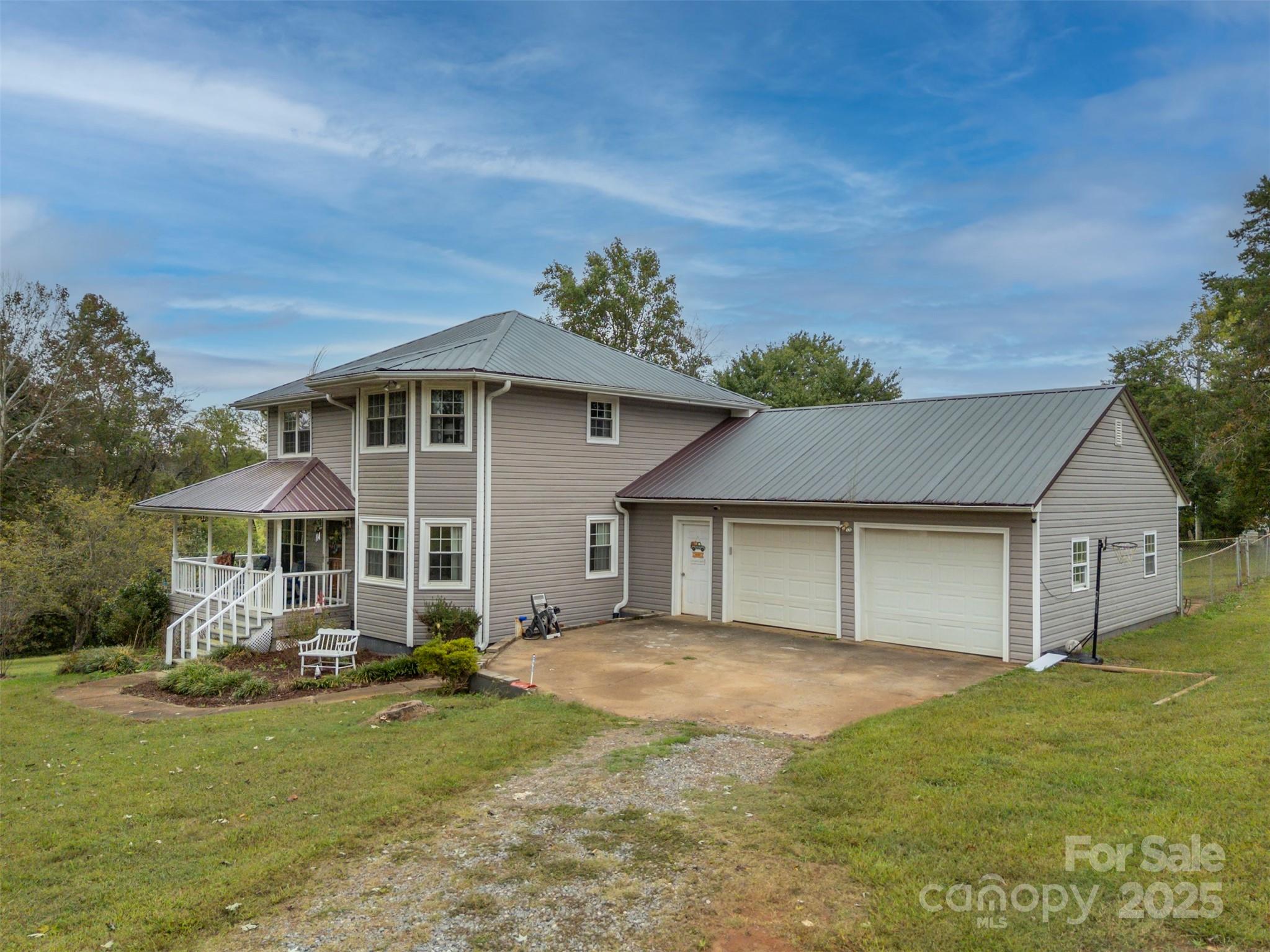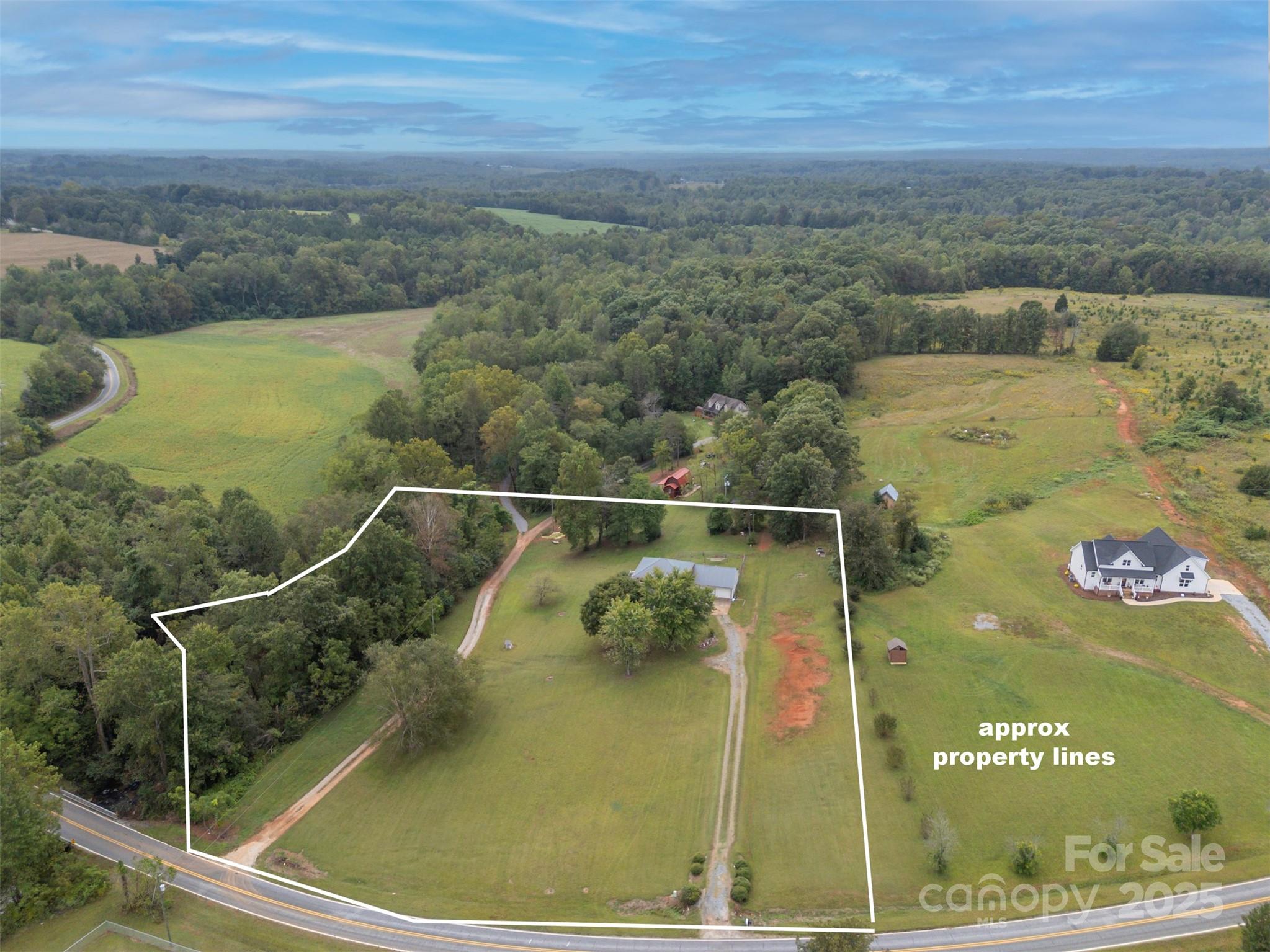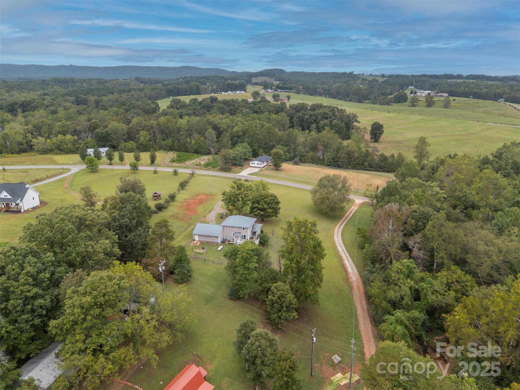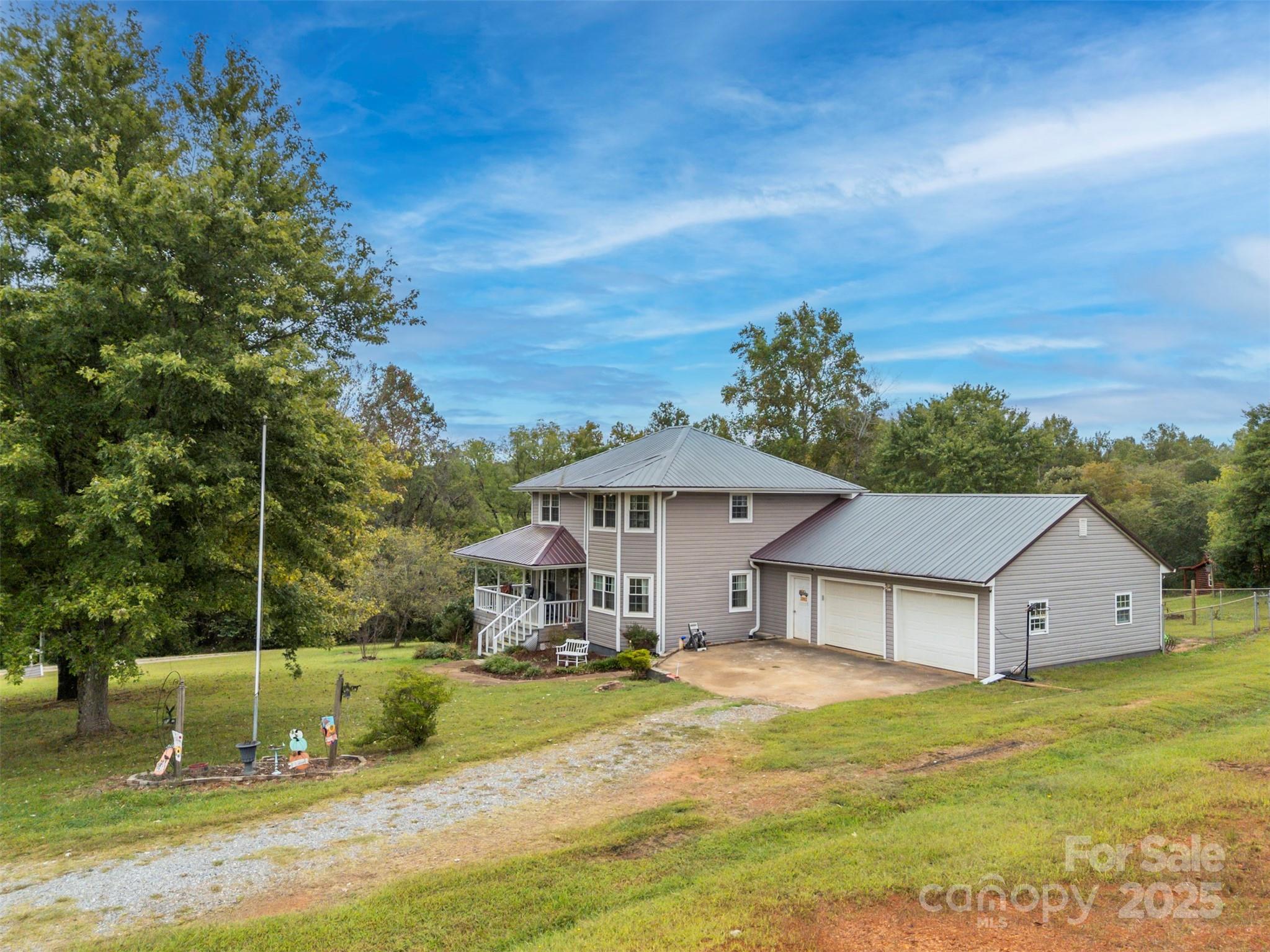 Charming farmhouse situated on approximately 2 acres of unrestricted land w/creek. Sweet wrap around front porch, attached double car garage, and fenced back yard. Convenient drop zone as you enter the home from the garage, powder bath just off kitchen, and spacious dining room. Bedrooms are located upstairs w/full shared bath. Primary bedroom features its own private vanity and walk-in tile shower. Original hardwoods in the living room and dining area w/beaded wainscoting & chair rail. Great opportunity for peaceful rural living with space for gardens, animals, or just the freedom of land with elbow room.
