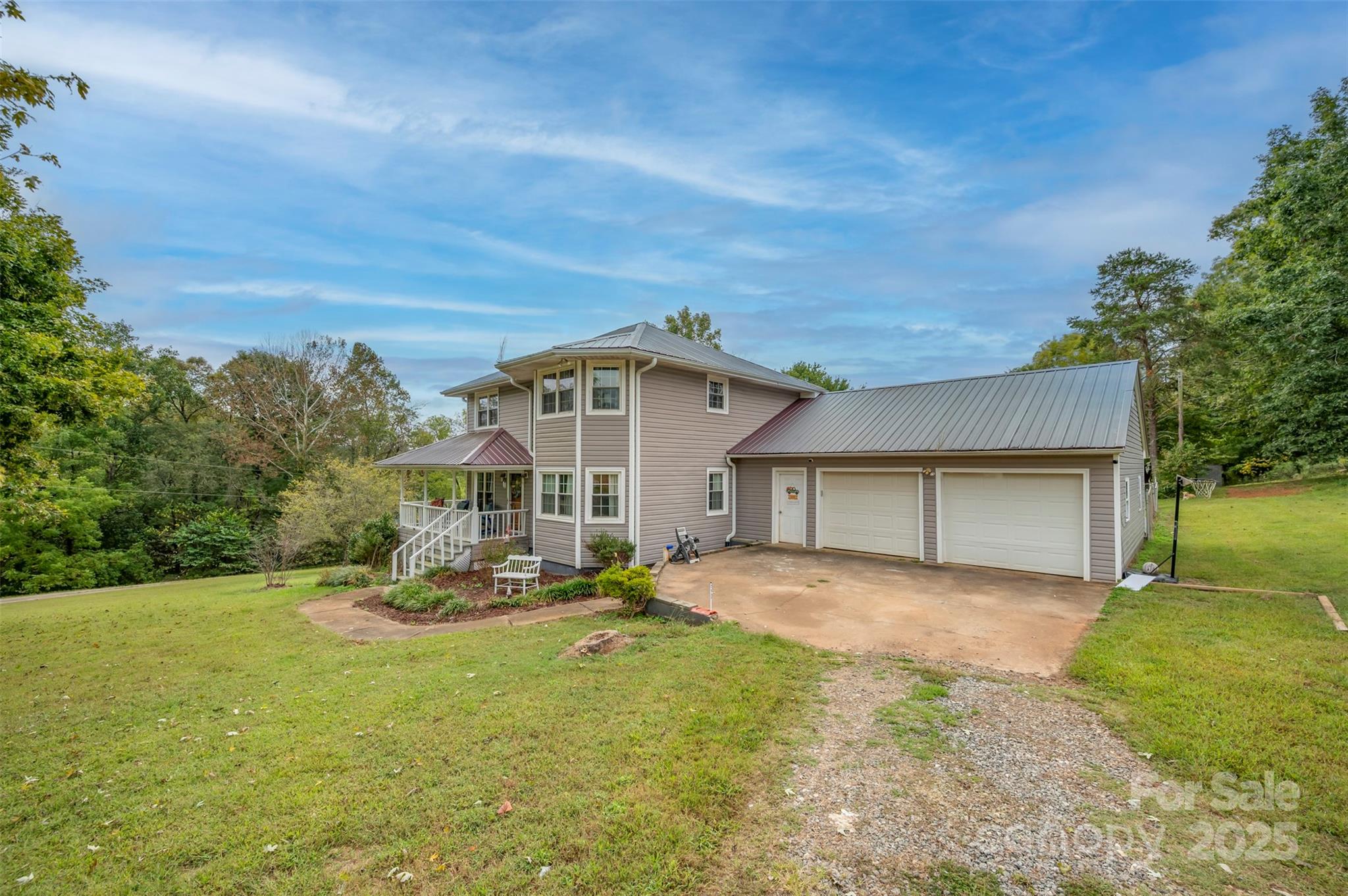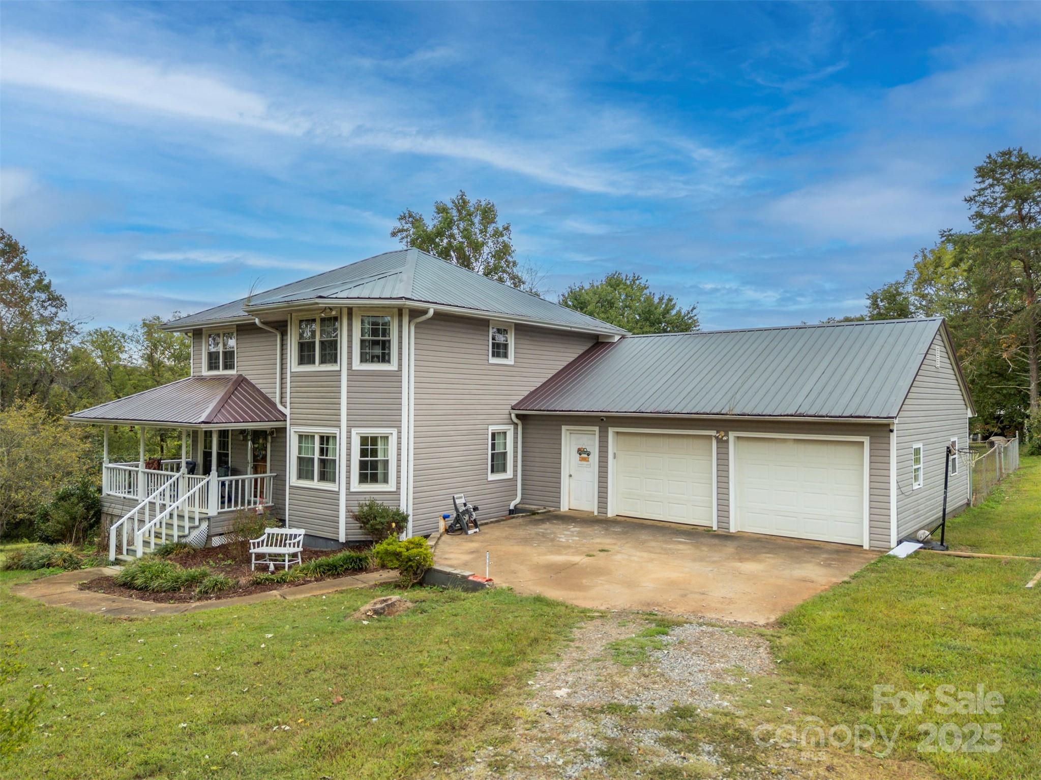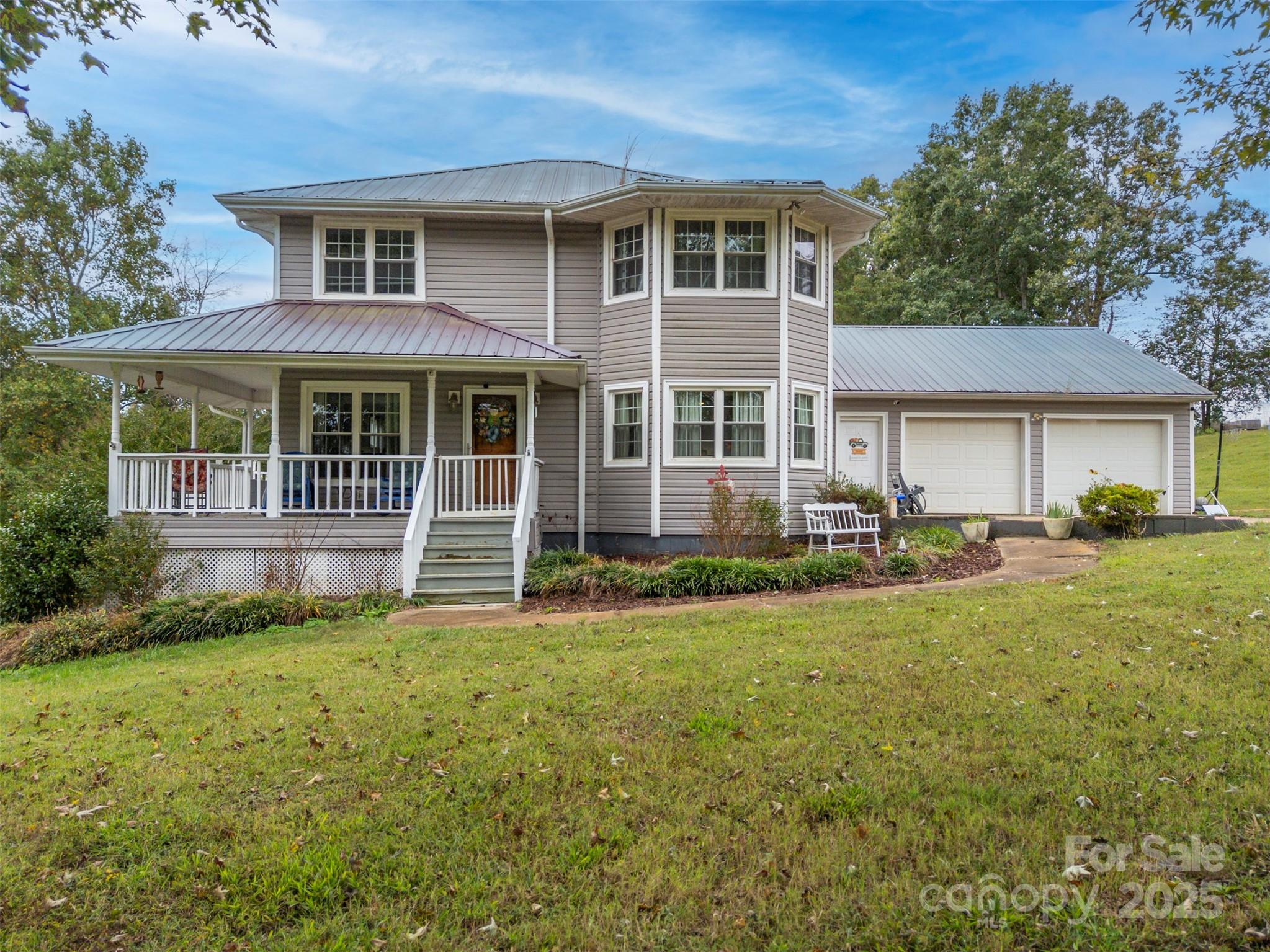 Charming farmhouse situated on approximately 2 acres of unrestricted land w/creek. Sweet wrap around front porch, attached double car garage, and fenced back yard. Convenient drop zone as you enter the home from the garage, powder bath just off kitchen, and spacious dining room. Bedrooms are located upstairs w/full shared bath. Primary bedroom features its own private vanity and walk-in tile shower. Original hardwoods in the living room and dining area w/beaded wainscoting & chair rail. Great opportunity for peaceful rural living with space for gardens, animals, or just the freedom of land with elbow room.