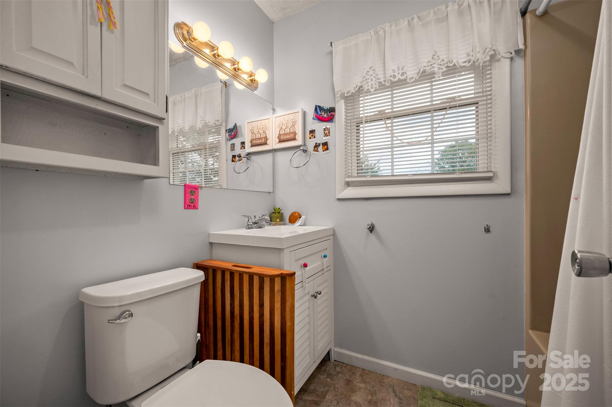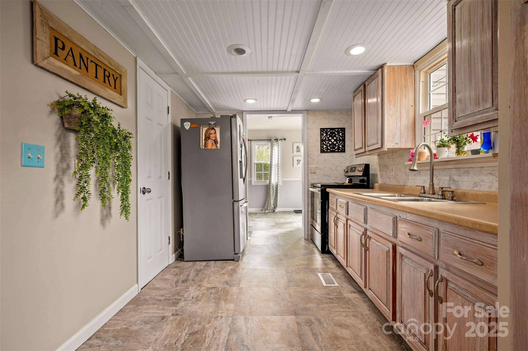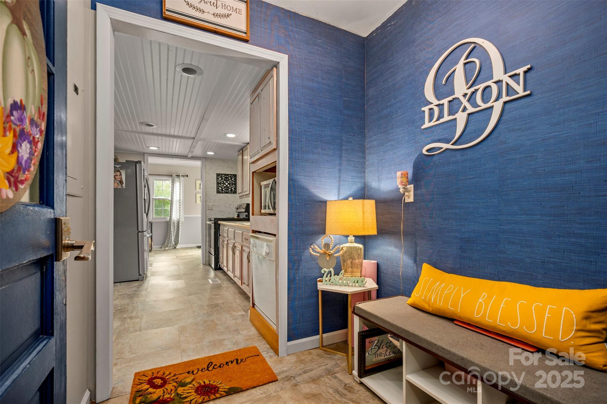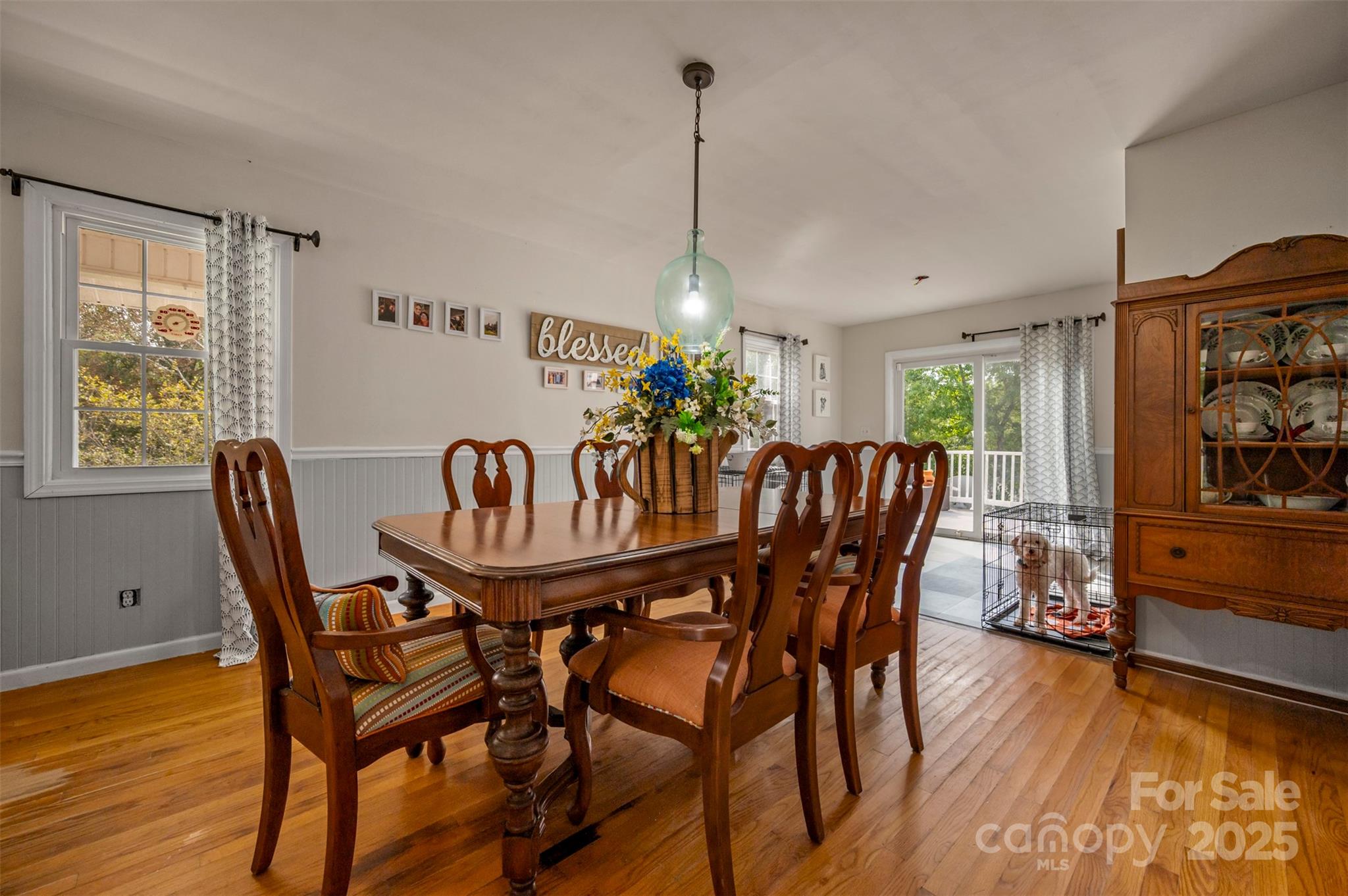 Charming farmhouse situated on approximately 2 acres of unrestricted land w/creek. Sweet wrap around front porch, attached double car garage, and fenced back yard. Convenient drop zone as you enter the home from the garage, powder bath just off kitchen, and spacious dining room. Bedrooms are located upstairs w/full shared bath. Primary bedroom features its own private vanity and walk-in tile shower. Original hardwoods in the living room and dining area w/beaded wainscoting & chair rail. Great opportunity for peaceful rural living with space for gardens, animals, or just the freedom of land with elbow room.