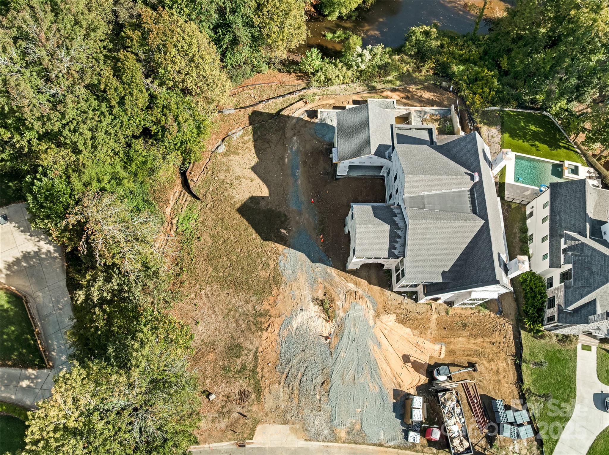 Fantastic opportunity to build your dream home on a .673 acre lot by the end of the cul-de-sac in Sharon Hills near the Quail Hollow golf course. Deep lot is ideal for a basement home overlooking trees and a small private pond. Bring your own builder or purchase existing engineered plans for a modern home that was custom designed for this lot.