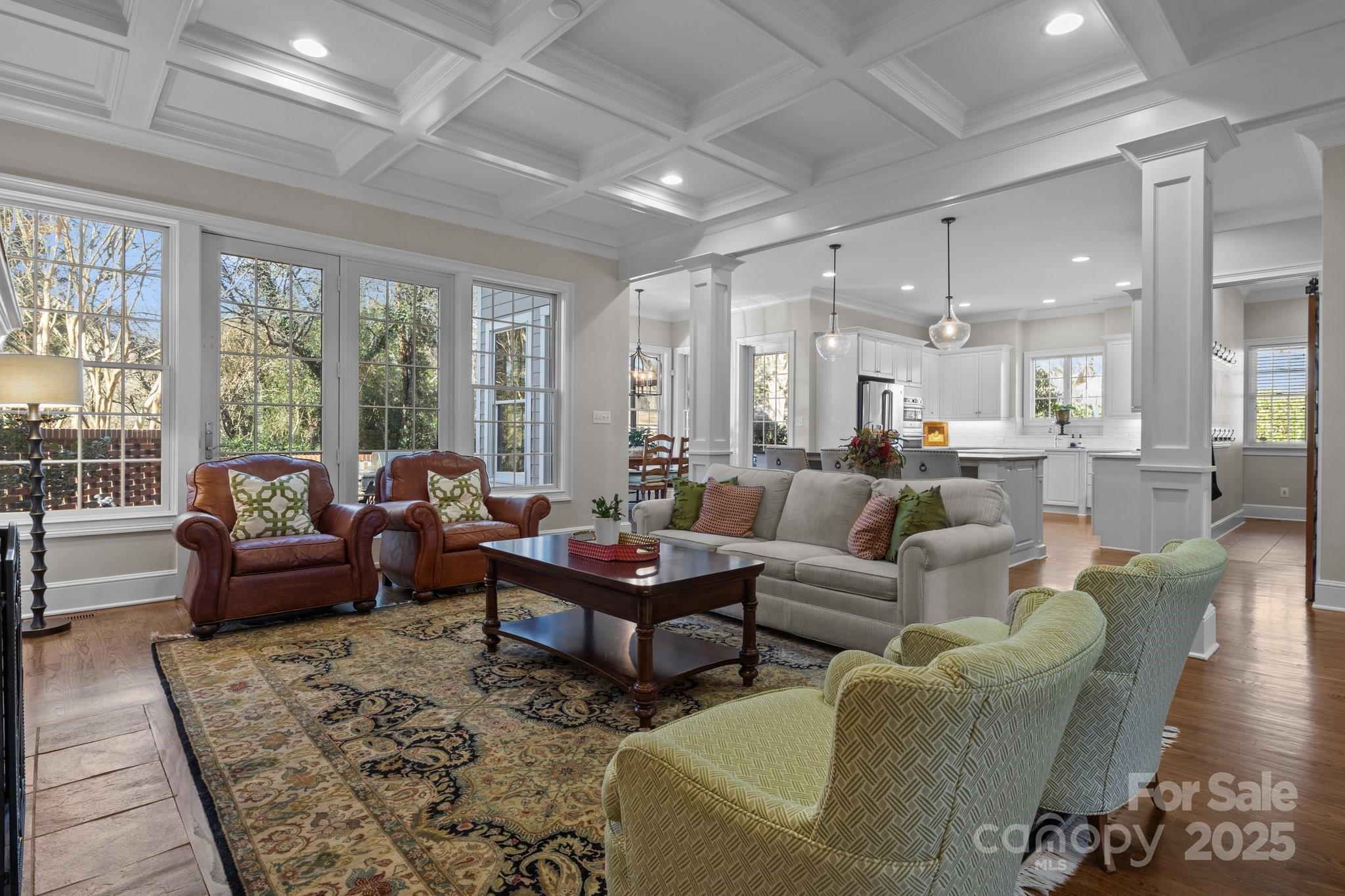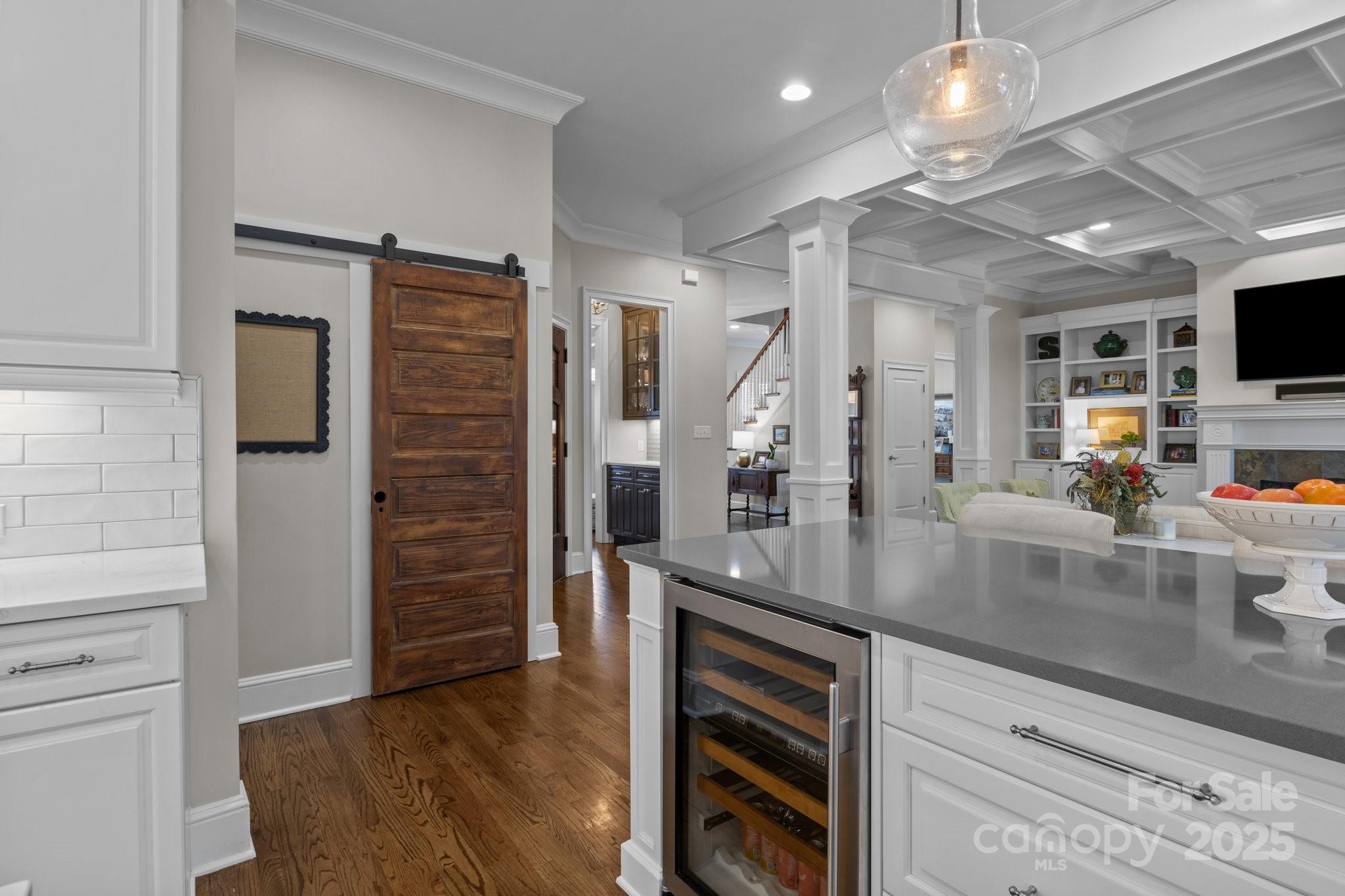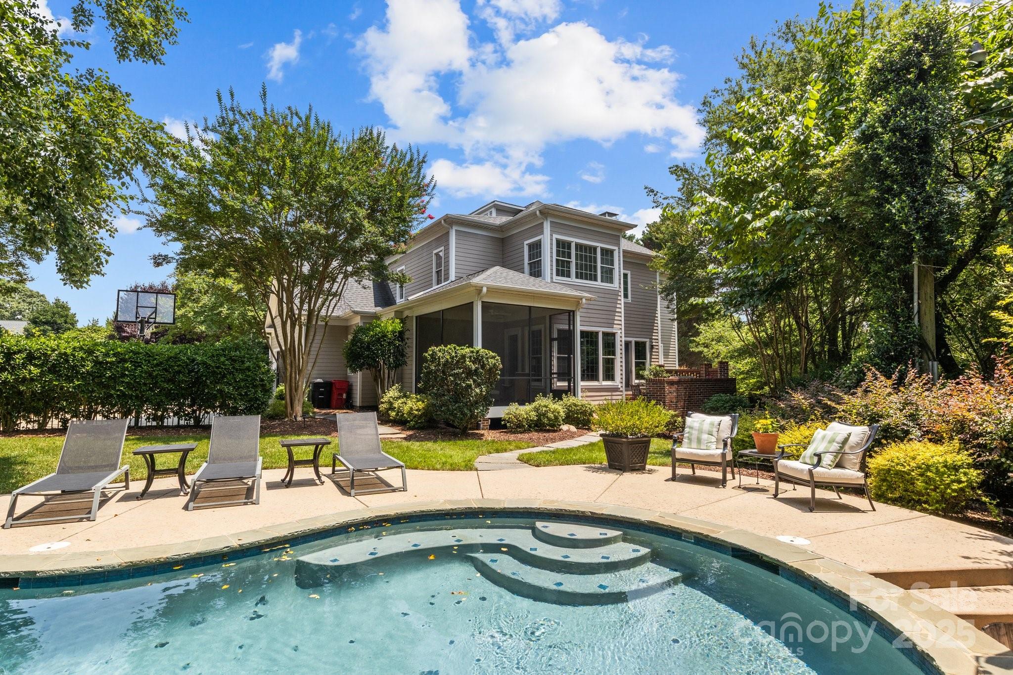 Nestled in the heart of Davidson, this exceptional home offers the rare opportunity to live just a short walk from charming shops, top-rated restaurants, and Davidson College. Thoughtfully designed with quality craftsmanship and superior finishes, this residence seamlessly blends character and modern convenience. Inside, you’ll find an inviting open floor plan with abundant natural light, custom millwork, custom wine cellar, and hardwood flooring throughout. The chef’s kitchen features a large quartz island, subway tile backsplash, and custom light fixtures—perfect for entertaining. The coffered ceiling great room serves as a stunning gathering space, while the spacious primary suite boasts a luxurious en suite bath. Step outside to enjoy the serene backyard, complete with a custom saltwater pool, exquisite decking, and professionally designed landscaping. Additional features include a two-car garage with epoxy flooring, ample storage, and a beautifully designed outdoor living space.