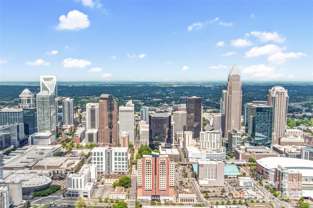 Elevate your lifestyle in this stunning high-rise retreat above Uptown Charlotte! This chic, move-in-ready 1-bed, 1.5-bath condo at the coveted Skye Condominiums offers breathtaking panoramic views of the Charlotte skyline through floor-to-ceiling windows, immersing you in the vibrant energy of the city below. Inside, enjoy a newly upgraded kitchen with sleek, modern finishes and spa-inspired bathrooms blending minimalist luxury with everyday comfort, making your routine feel like a retreat. With an open-concept living space, the layout maximizes natural light and livability. Skye Condominiums deliver a lifestyle with concierge service, valet trash, a state-of-the-art fitness center, game room, theater room, and secured parking. Walk to sports arenas, dining, shopping, and light rail access—everything you need is just moments away. Whether you're a first-time buyer or seeking a sleek urban oasis, this is your chance to own a piece of Charlotte’s premier high-rise luxury living! Use preferred lender to buy this home and receive an incentive towards your closing costs!