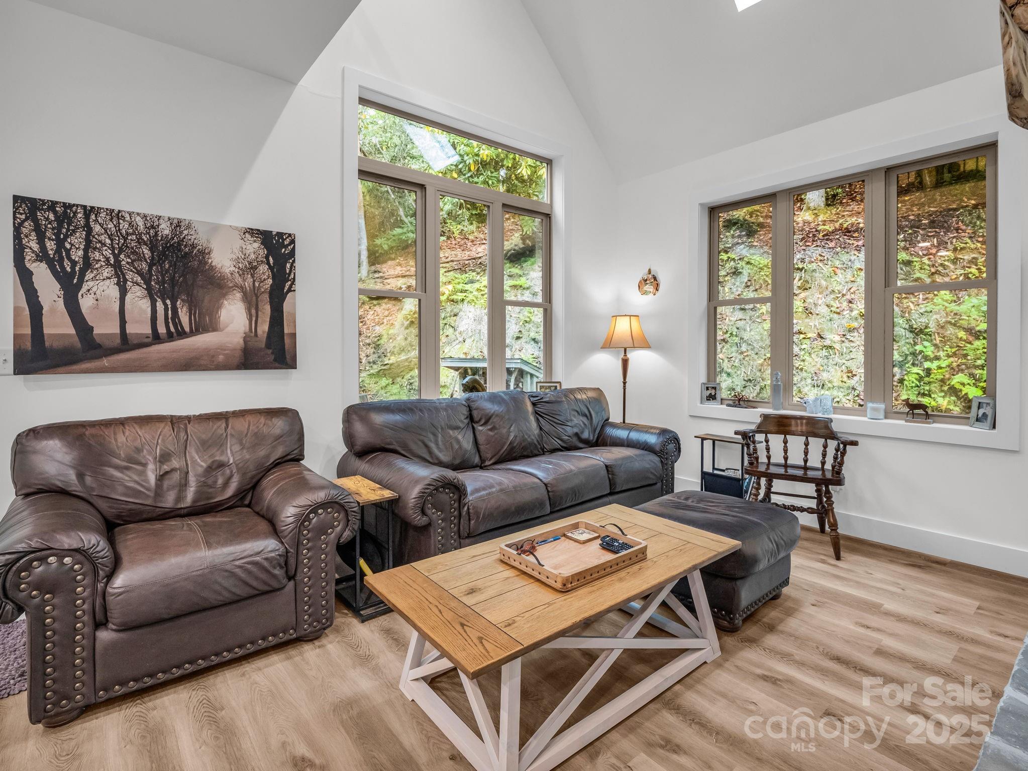Experience effortless living in this immaculate, one-year-old home, perfectly positioned along picturesque Williamson Creek and just down river from the Williamson Creek Waterfall and only 10 minutes to downtown Brevard! This thoughtfully designed 2-bedroom, 2-bathroom floor plan is ideal for those seeking both modern convenience and a strong connection to nature. The main level offers luxury living at its simplest with 10 ft ceilings, chic finishes, a gorgeous stone fireplace, and a one and done dryer. Main level living never looked so good. The second floor offers a large bedroom and bathroom and a loft for additional flex space which could easily convert into a home office, den, or guest quarters. The covered porch or back patio is the perfect spot for morning coffee, while the gently flowing creek provides a calming backdrop for outdoor relaxation. Low-maintenance landscaping ensures you can spend more time enjoying your peaceful surroundings and less time on upkeep.
