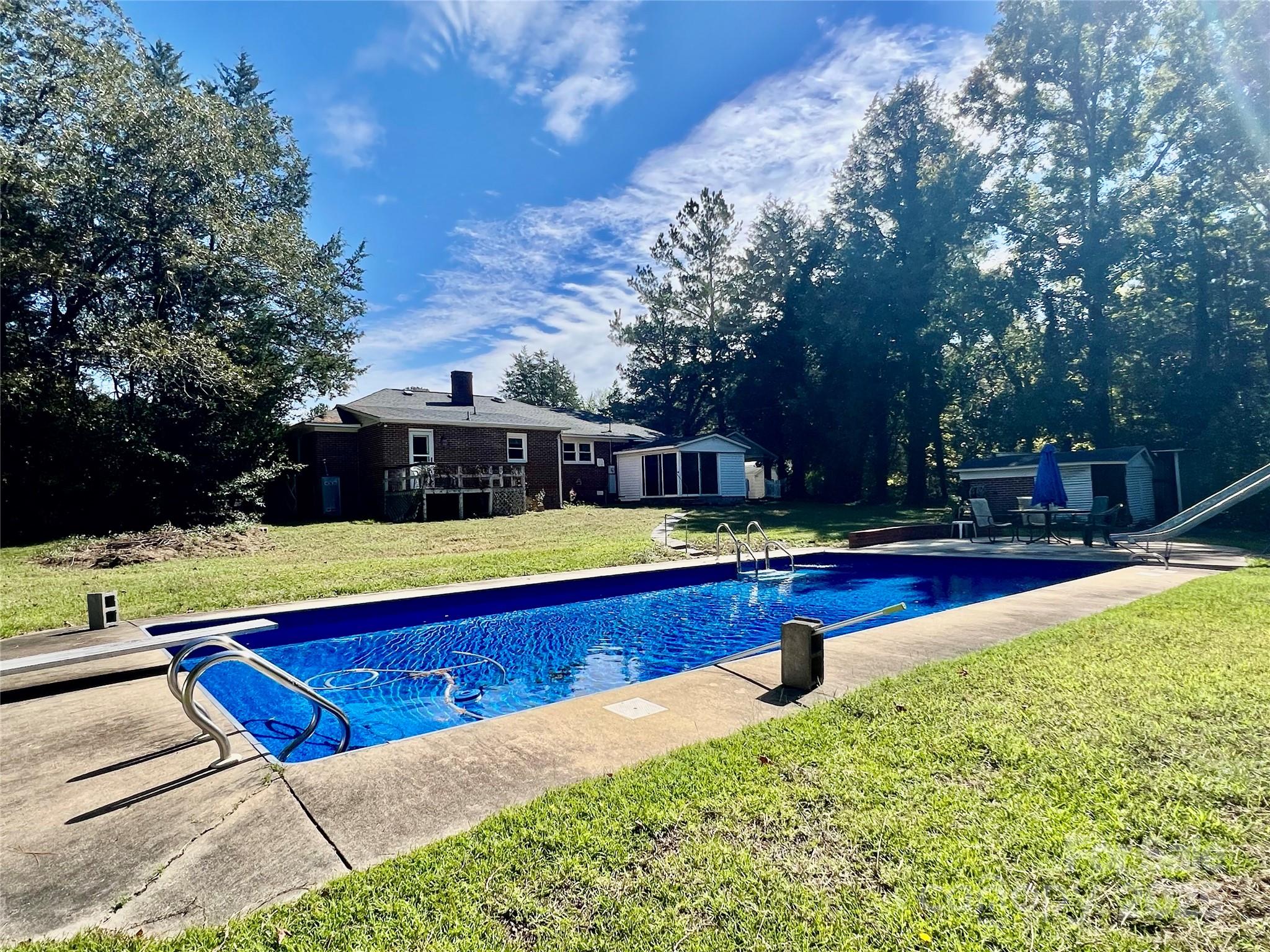 Welcome home! 4181 Edgeland Rd is just what you have been waiting for. 2 acres, no HOA, perfect peaceful location, beautiful in-ground saltwater pool, and yes – kicking it back to the 70’s with the infamous slide to help you find your way into the water! This 3-bed 2-bath brick home boasts original hardwood floors and a gorgeous porcelain double sink in the kitchen where windows overlook the pool area and a fenced backyard that offers much needed privacy, that provides a great space for potential gardening, get-togethers, and future enhancements. Bring your vision and make this home your own! A place where you can leave the hustle and bustle of the city behind. A place where you can spend countless hours relaxing and enjoying quiet country living or hanging out with friends or family. Just minutes from Hwy 9 and Hwy 77. Close to restaurants for a quick bite to eat. Just a short drive to Rock Hill, Chester or Lancaster and a minimal commute to Charlotte or Columbia. Call me or contact your favorite Realtor to schedule a viewing and explore the potential of this fantastic opportunity!