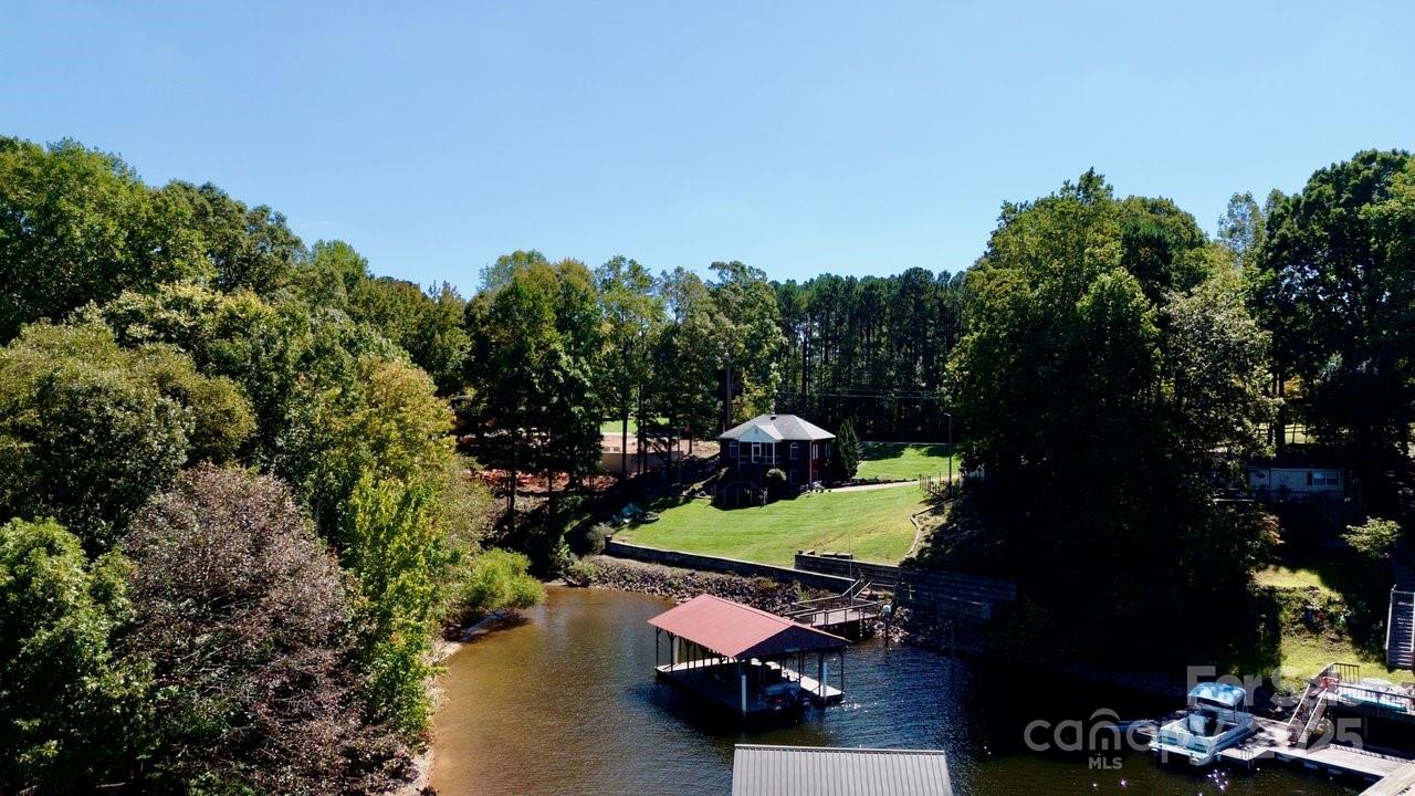 PRICE IMPROVEMENT!!!! Schedule your tour today! Looking for a stunning sunset view? Look no further! This is it! Gorgeous lot, stone retention wall and one of the biggest covered docks this side of the lake! Not to mention the dock was completely redone in 2019 ( new roof and all wood replaced!) This adorable lake front home is just waiting for your personal touch! Features include a newer roof (2020), a water heater (2025), and a newer well pump (2019). Granite countertops and a kitchen island are ideal for entertaining! The master bathroom was redone in 2015, and the screened-in porch has been updated with new carpet in 2022 and has the most perfect sunset view! Head down to the basement and cozy up to a wood-burning fireplace and an open-concept great room to decorate or create your own! Ideal location to restaurants and shopping!