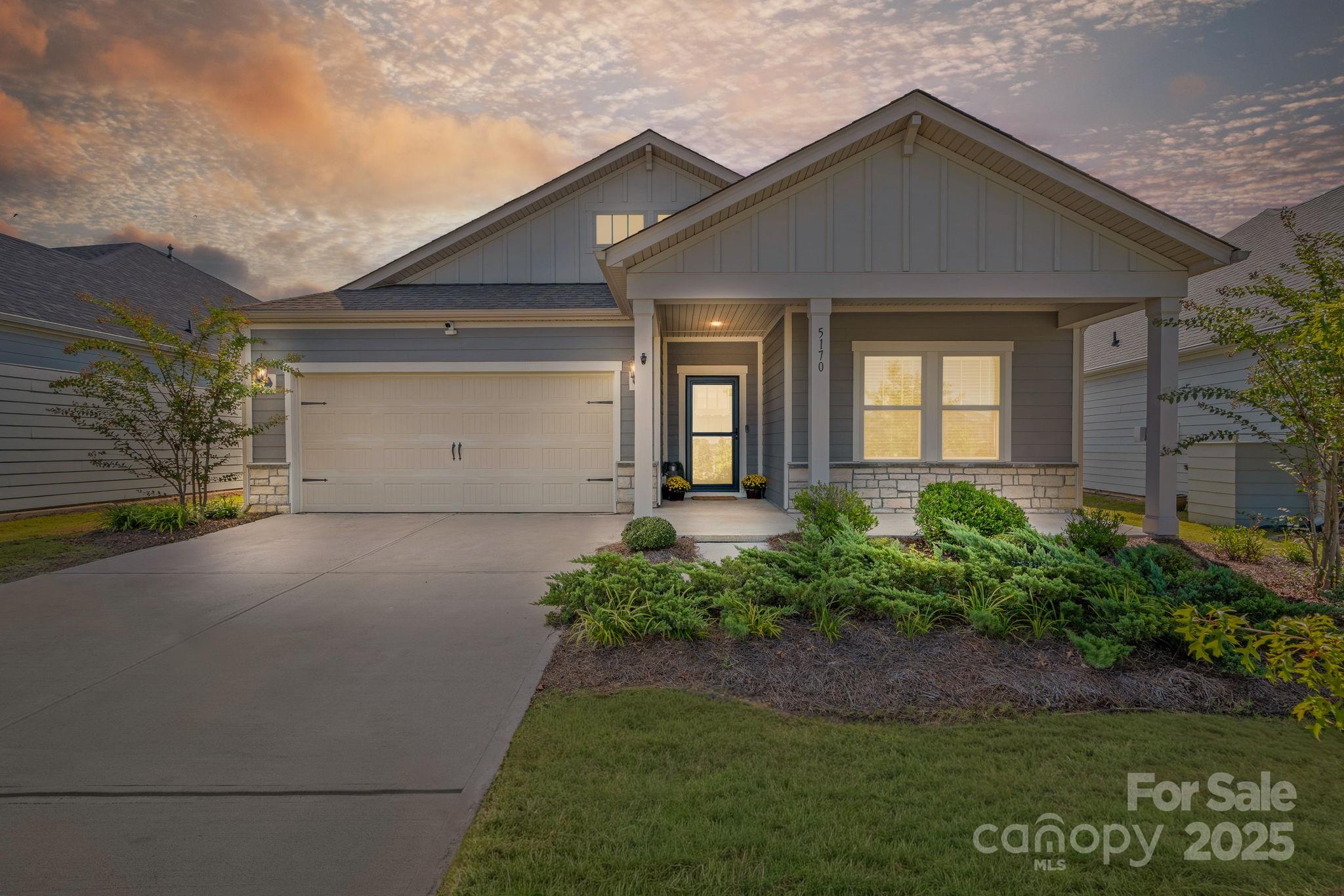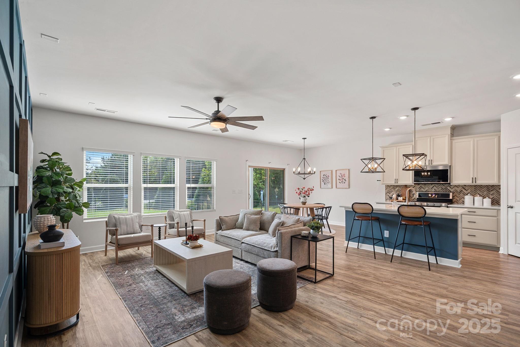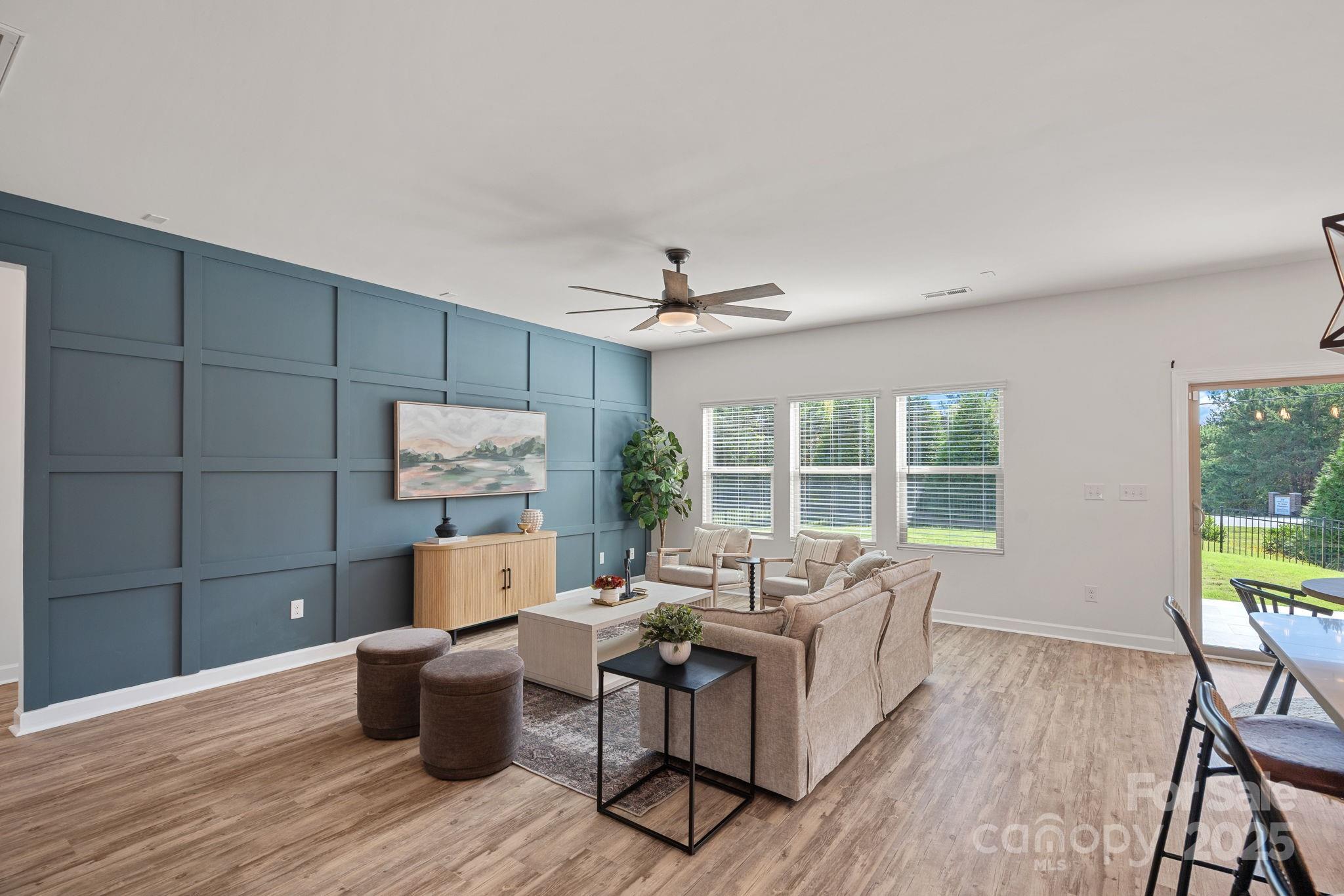 SELLER OFFER: Offering up to $5,000 Concession with acceptable offer. Welcome to your stunning, like-new home in the desirable Canopy Creek Community with Fresh Paint & Brand New Carpet. Step inside and be greeted by sophisticated design elements that set this home apart. Vinyl plank flooring flows seamlessly throughout the open main living areas, complementing the coffered wall detailing in the great room—perfect for entertaining. The entry hallway boasts charming board and batten wainscoting, adding a touch of classic craftsmanship. This 3-bedroom, 2-bathroom residence is designed for modern living, showcasing a chef's kitchen with quartz countertops, a gas range, with a double oven, all flowing into the dining and living area. The primary suite offers a tray ceiling and a stylish bathroom with a tile shower, walk-in closet, and linen closet. Enjoy year-round entertaining on the covered patio with porcelain tiles, overlooking the secure fully fenced backyard. The HOA in Canopy Creek takes care of the lawn maintenance, freeing up your weekends. You'll also have access to incredible community amenities, including a refreshing outdoor pool and scenic walking trails. For the avid golfers, Verdict Ridge Golf Course is located just across the street! Don't miss the opportunity to own this exceptional home where luxury meets low-maintenance living!