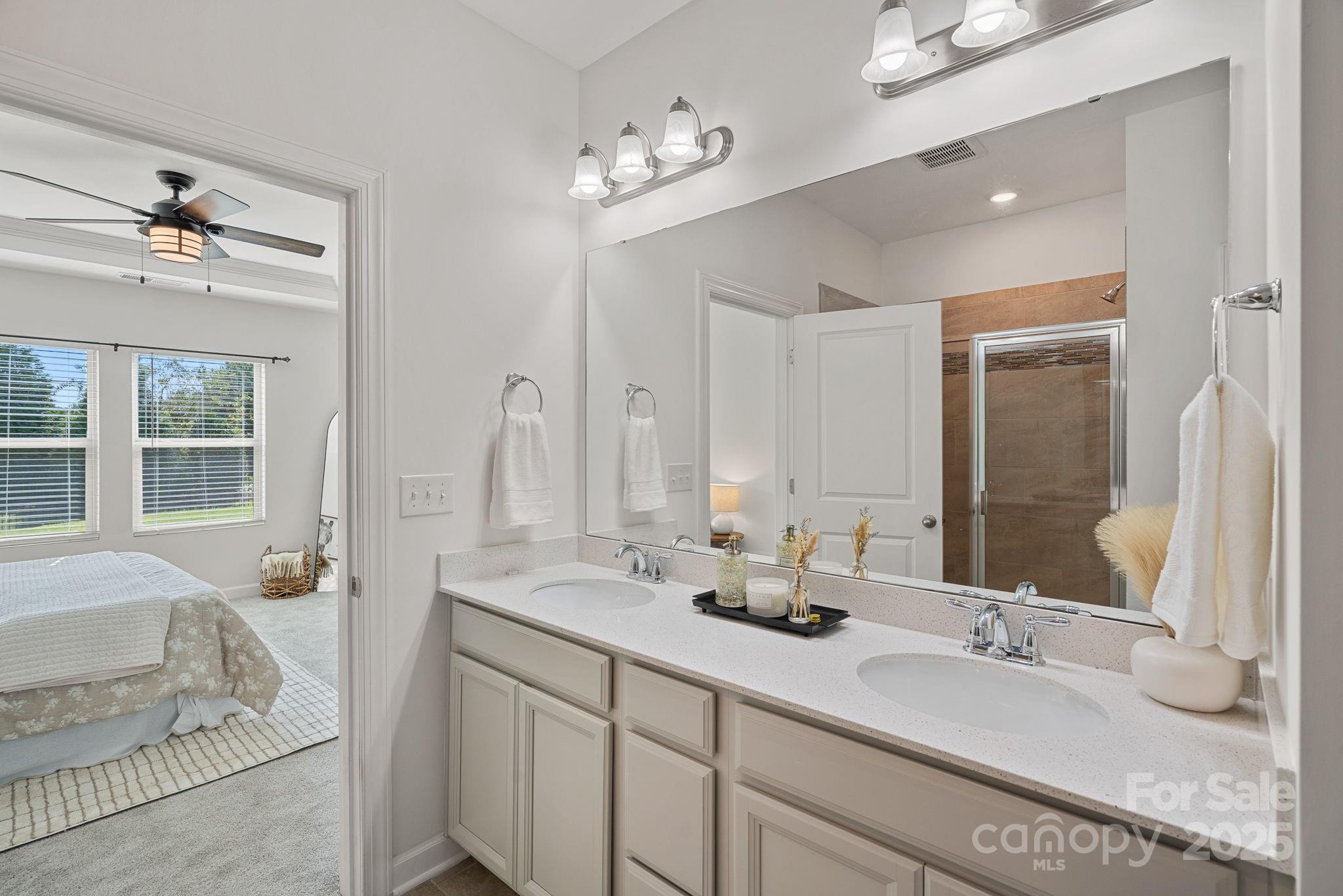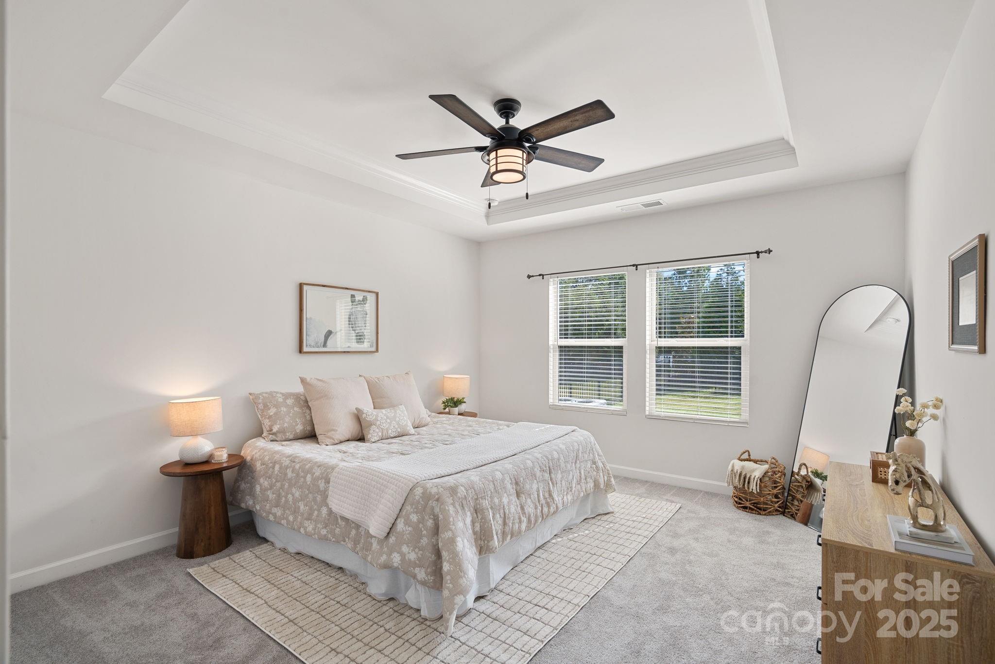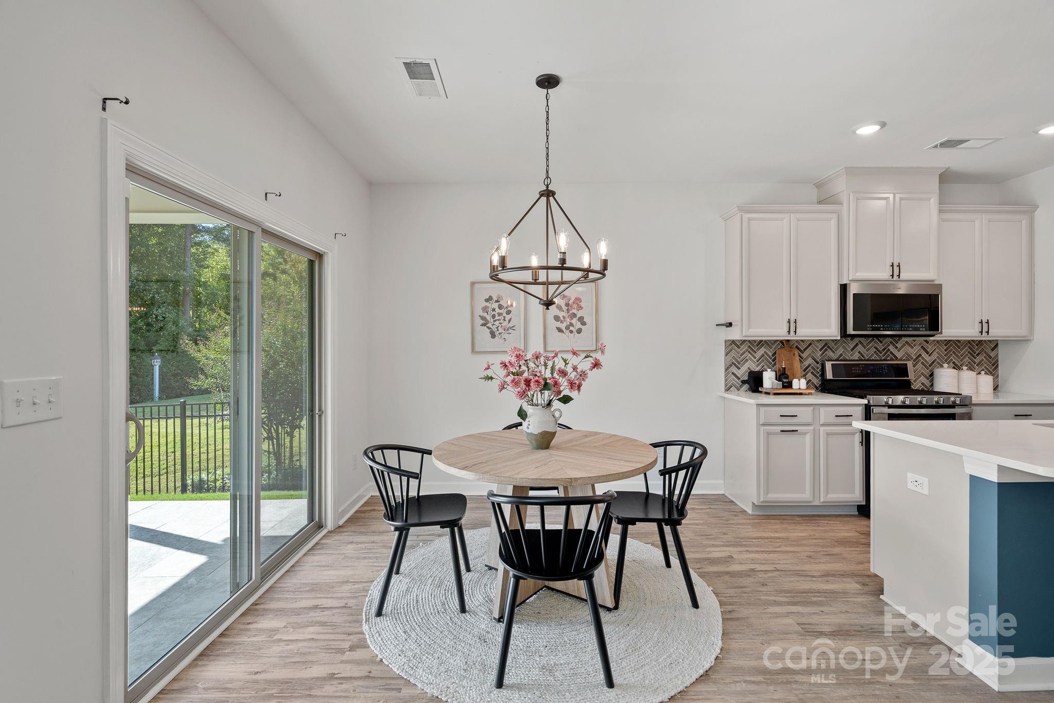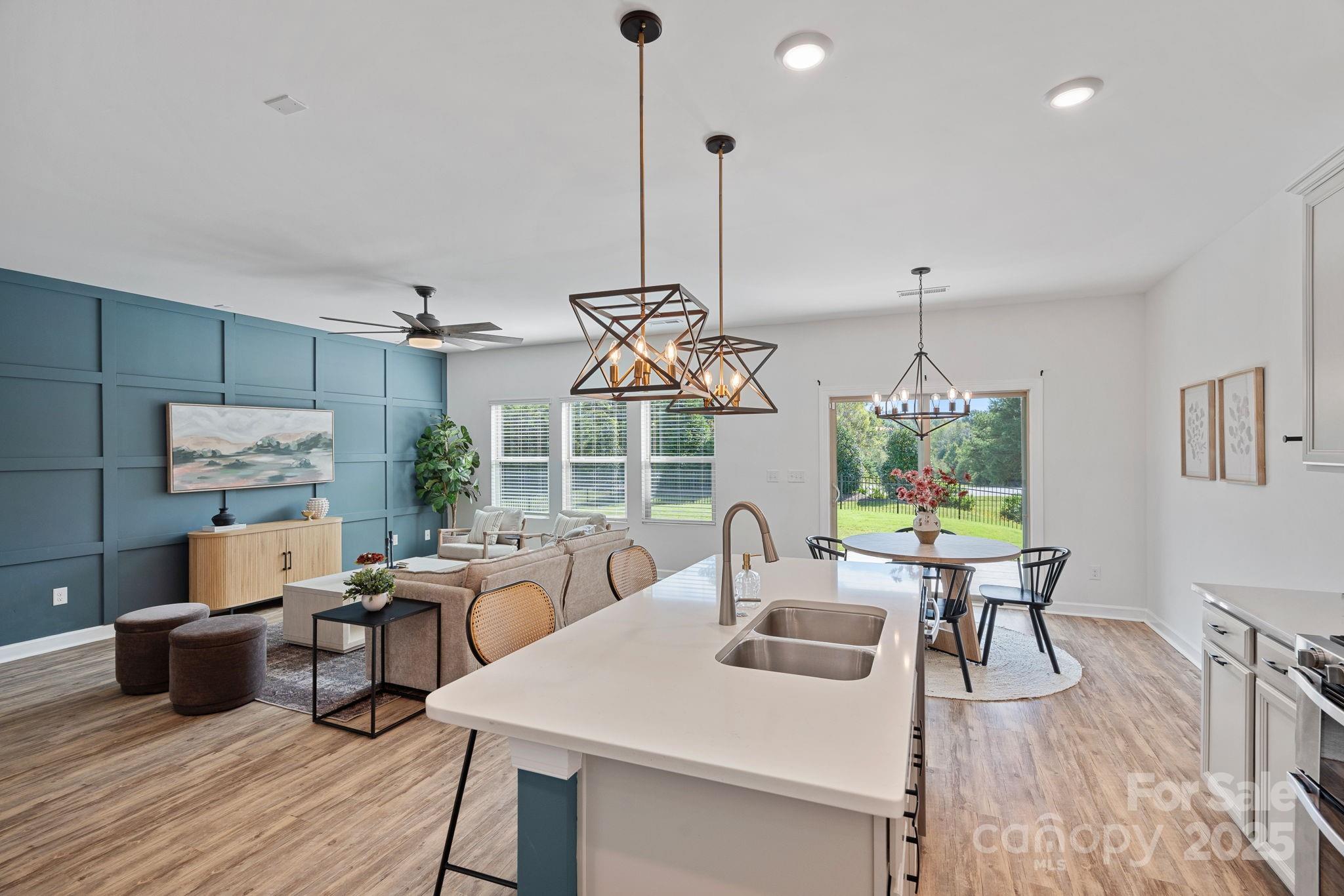 SELLER OFFER: Offering up to $5,000 Concession with acceptable offer. Welcome to your stunning, like-new home in the desirable Canopy Creek Community with Fresh Paint & Brand New Carpet. Step inside and be greeted by sophisticated design elements that set this home apart. Vinyl plank flooring flows seamlessly throughout the open main living areas, complementing the coffered wall detailing in the great room—perfect for entertaining. The entry hallway boasts charming board and batten wainscoting, adding a touch of classic craftsmanship. This 3-bedroom, 2-bathroom residence is designed for modern living, showcasing a chef's kitchen with quartz countertops, a gas range, with a double oven, all flowing into the dining and living area. The primary suite offers a tray ceiling and a stylish bathroom with a tile shower, walk-in closet, and linen closet. Enjoy year-round entertaining on the covered patio with porcelain tiles, overlooking the secure fully fenced backyard. The HOA in Canopy Creek takes care of the lawn maintenance, freeing up your weekends. You'll also have access to incredible community amenities, including a refreshing outdoor pool and scenic walking trails. For the avid golfers, Verdict Ridge Golf Course is located just across the street! Don't miss the opportunity to own this exceptional home where luxury meets low-maintenance living!