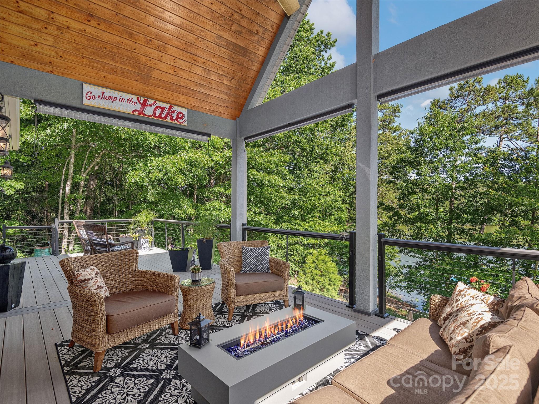 Nestled on the serene shores of Lake Adger, this exceptional stone-accented home offers an unparalleled blend of comfort, style, and natural beauty. Immediate upon entry, one is welcomed by an impressive great room featuring vaulted wood ceilings, a woodburning fireplace, and extensive views of the serene lake. The open-concept design connects the kitchen, dining, and great room adjoining the lakeside deck. Warm wood accents enhance the sophisticated rustic charm throughout. The main level also boasts a spacious lakeside primary ensuite, providing a private haven of relaxation. On the lower level, you'll find a versatile family room, two inviting guest suites, a dedicated office space, and an expansive lakeside patio that features a cascading water feature and firepit, perfect for entertaining or unwinding under the stars. Outdoor living is redefined with thoughtfully designed stone walls and walkways that embrace the lakeside charm. Welcome to your dream lakefront retreat!